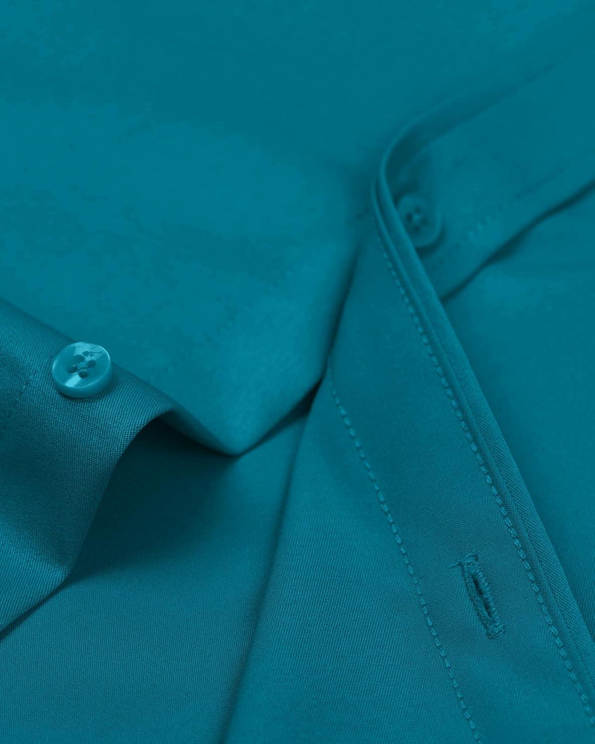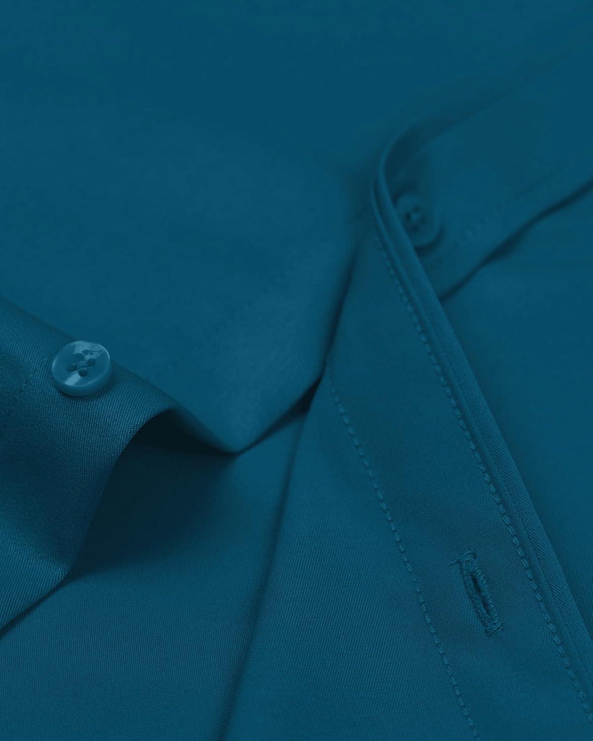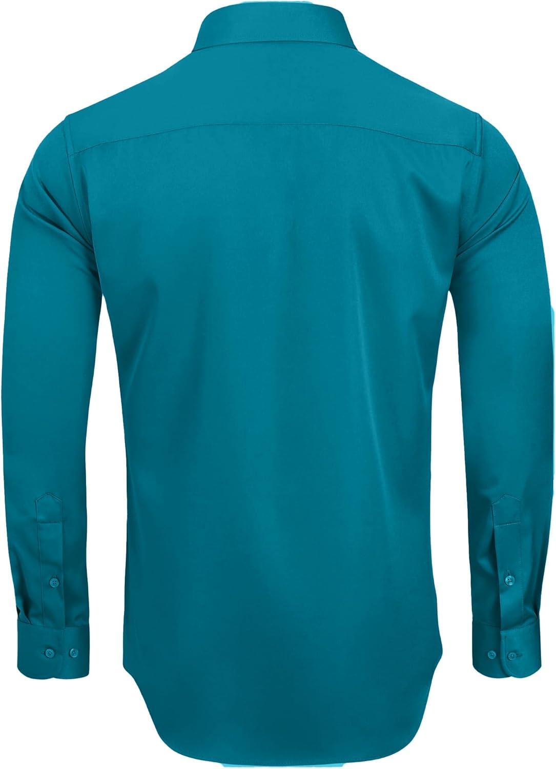 Alimens & Gentle Men’s Dress Shirts Long Sleeve Wrinkle-Free Stretch Shirts Solid Formal Button Down Shirt with Pocket(Teal)