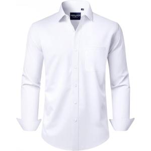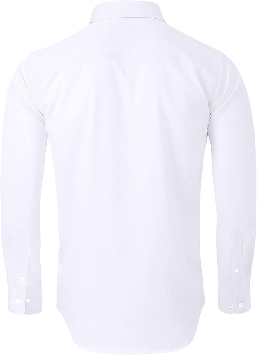 • Alimens & Gentle Men’s Dress Shirts Long Sleeve Wrinkle-Free Stretch Shirts Solid Formal Button Down Shirt with Pocket(White)