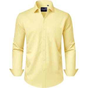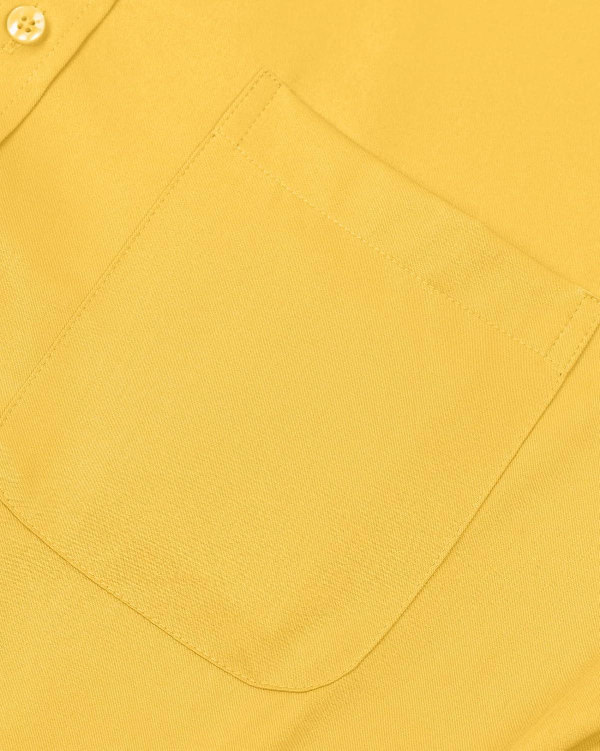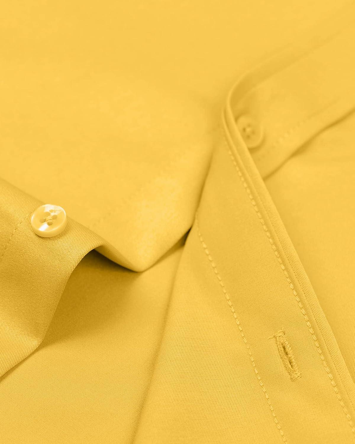 • Alimens & Gentle Men’s Dress Shirts Long Sleeve Wrinkle-Free Stretch Shirts Solid Formal Button Down Shirt with Pocket(Yellow)