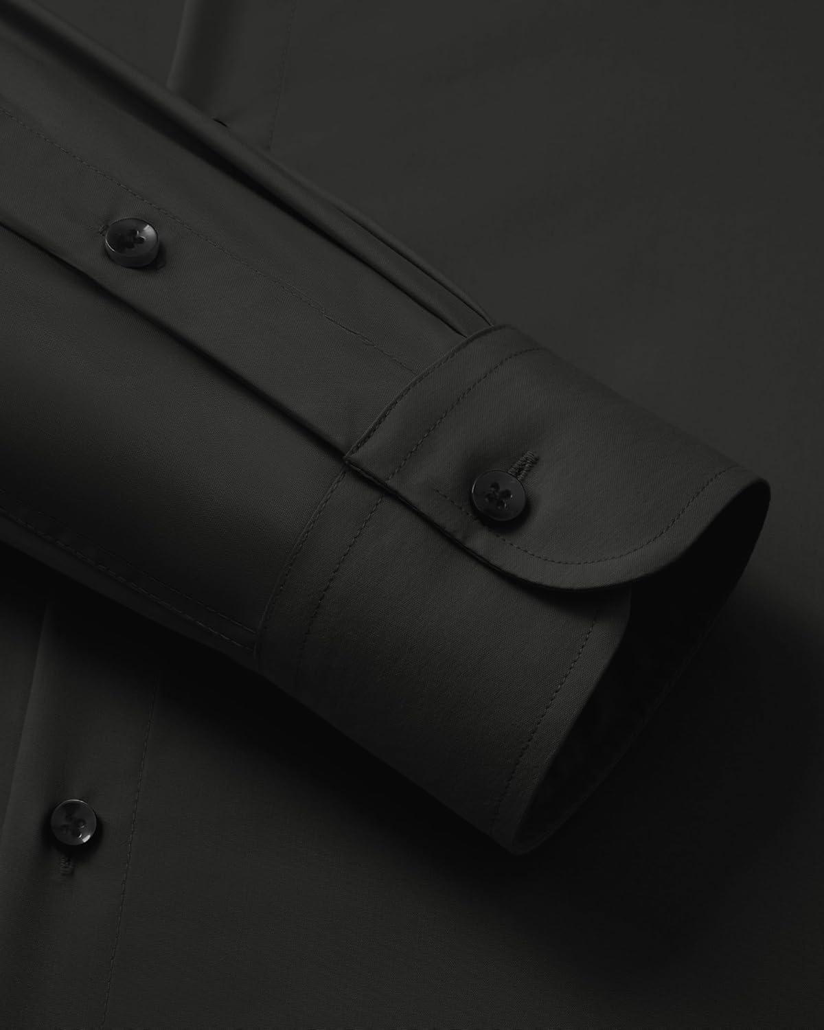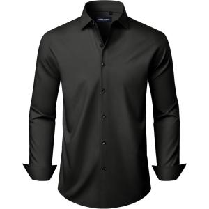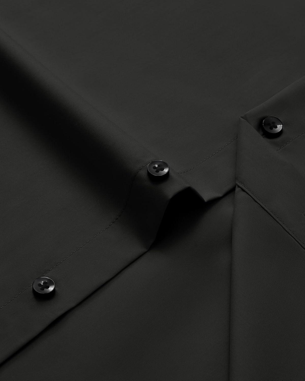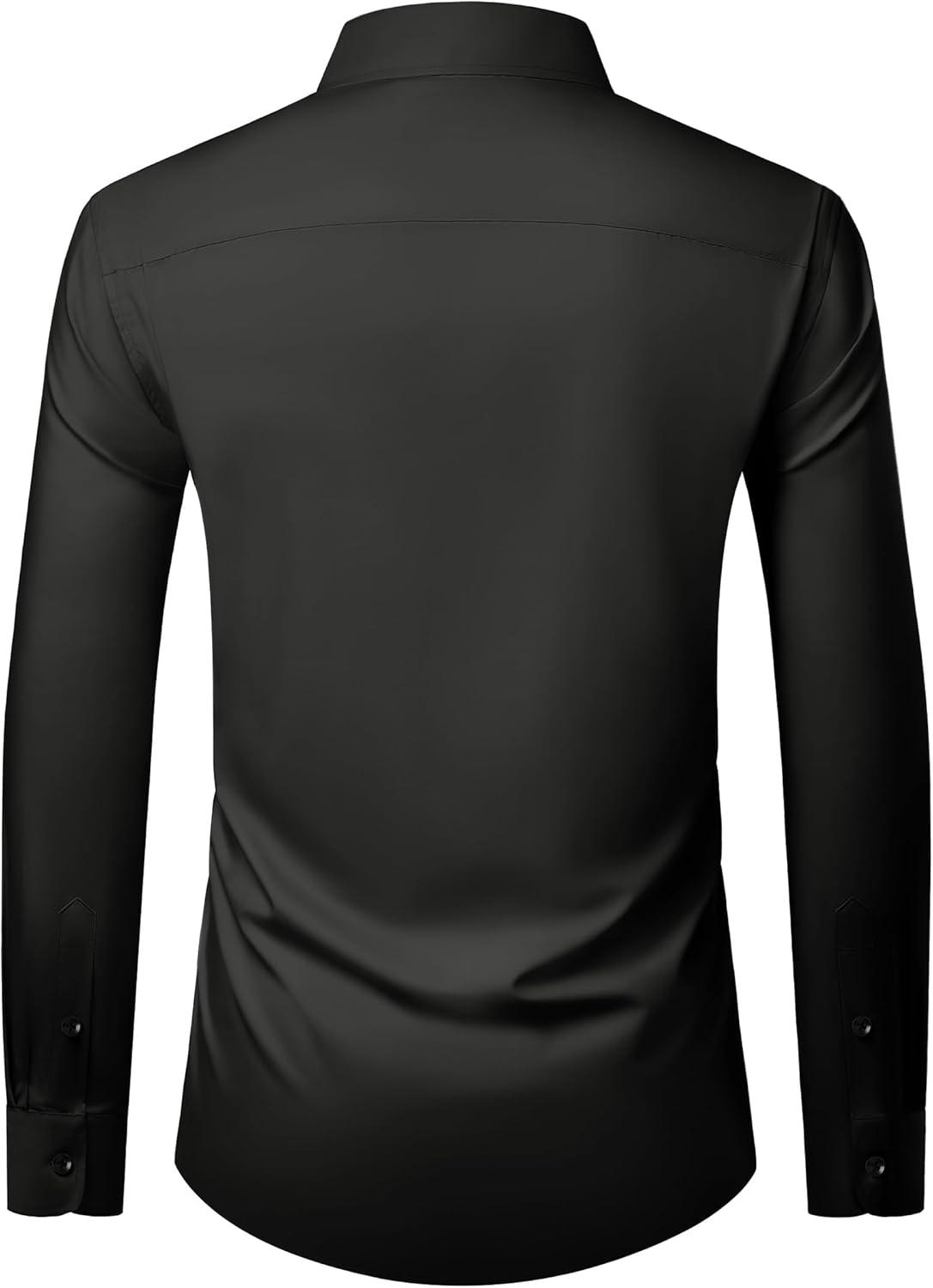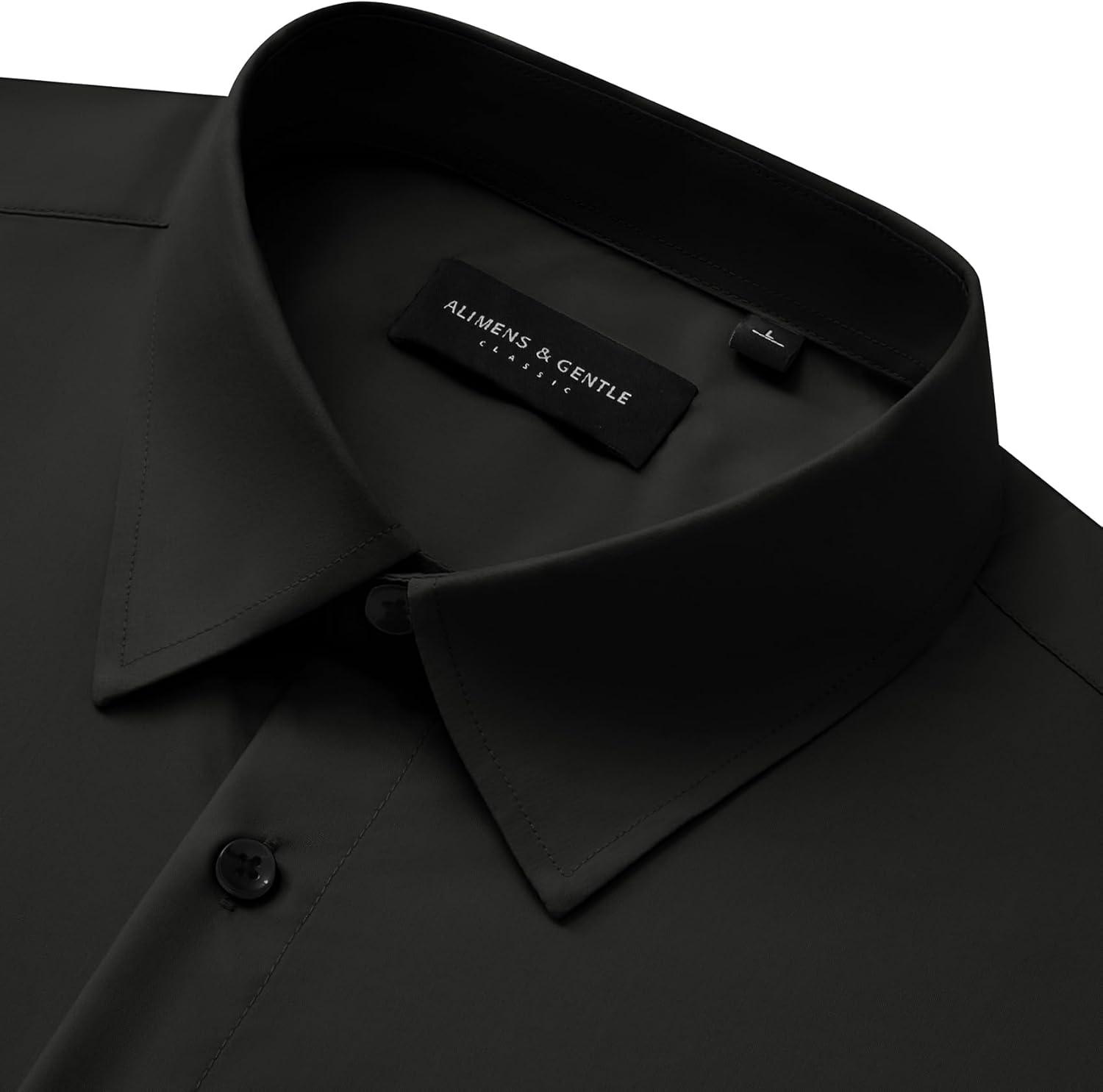 • Alimens & Gentle Men’s Long Sleeve Dress Shirts Wrinkle Free Stretch Wedding Business Casual Button Down Shirt(Black)