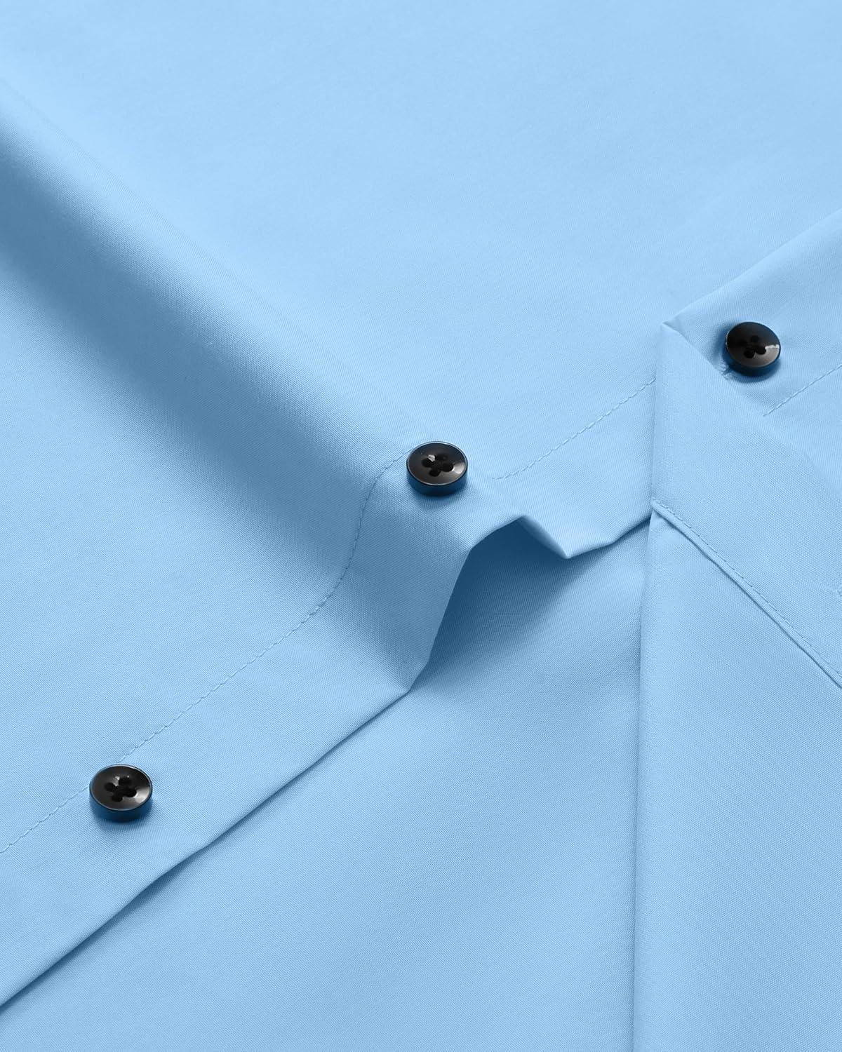 • Alimens & Gentle Men’s Dress Shirts Long Sleeve Wrinkle-Free Stretch Shirts Solid Formal Button Down Shirt with Pocket(Misty /Blue)