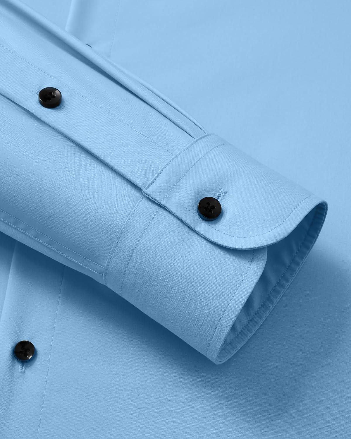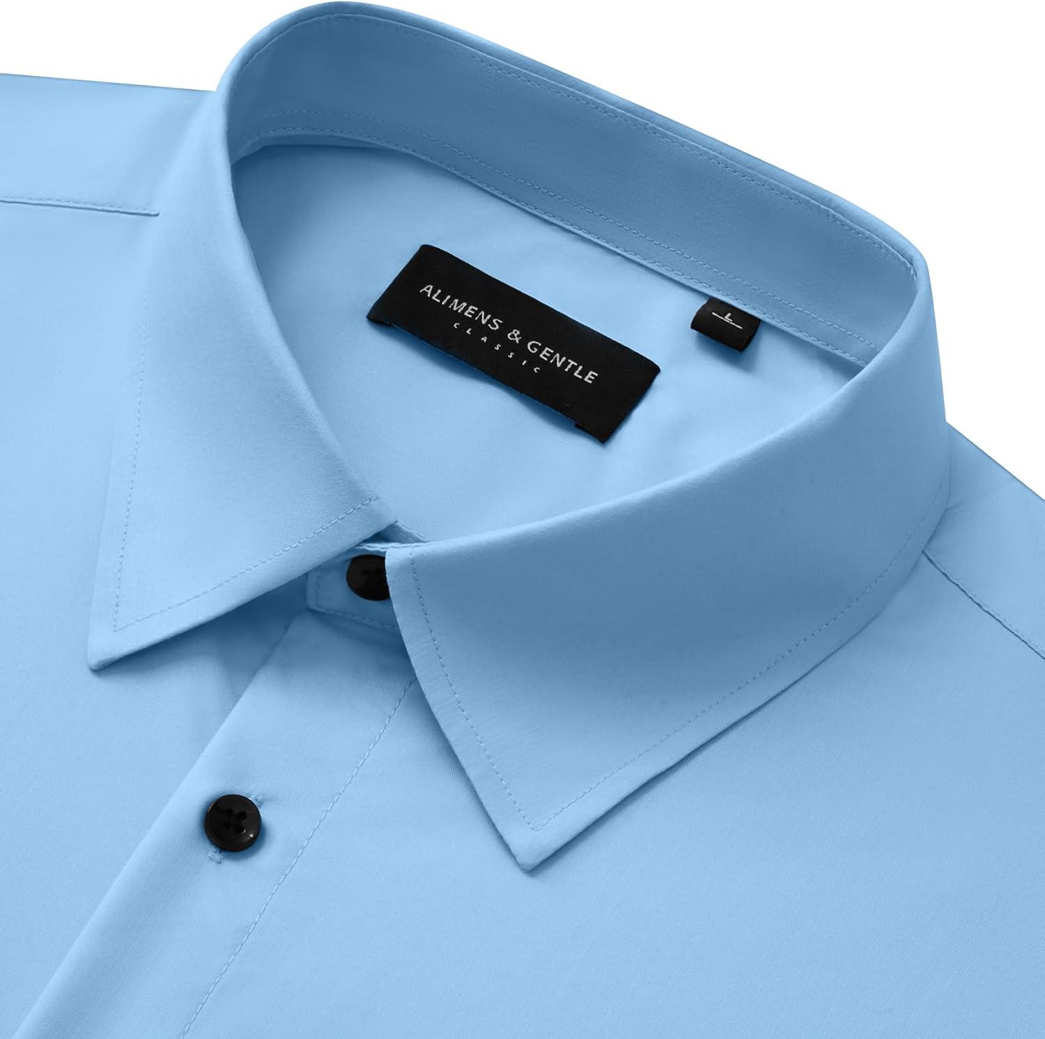 Alimens & Gentle Men’s Dress Shirts Long Sleeve Wrinkle-Free Stretch Shirts Solid Formal Button Down Shirt with Pocket(Misty /Blue)