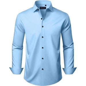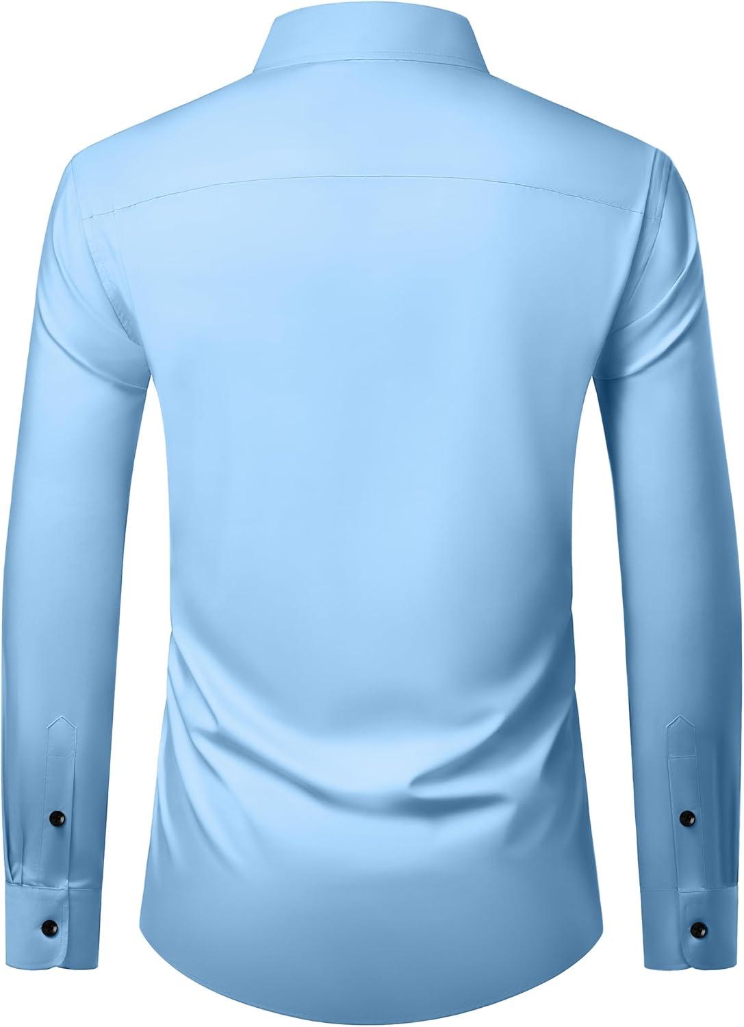 • Alimens & Gentle Men’s Long Sleeve Dress Shirts Wrinkle Free Stretch Wedding Business Casual Button Down Shirt(Blue)