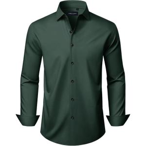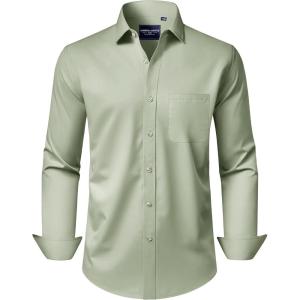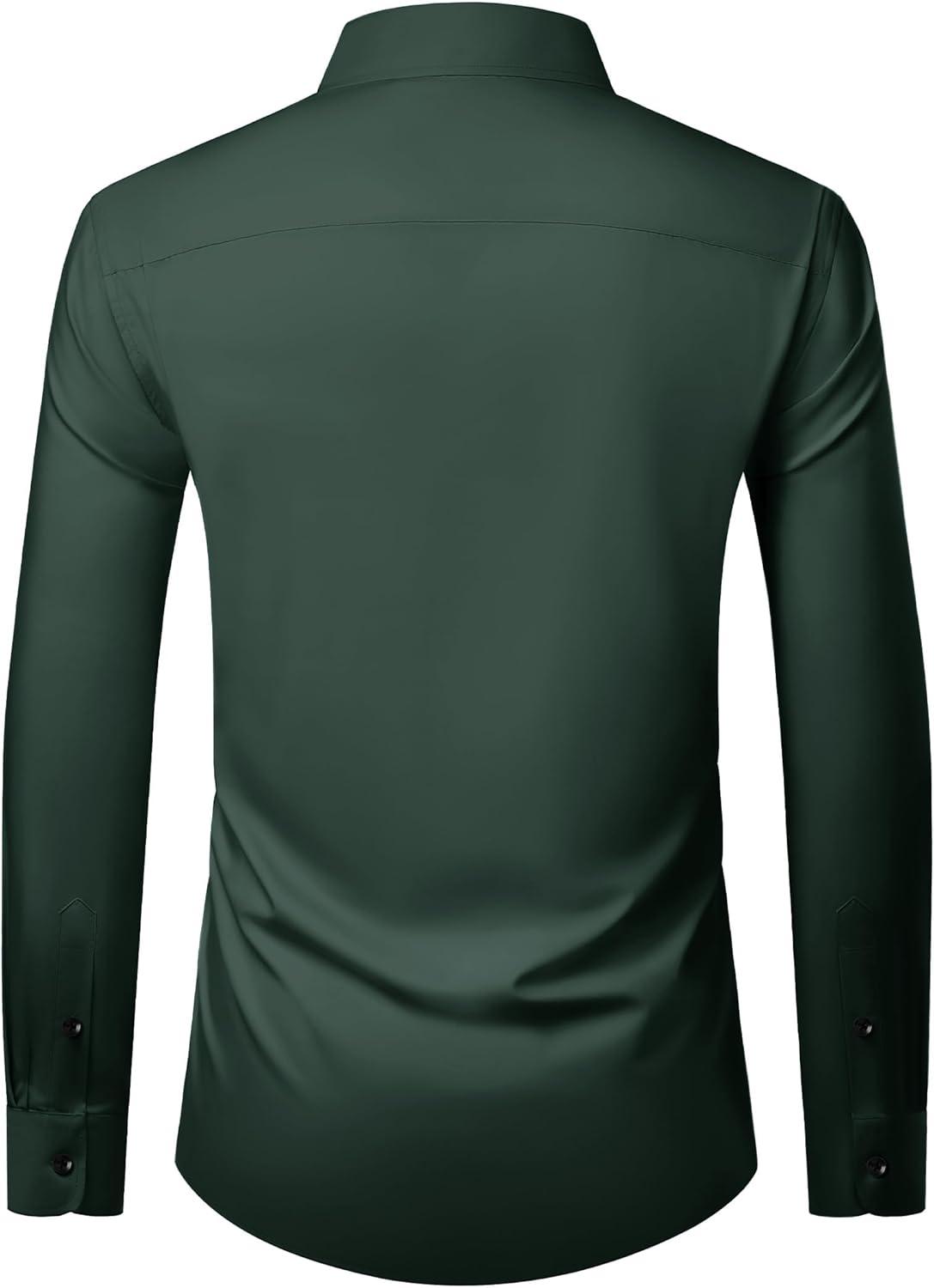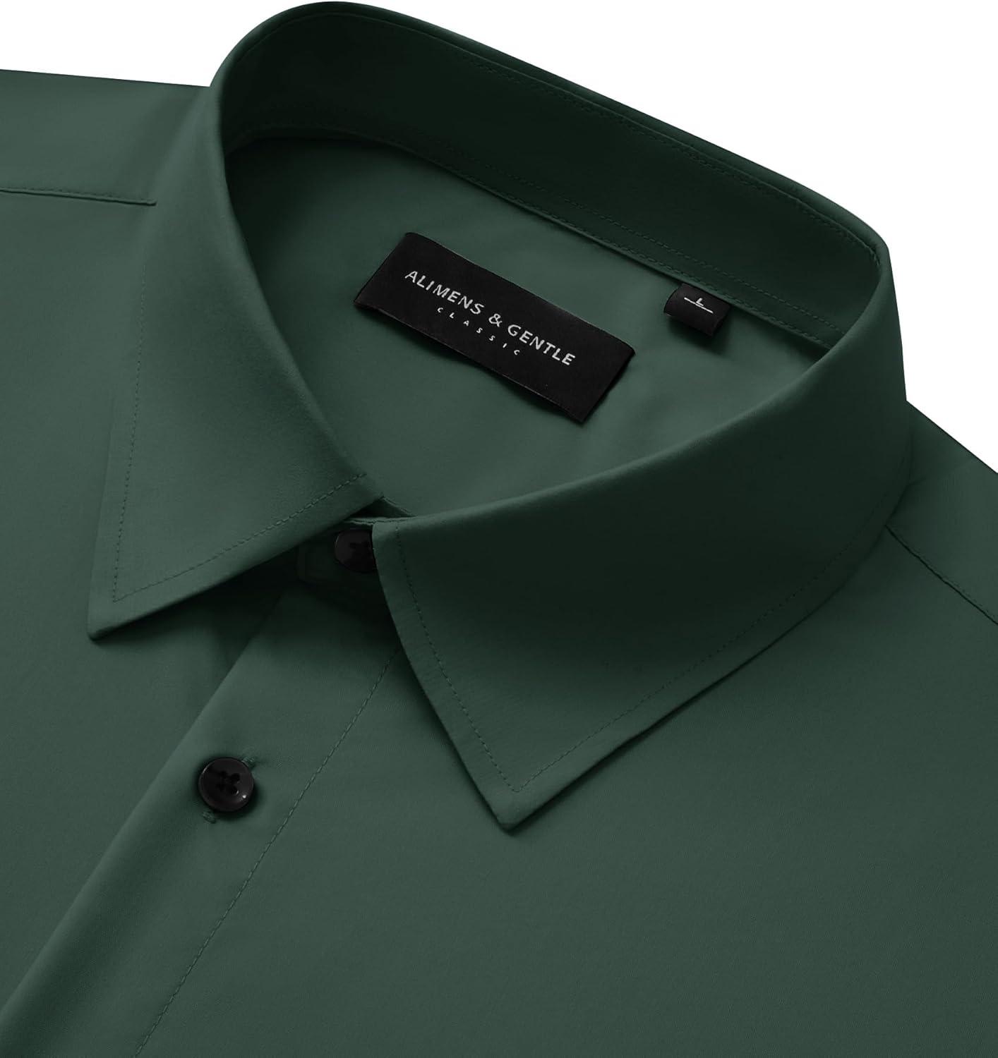 • Alimens & Gentle Men’s Long Sleeve Dress Shirts Wrinkle Free Stretch Wedding Business Casual Button Down Shirt(Green)