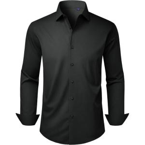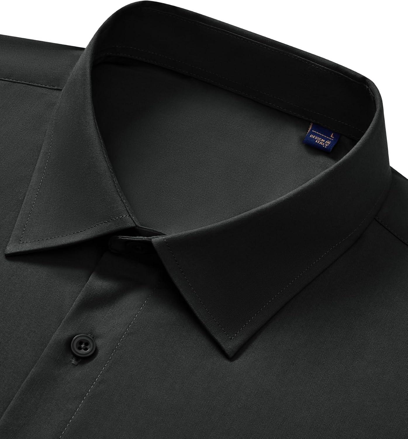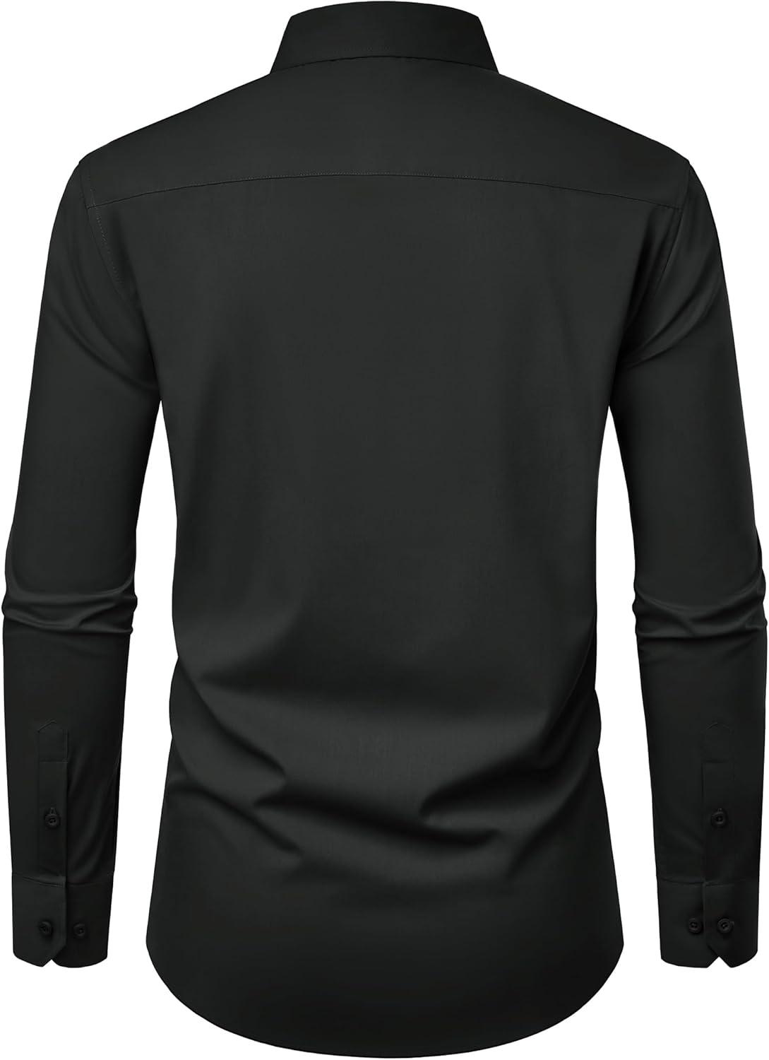 Alimens & Gentle Men’s Dress Shirts Long Sleeve Stretch Wrinkle Free Business Casual Button Down Shirt(Black)