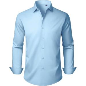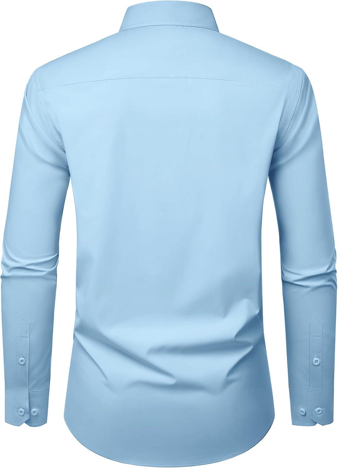 Alimens & Gentle Men’s Dress Shirts Long Sleeve Stretch Wrinkle Free Business Casual Button Down Shirt(Blue)