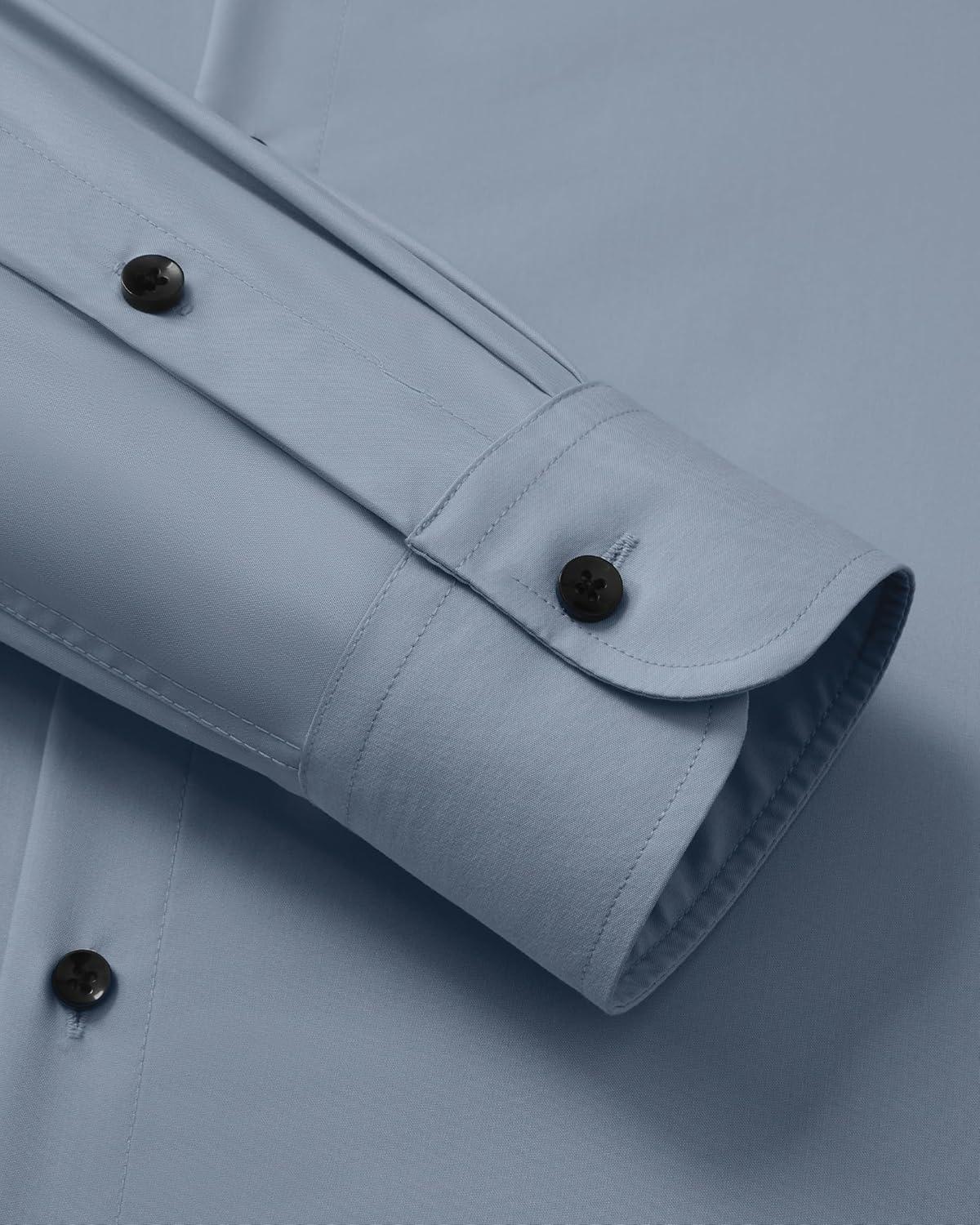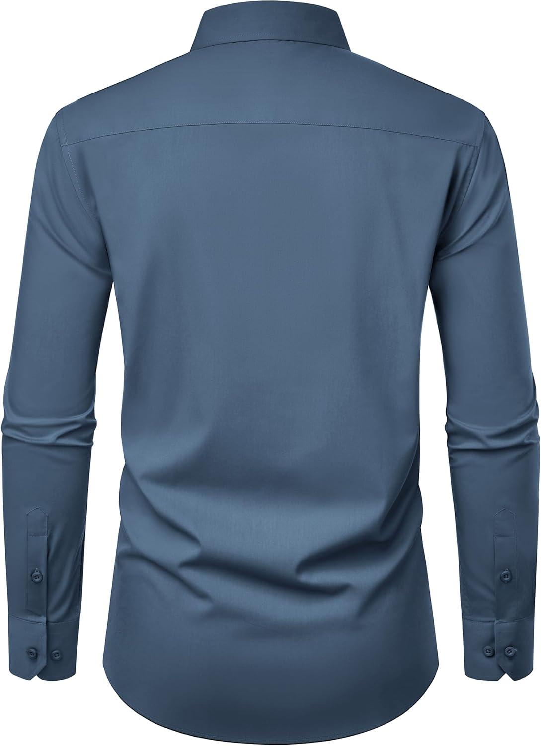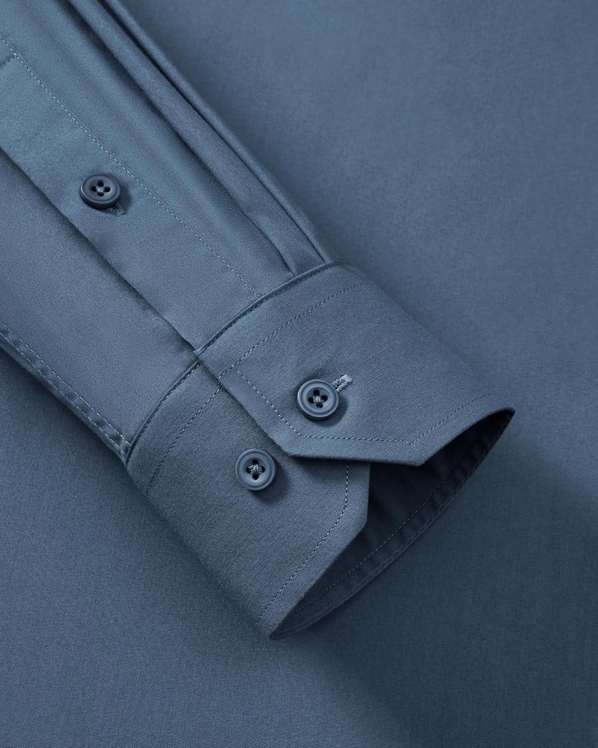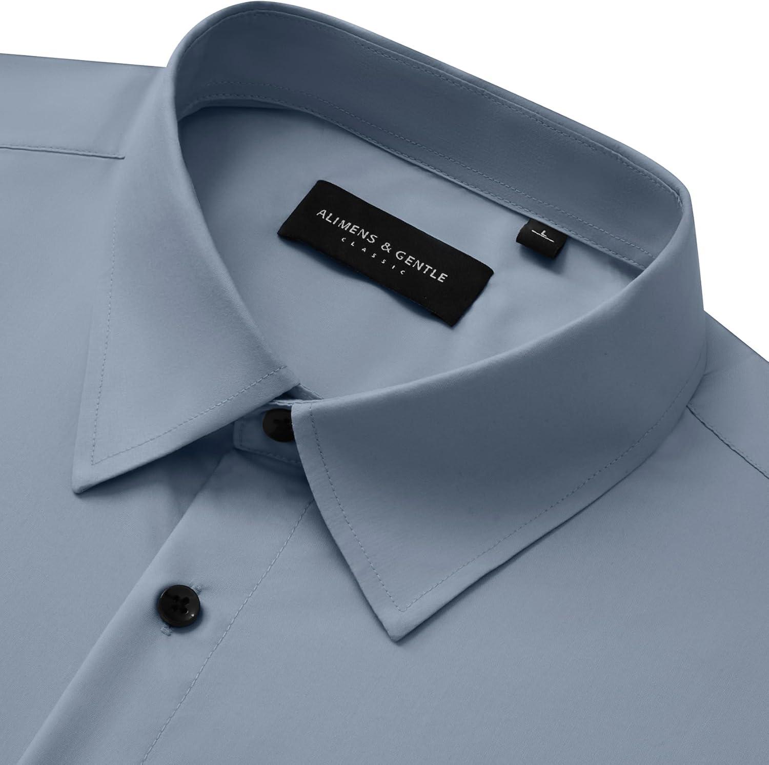 Alimens & Gentle Men’s Dress Shirts Long Sleeve Stretch Wrinkle Free Business Casual Button Down Shirt(Dusty Blue)