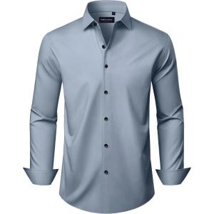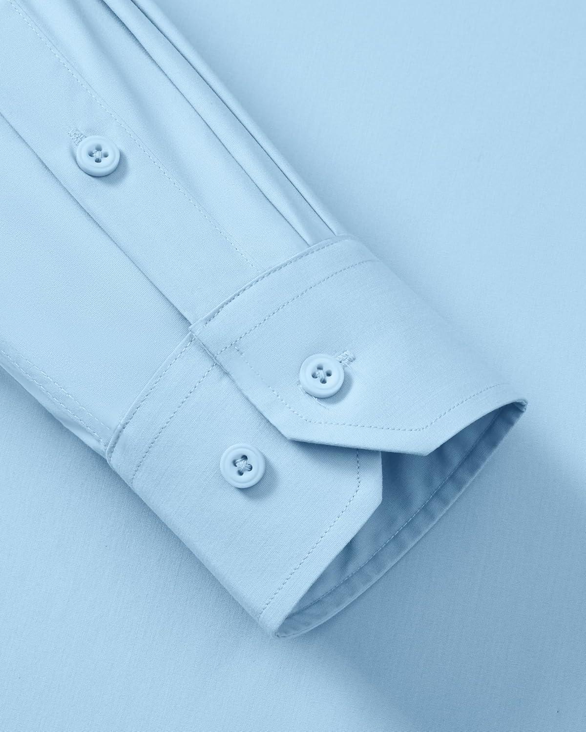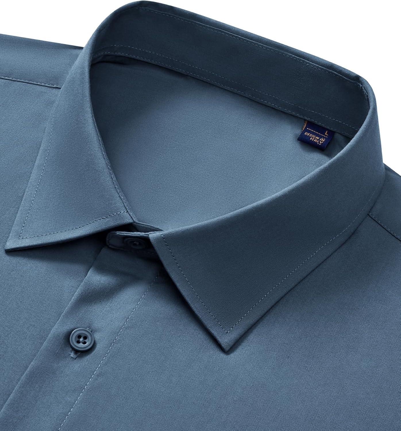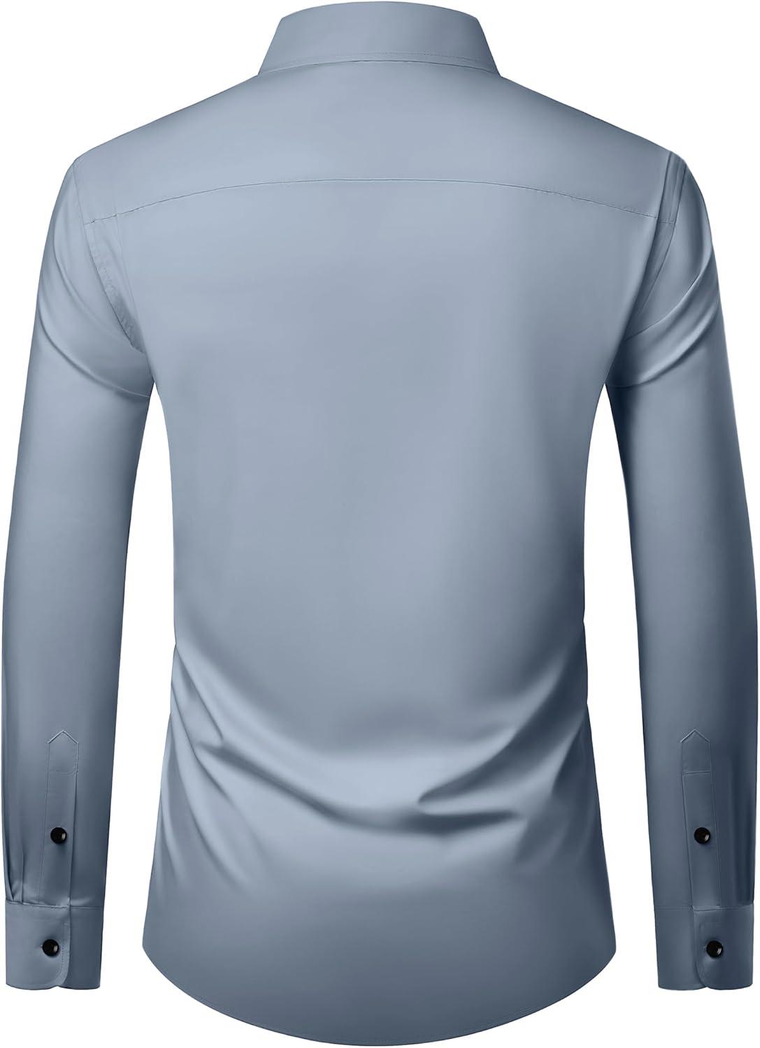 Alimens & Gentle Men’s Dress Shirts Long Sleeve Stretch Wrinkle Free Business Casual Button Down Shirt(Dusty Blue)