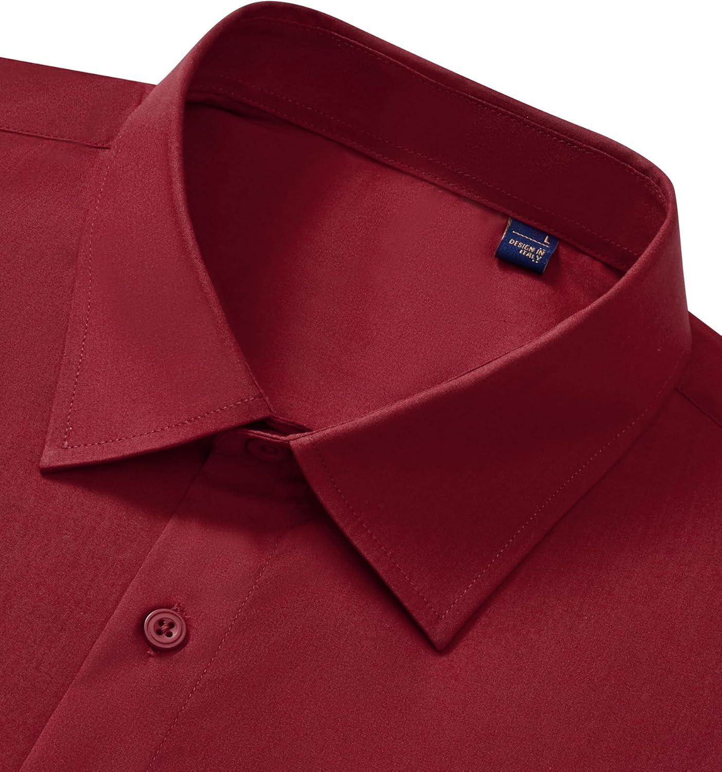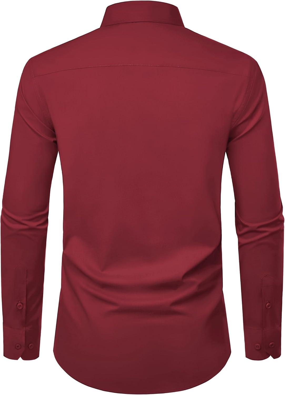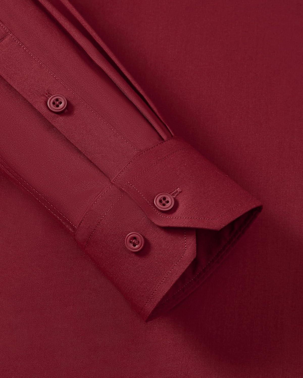 Alimens & Gentle Men’s Dress Shirts Long Sleeve Stretch Wrinkle Free Business Casual Button Down Shirt(Burgundy)