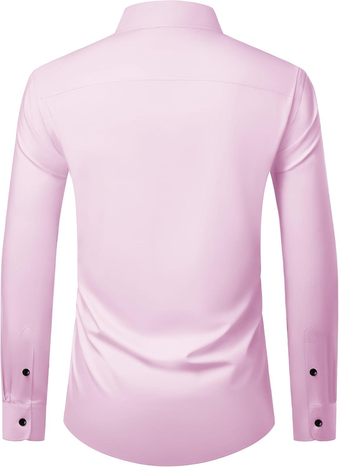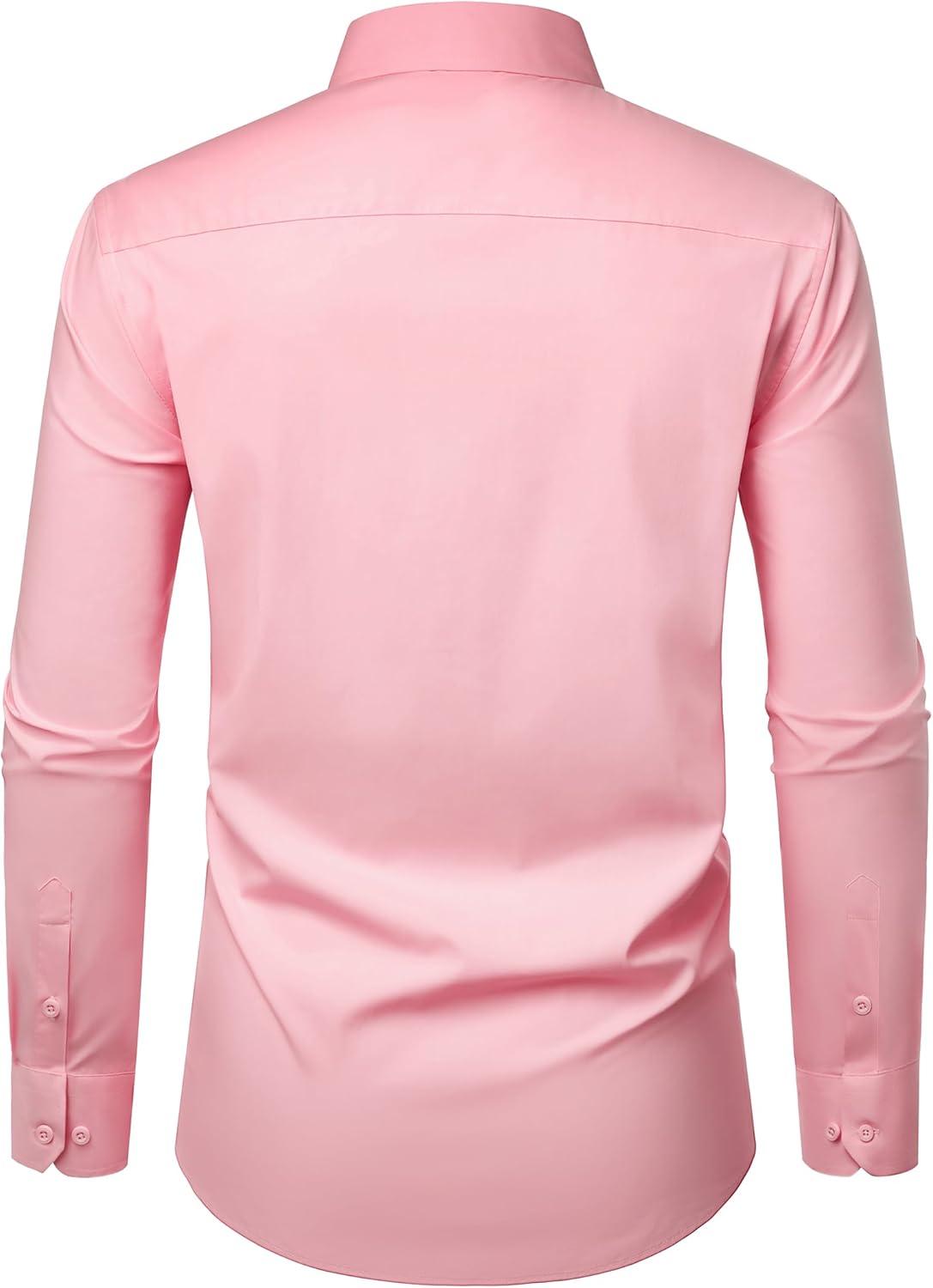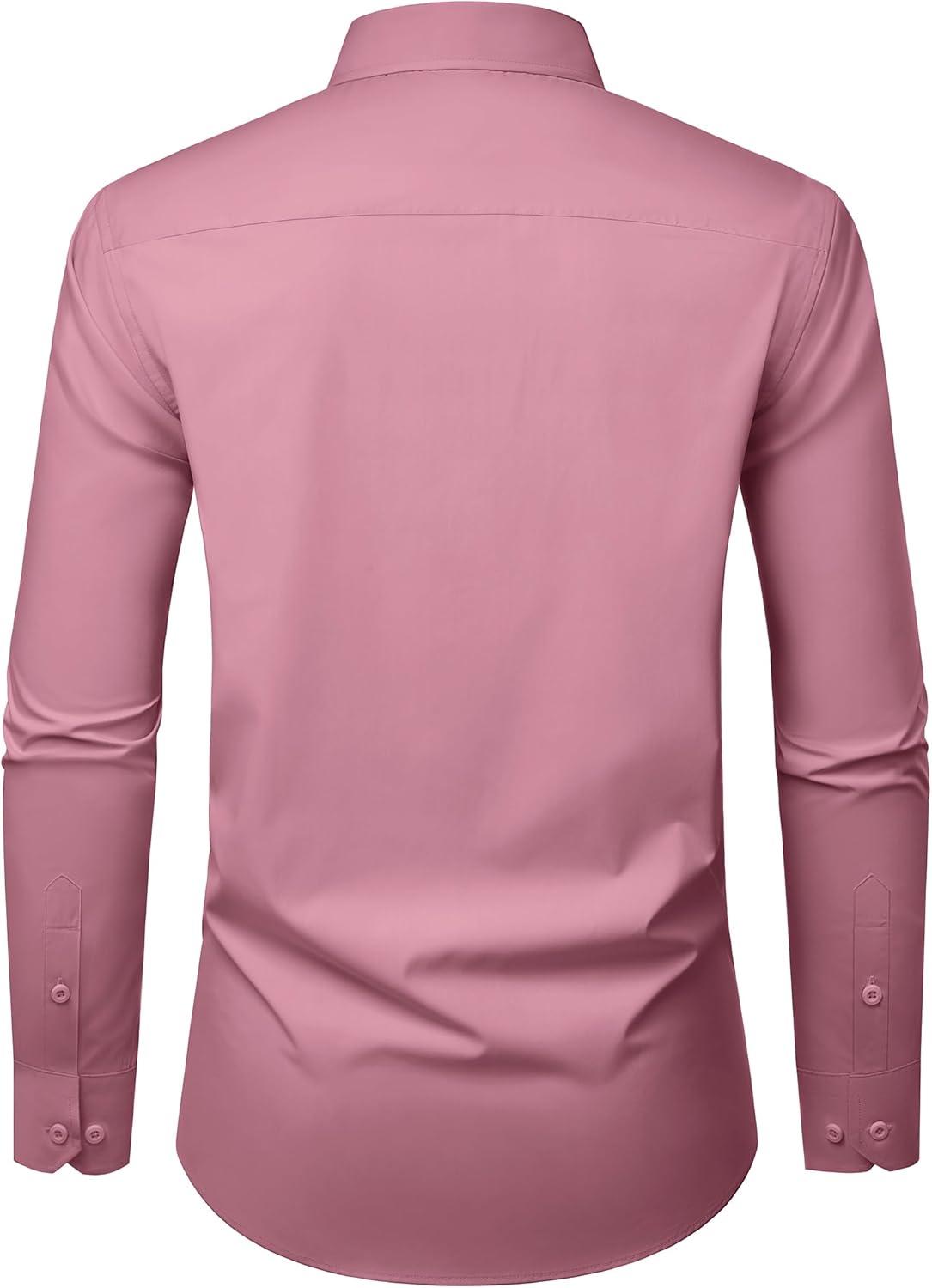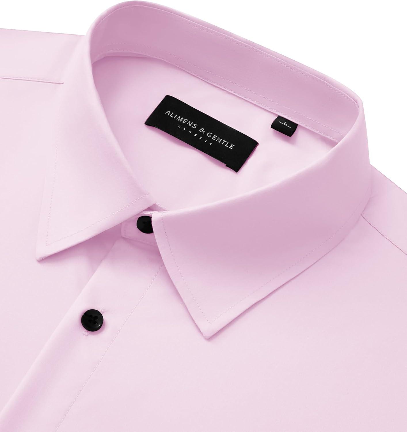 Alimens & Gentle Men’s Dress Shirts Long Sleeve Stretch Wrinkle Free Business Casual Button Down Shirt(Pink)