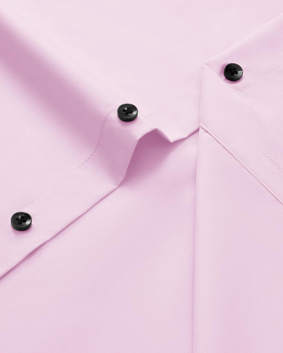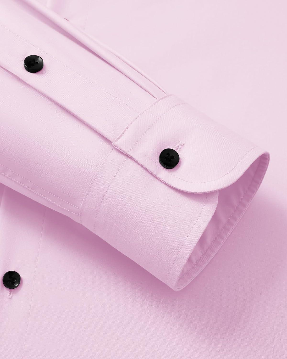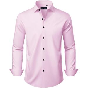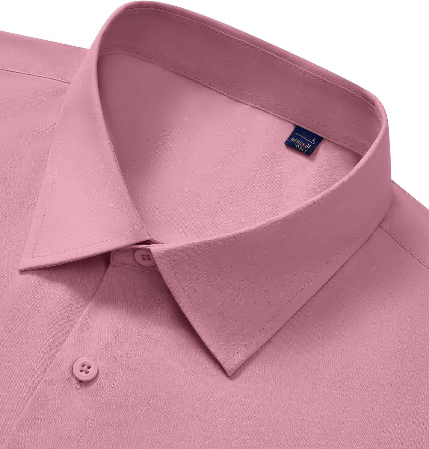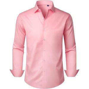 Alimens & Gentle Men’s Dress Shirts Long Sleeve Stretch Wrinkle Free Business Casual Button Down Shirt(Pink)