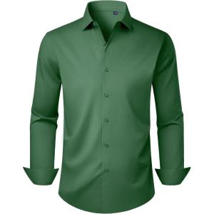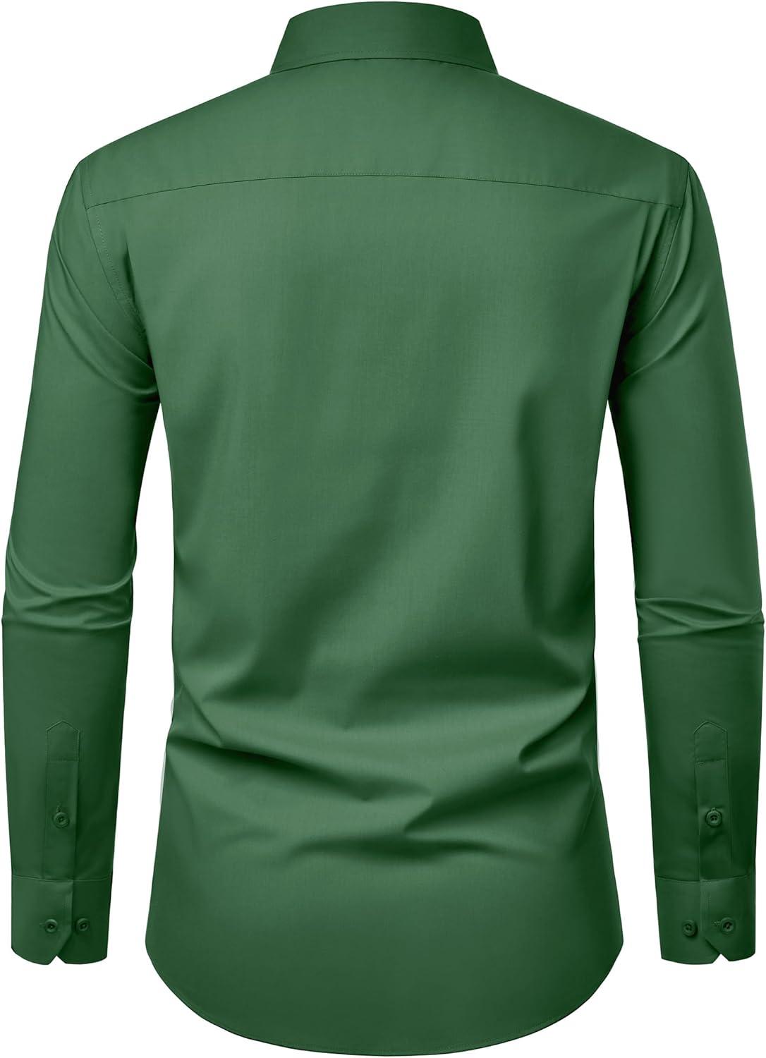 Alimens & Gentle Men’s Dress Shirts Long Sleeve Stretch Wrinkle Free Business Casual Button Down Shirt(Green)