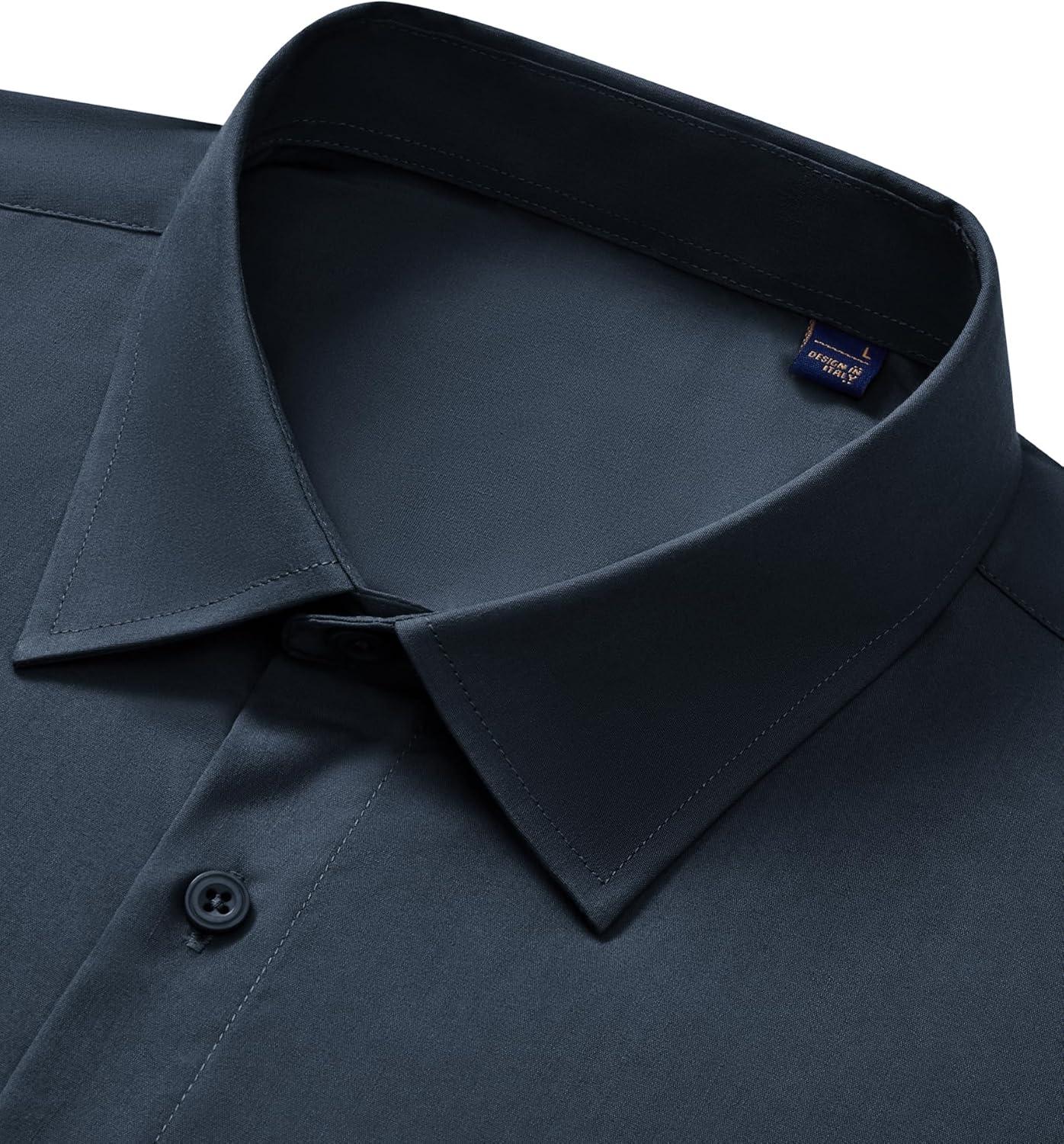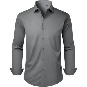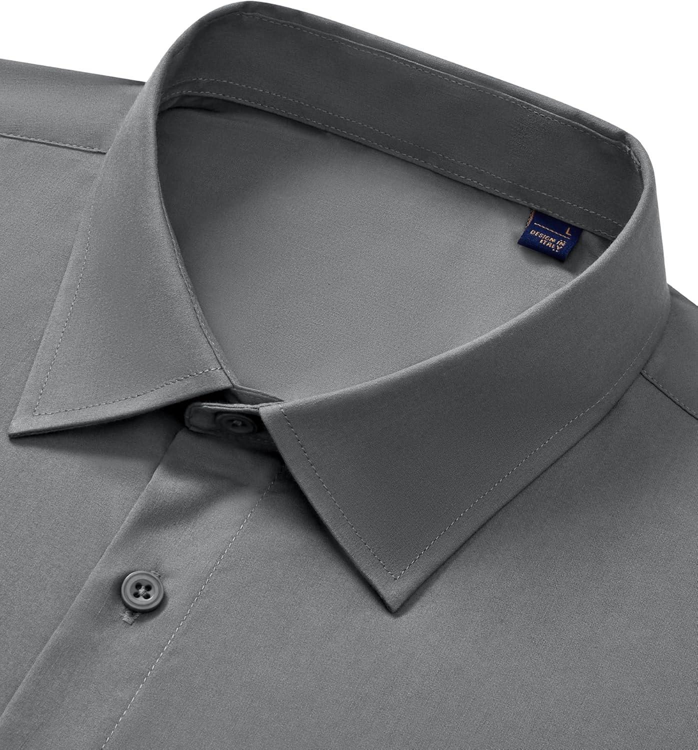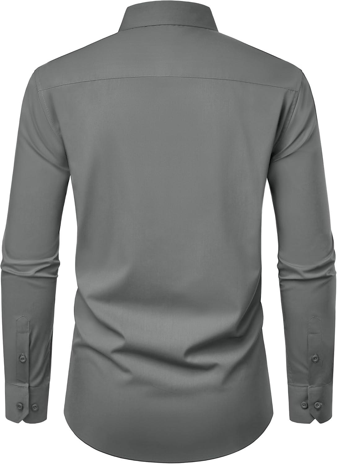 Alimens & Gentle Men’s Dress Shirts Long Sleeve Stretch Wrinkle Free Business Casual Button Down Shirt(Grey)