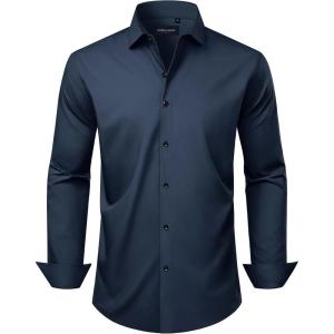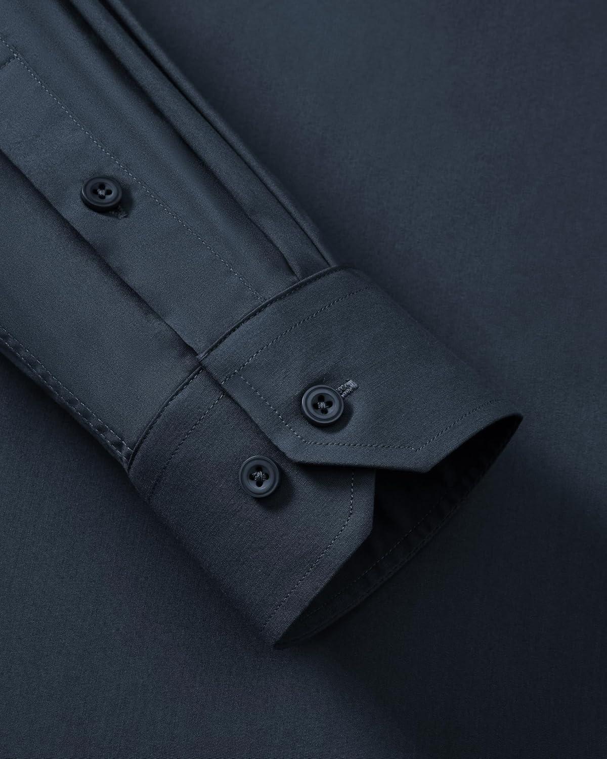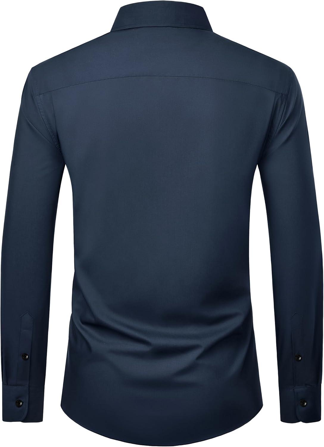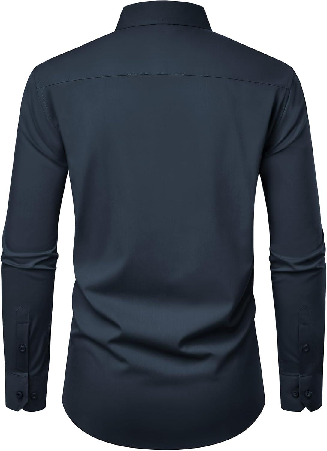 Alimens & Gentle Men’s Dress Shirts Long Sleeve Stretch Wrinkle Free Business Casual Button Down Shirt(Navy Blue)