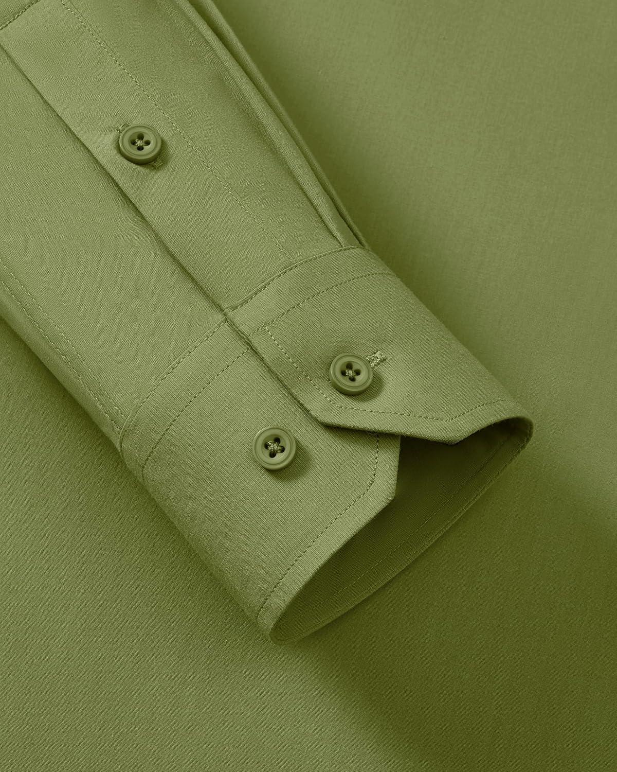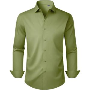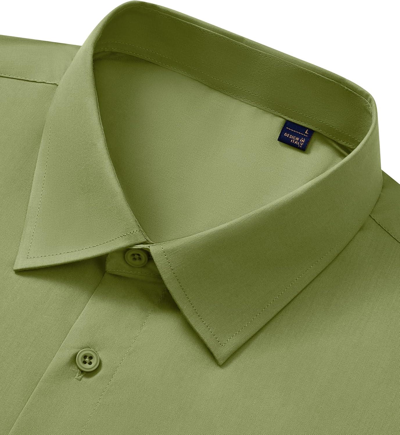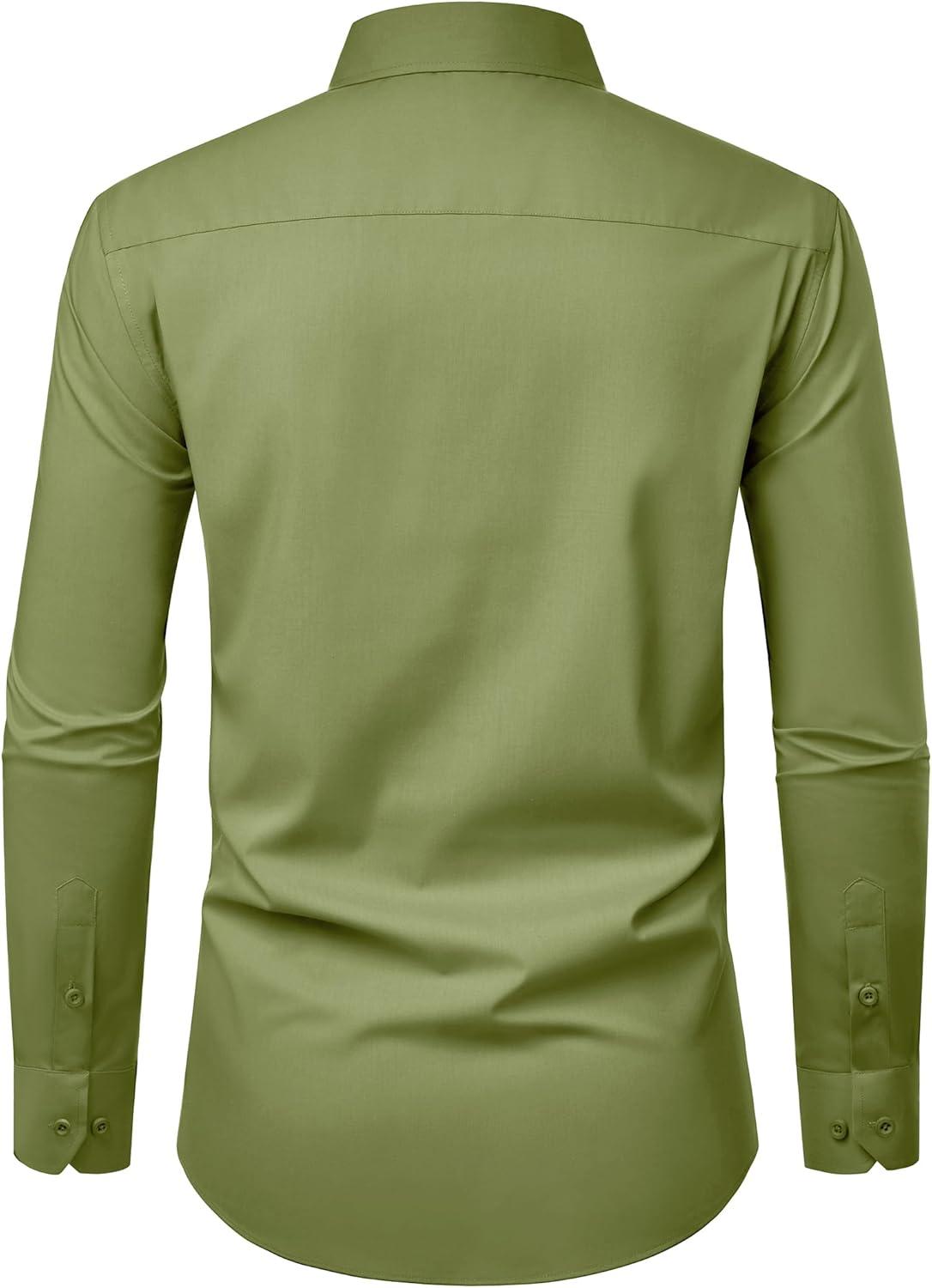 Alimens & Gentle Men’s Dress Shirts Long Sleeve Stretch Wrinkle Free Business Casual Button Down Shirt(Olive Green)