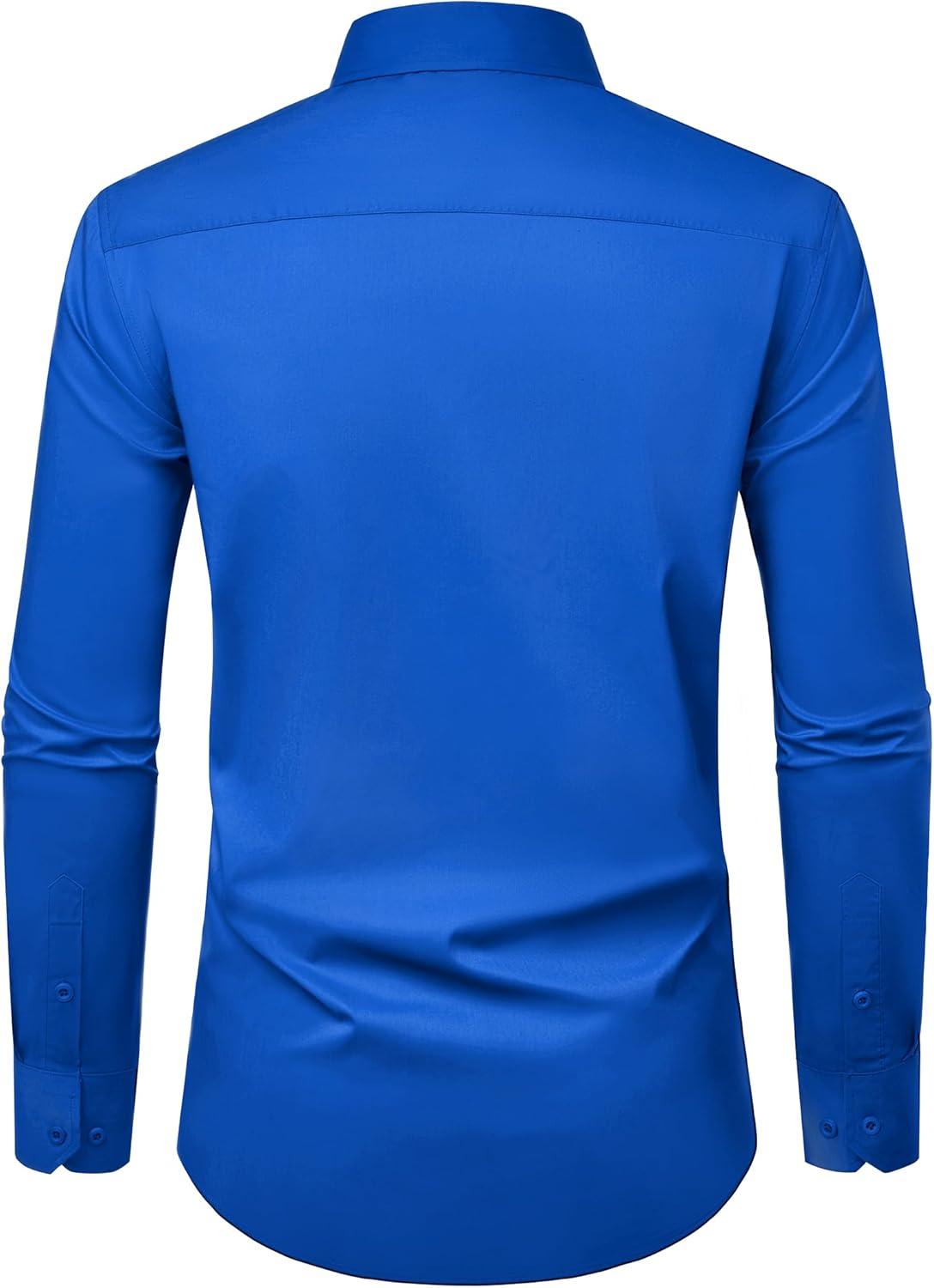 Alimens & Gentle Men’s Dress Shirts Long Sleeve Stretch Wrinkle Free Business Casual Button Down Shirt(Royal Blue)
