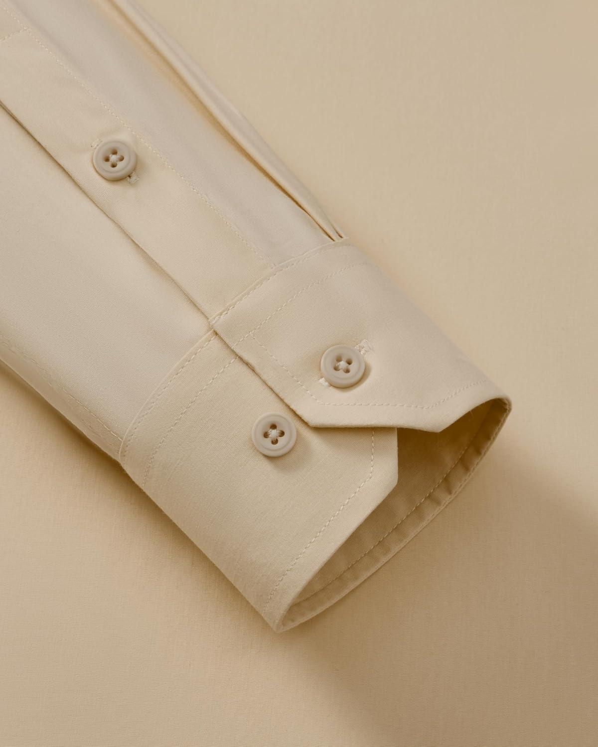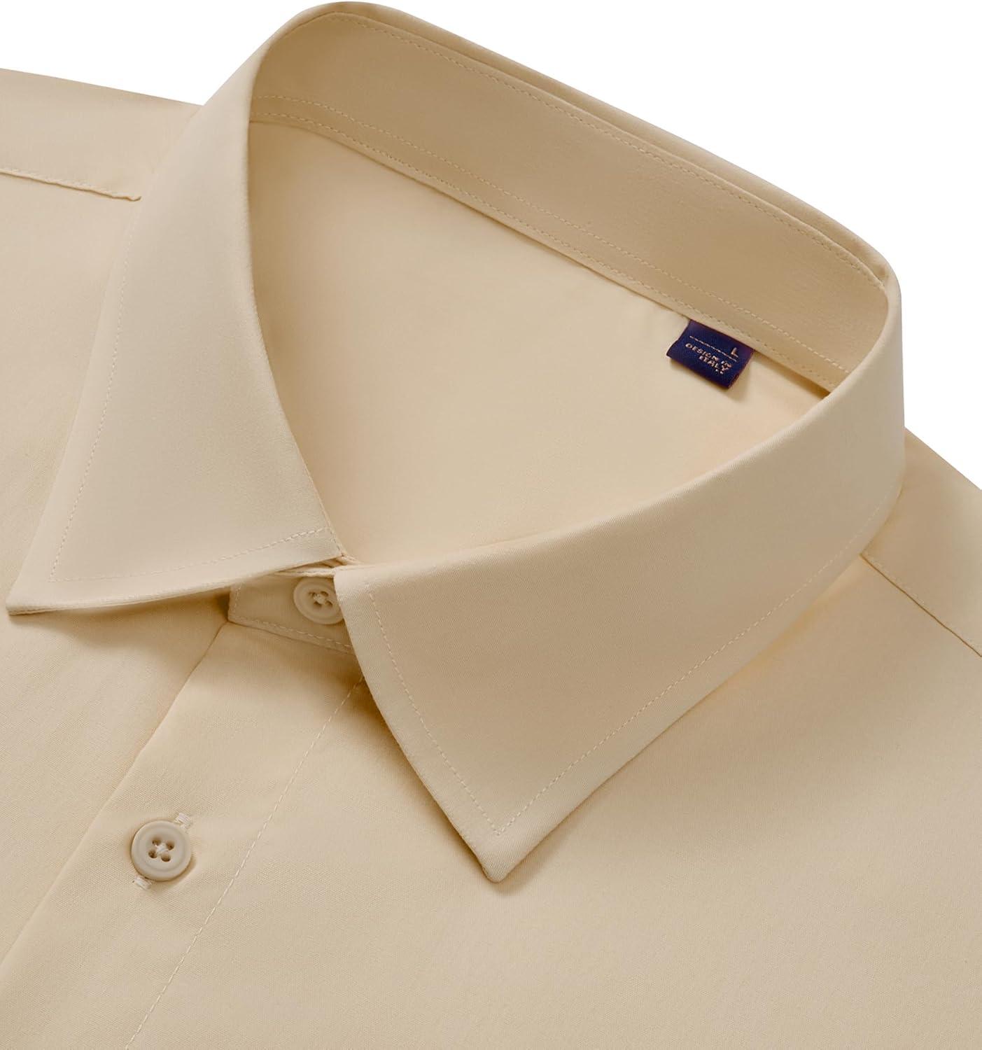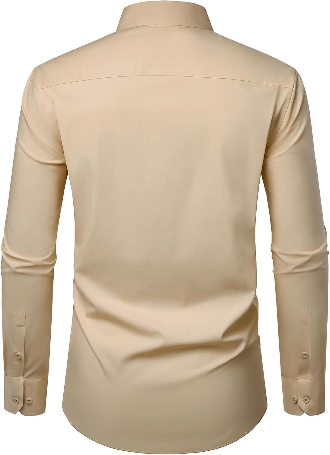 Alimens & Gentle Men’s Dress Shirts Long Sleeve Stretch Wrinkle Free Business Casual Button Down Shirt(Tan)