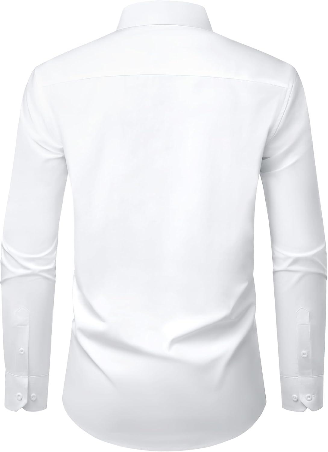 Alimens & Gentle Men’s Long Sleeve Dress Shirts Wrinkle Free Stretch Wedding Business Casual Button Down Shirt(White)