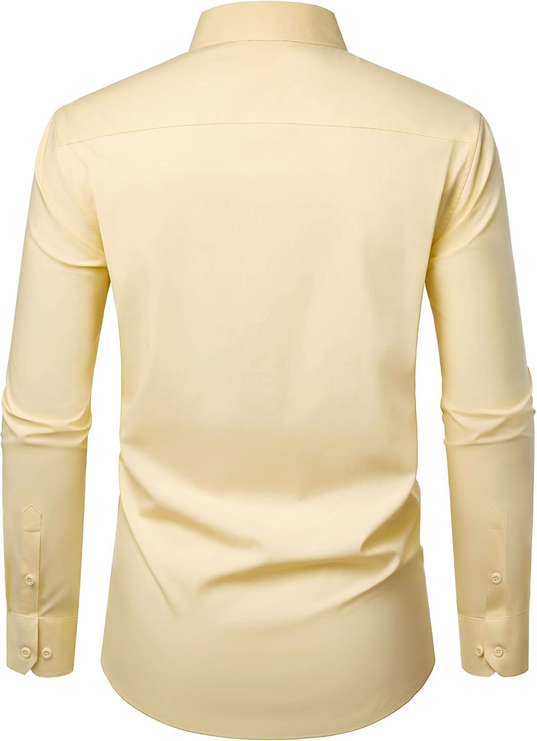 Alimens & Gentle Men’s Dress Shirts Long Sleeve Stretch Wrinkle Free Business Casual Button Down Shirt(Yellow)