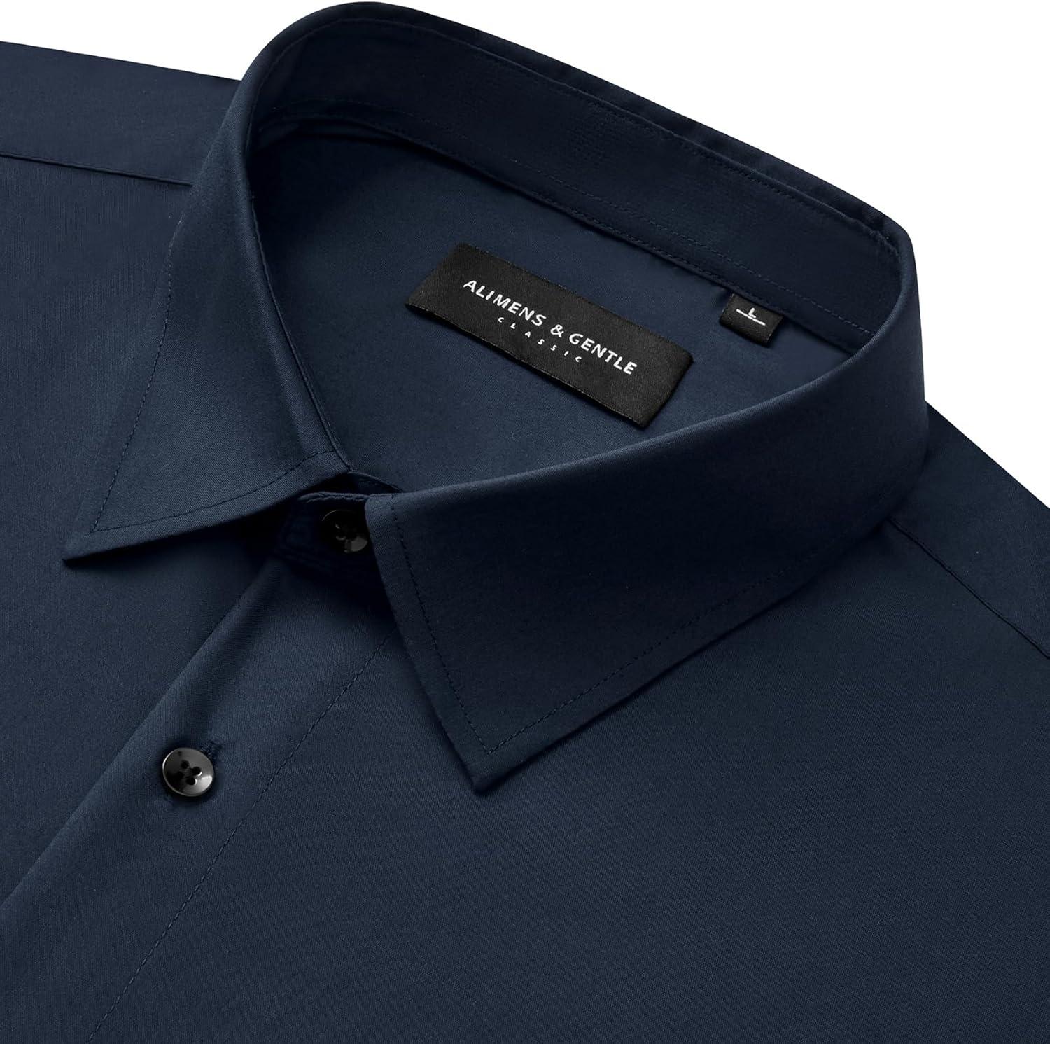Alimens & Gentle Men’s Long Sleeve Dress Shirts Wrinkle Free Stretch Wedding Business Casual Button Down Shirt(Navy Blue)