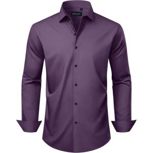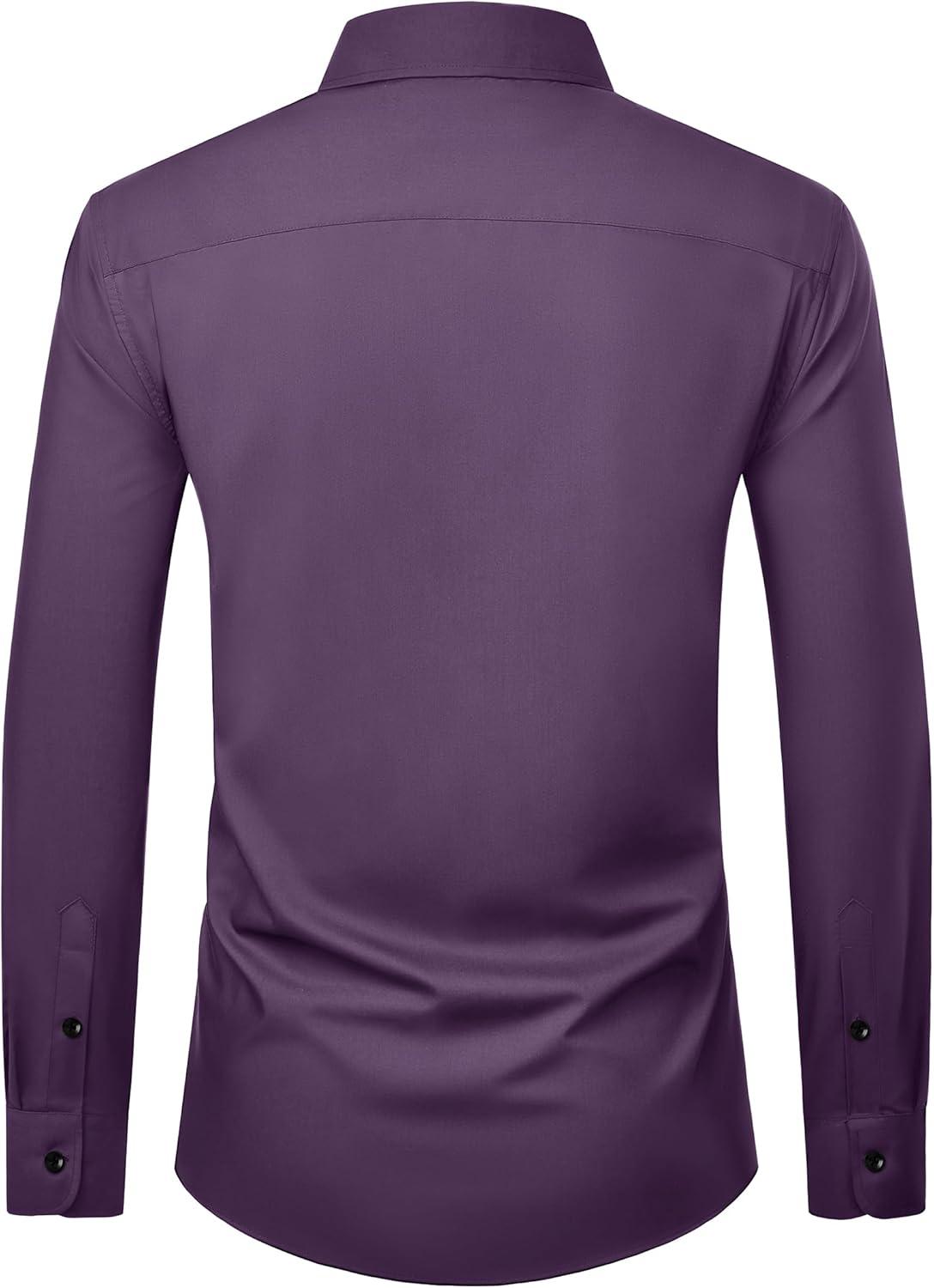 Alimens & Gentle Men’s Long Sleeve Dress Shirts Wrinkle Free Stretch Wedding Business Casual Button Down Shirt(Purple)