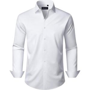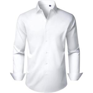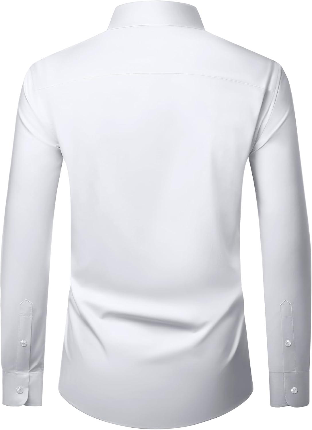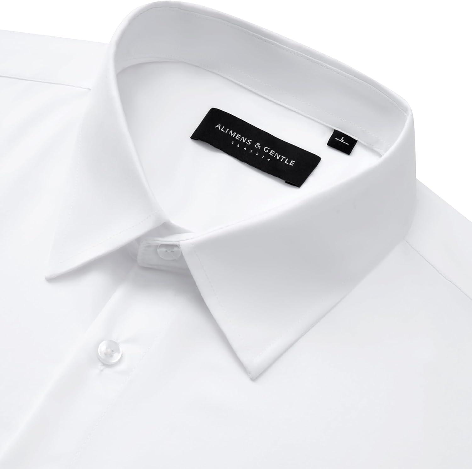 Alimens & Gentle Men’s Dress Shirts Long Sleeve Stretch Wrinkle Free Business Casual Button Down Shirt(White)