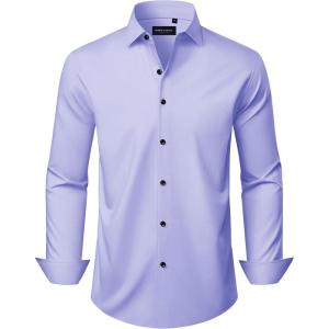 Alimens & Gentle Men’s Long Sleeve Dress Shirts Wrinkle Free Stretch Wedding Business Casual Button Down Shirt(Lavender)