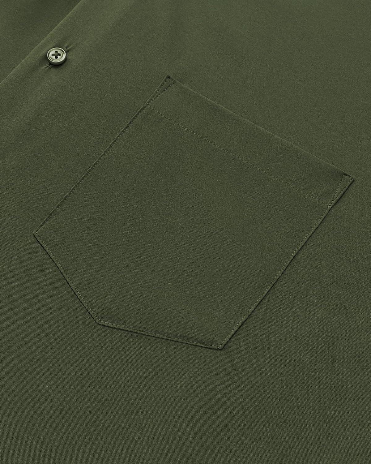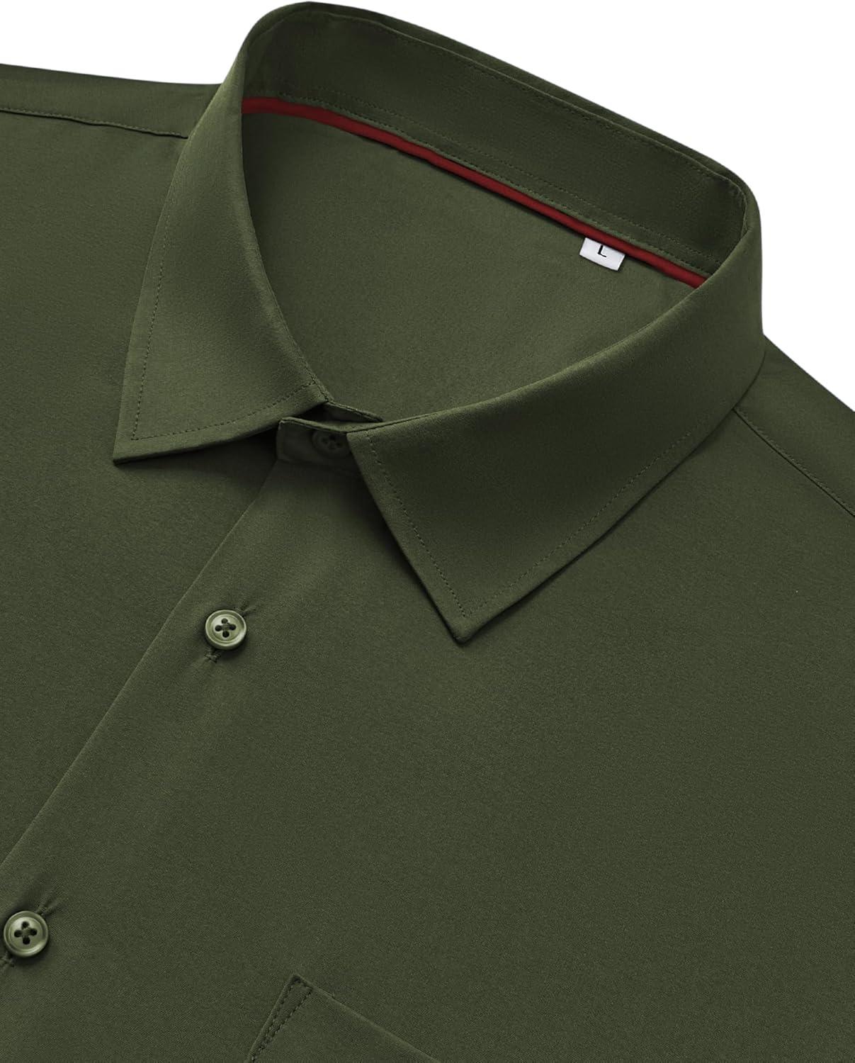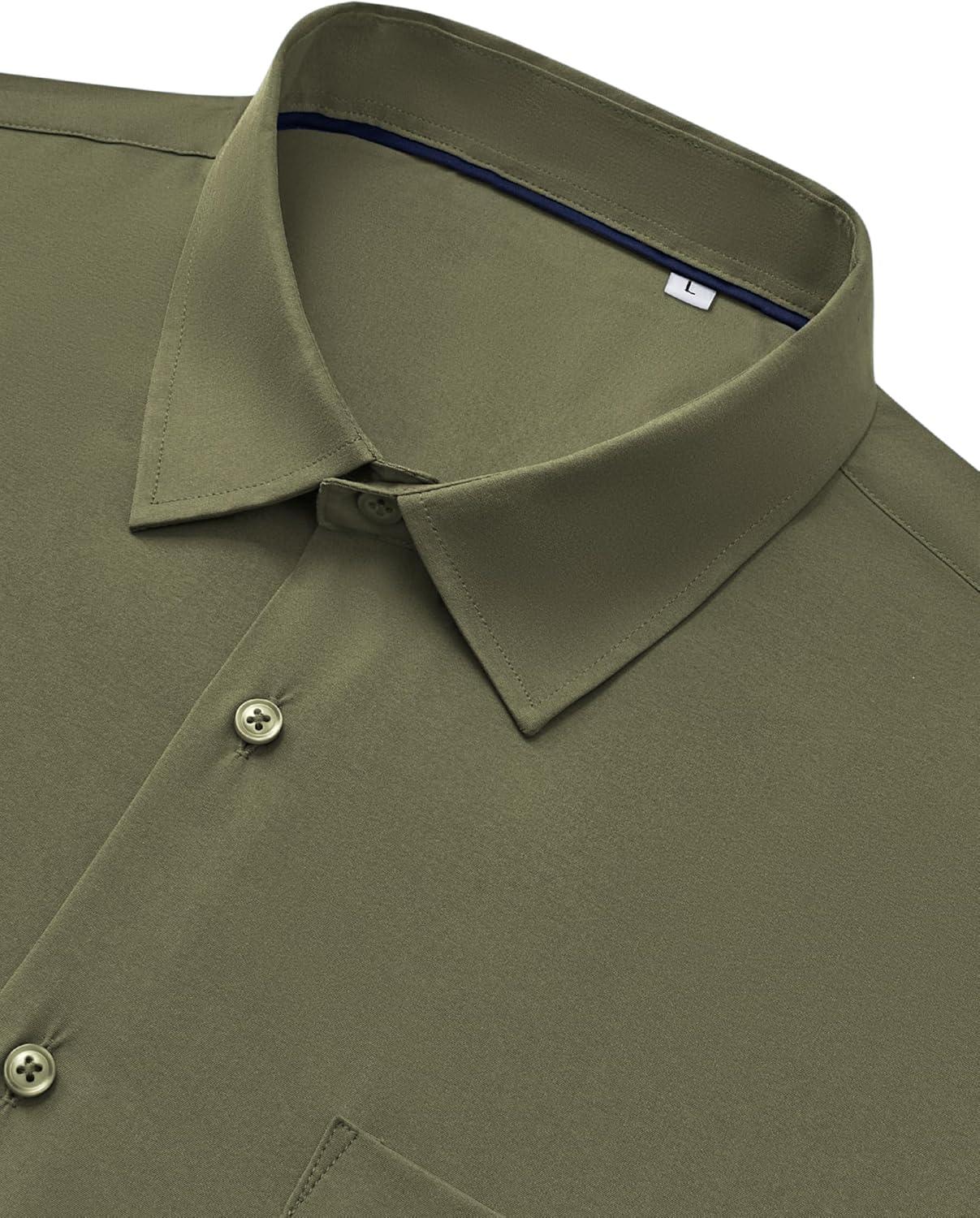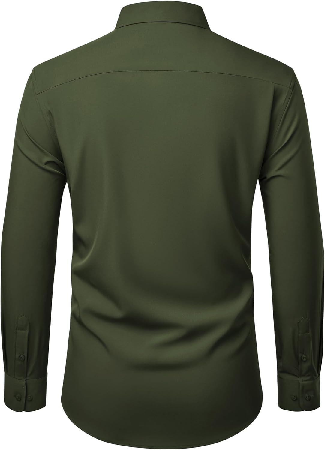 Alimens & Gentle Mens Dress Shirts Stretch Long Sleeve Wrinkle Free Business Casual Button Down Shirt for Wedding(Army Green)