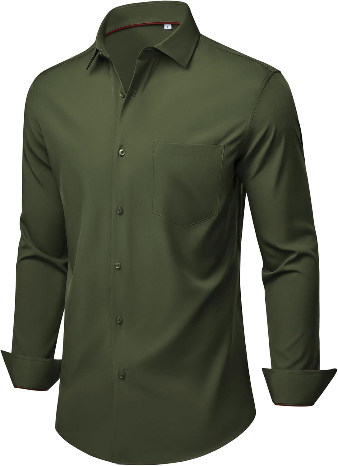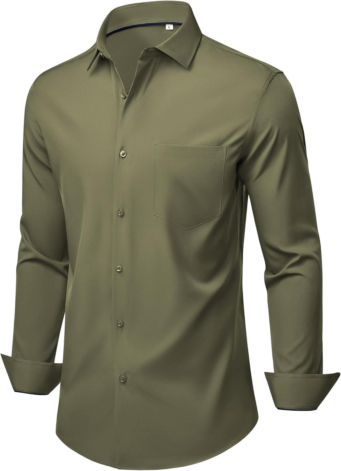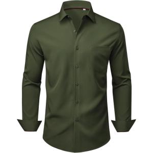 Alimens & Gentle Mens Dress Shirts Stretch Long Sleeve Wrinkle Free Business Casual Button Down Shirt for Wedding(Olive Green)