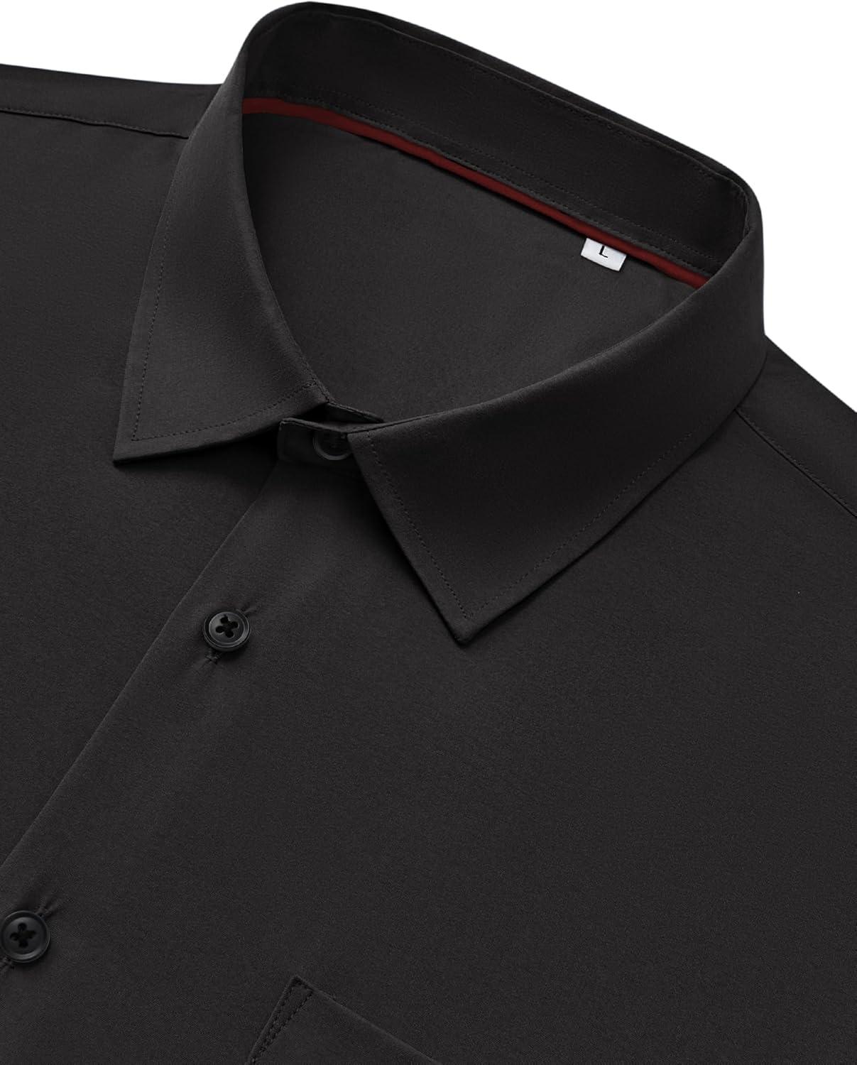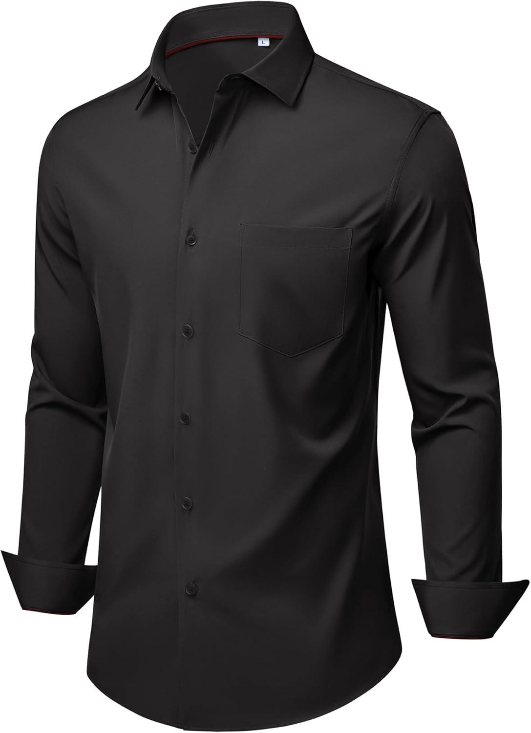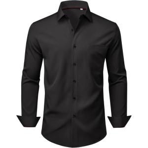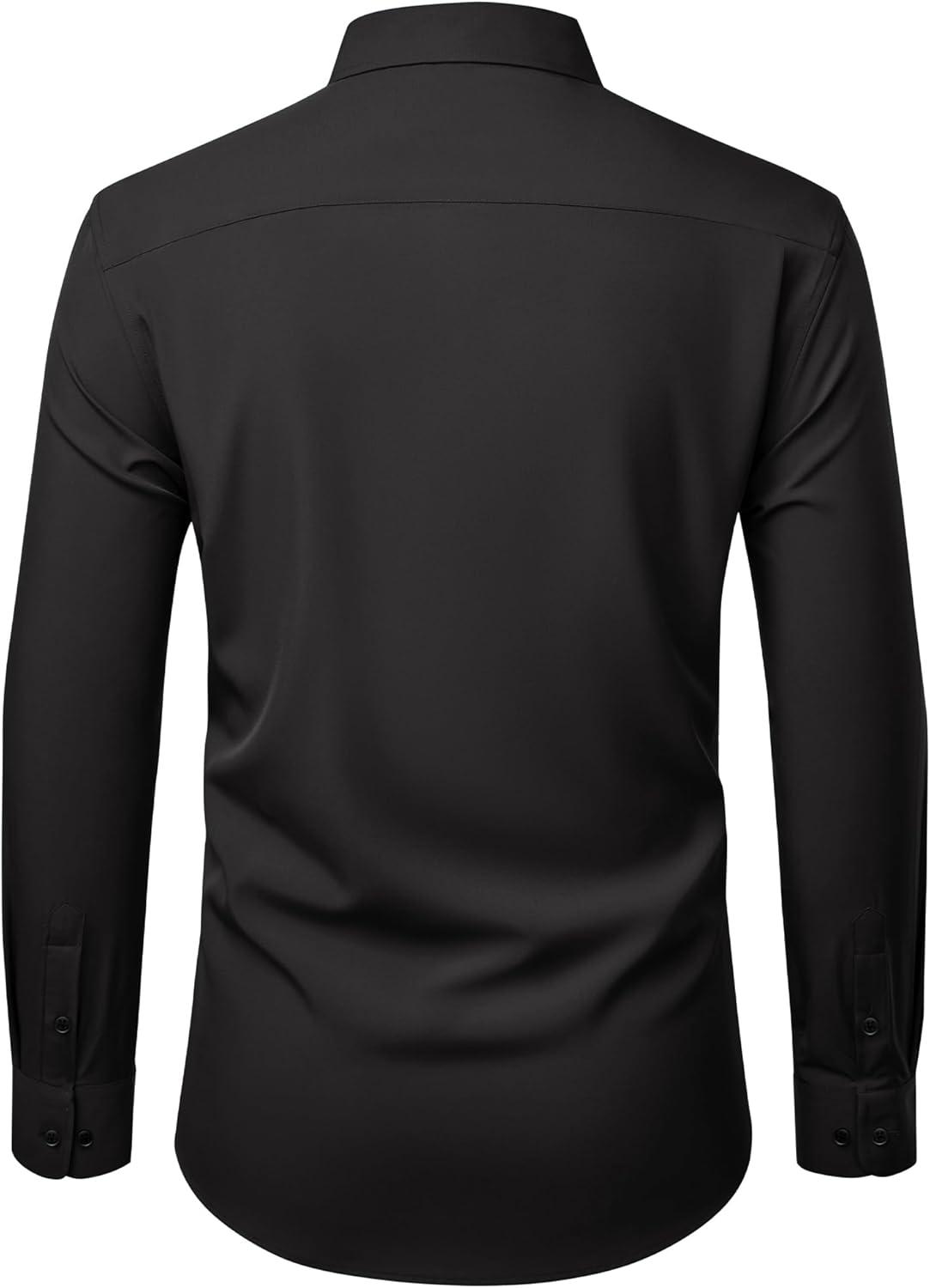Alimens & Gentle Mens Dress Shirts Stretch Long Sleeve Wrinkle Free Business Casual Button Down Shirt for Wedding(Black)