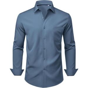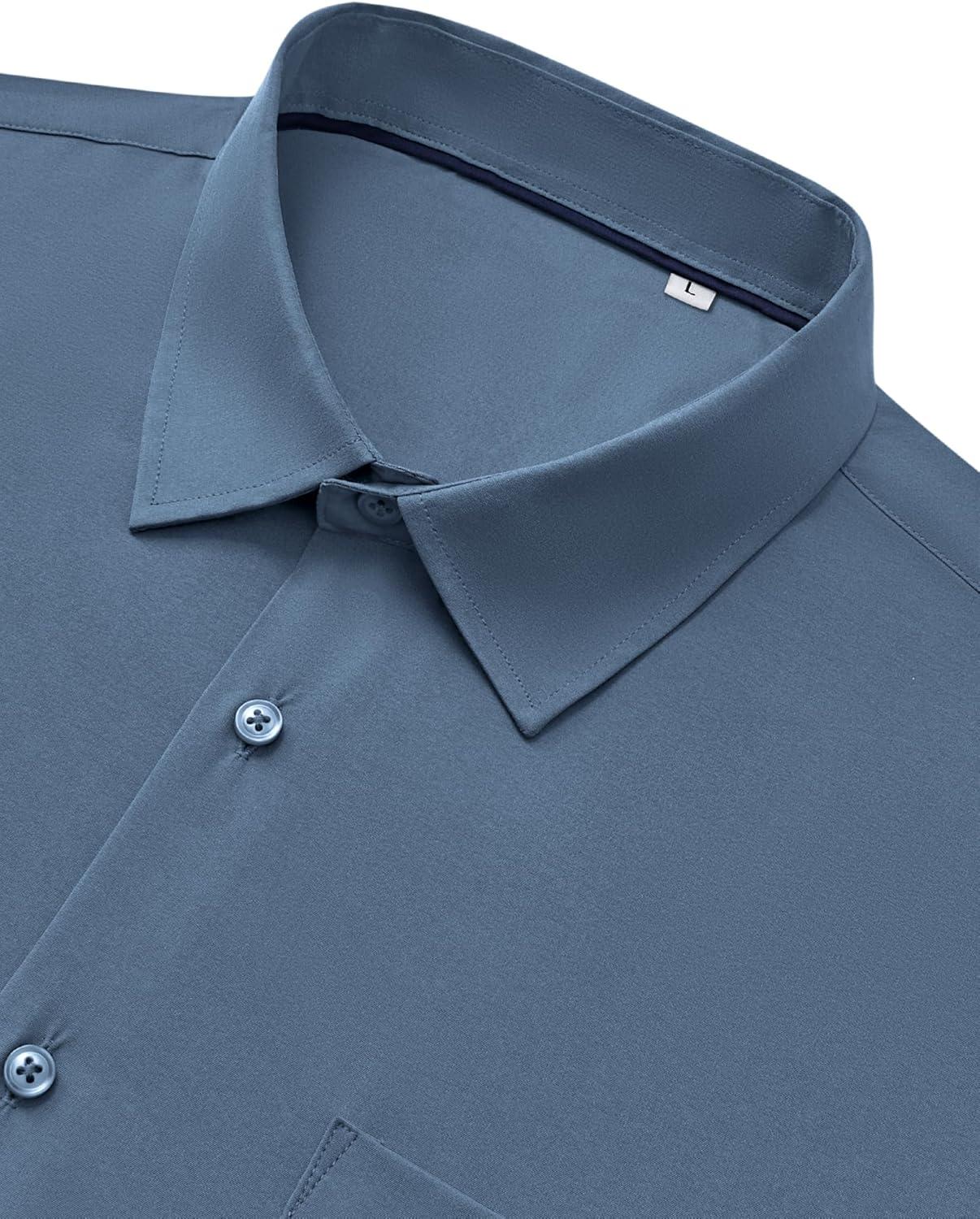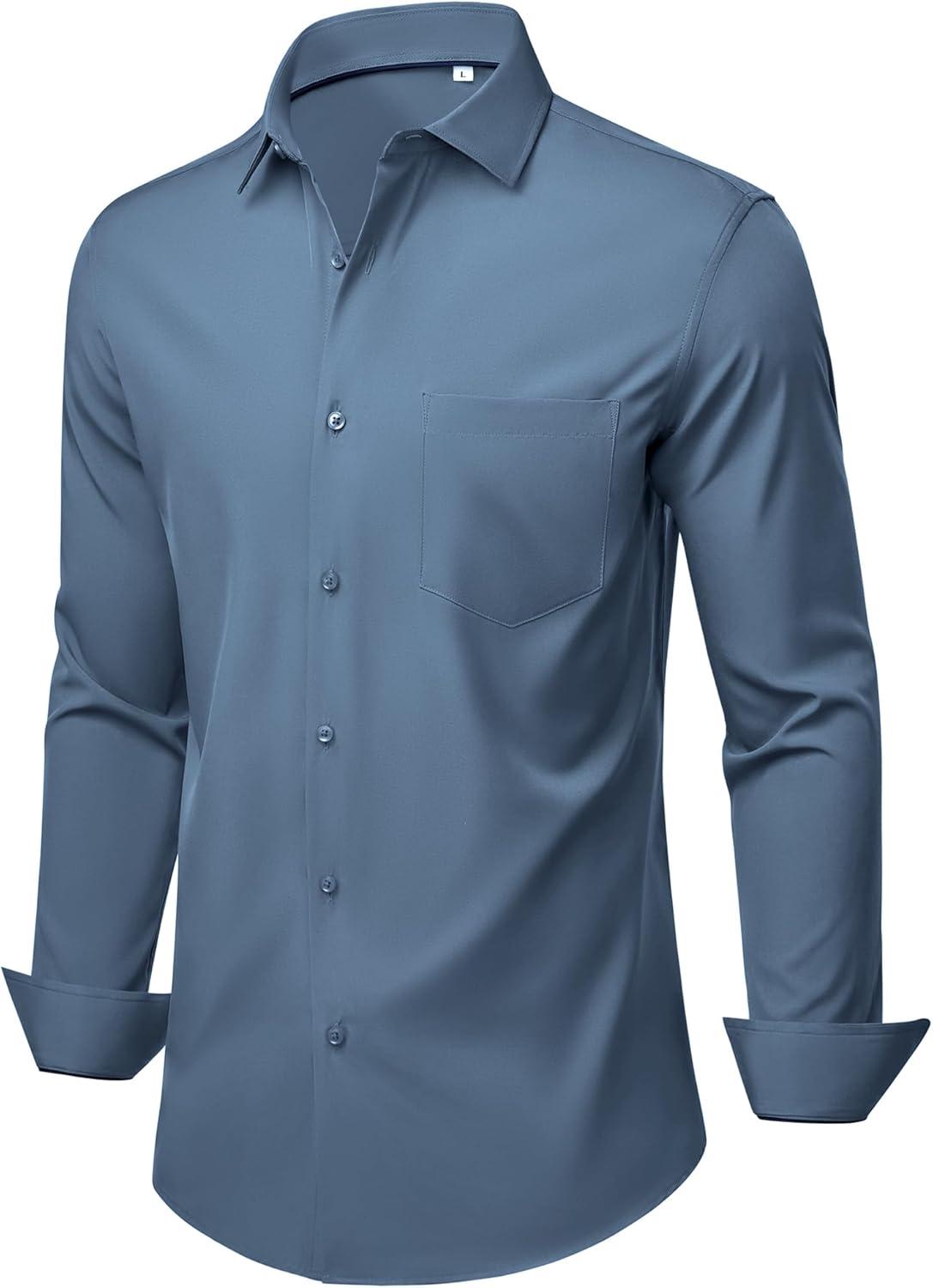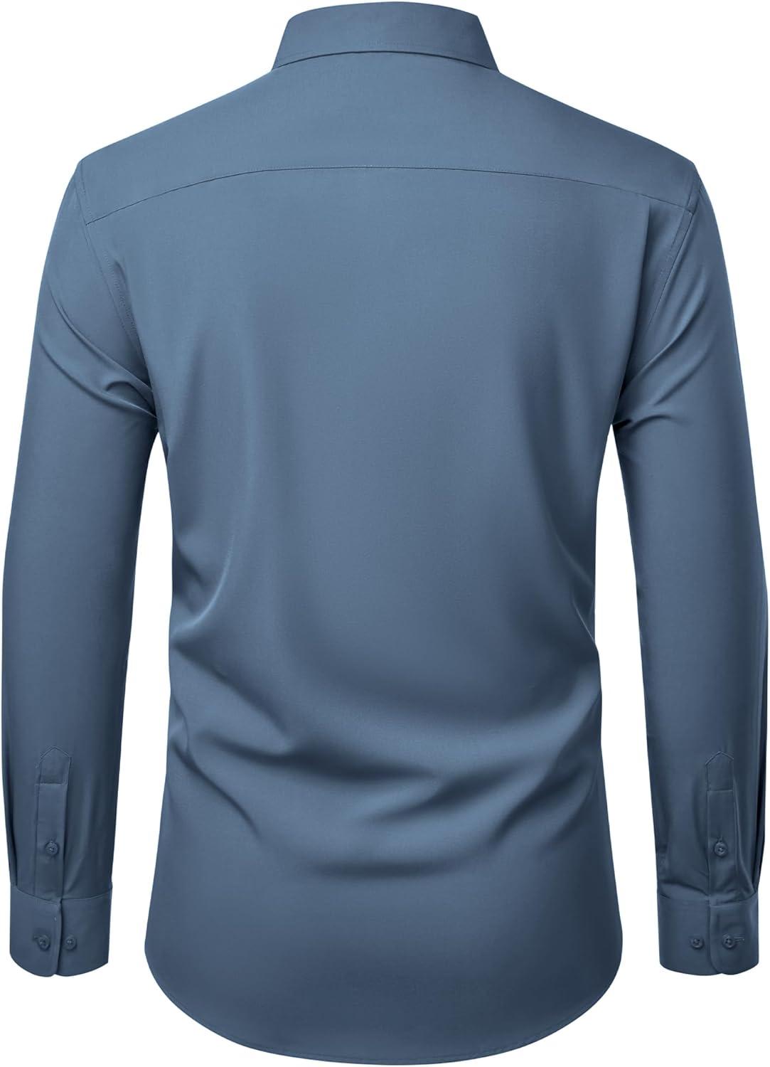 Alimens & Gentle Mens Dress Shirts Stretch Long Sleeve Wrinkle Free Business Casual Button Down Shirt for Wedding(Blue)