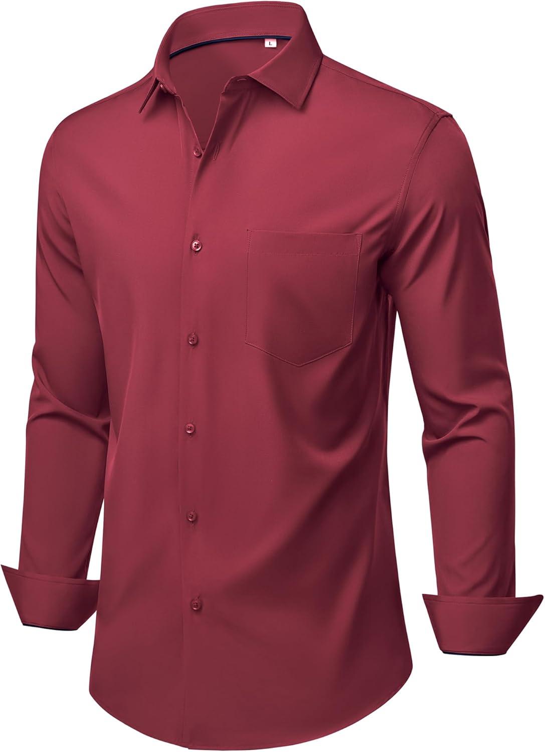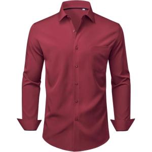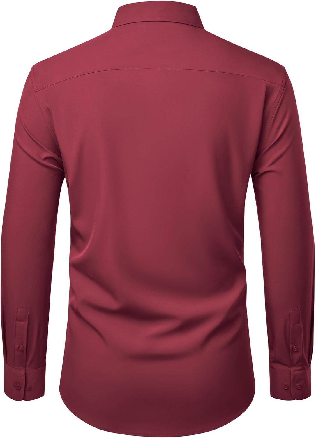 Alimens & Gentle Mens Dress Shirts Stretch Long Sleeve Wrinkle Free Business Casual Button Down Shirt for Wedding(Burgundy)