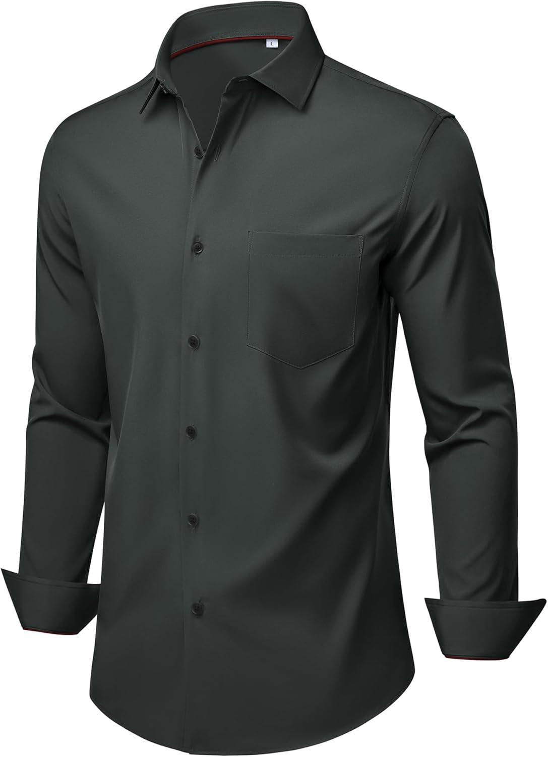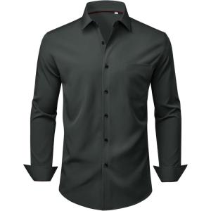 Alimens & Gentle Mens Dress Shirts Stretch Long Sleeve Wrinkle Free Business Casual Button Down Shirt for Wedding(Charcoal)