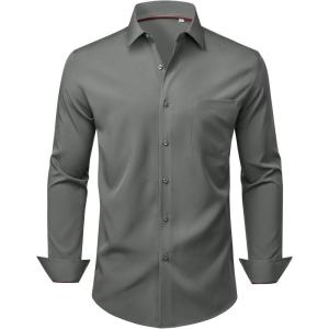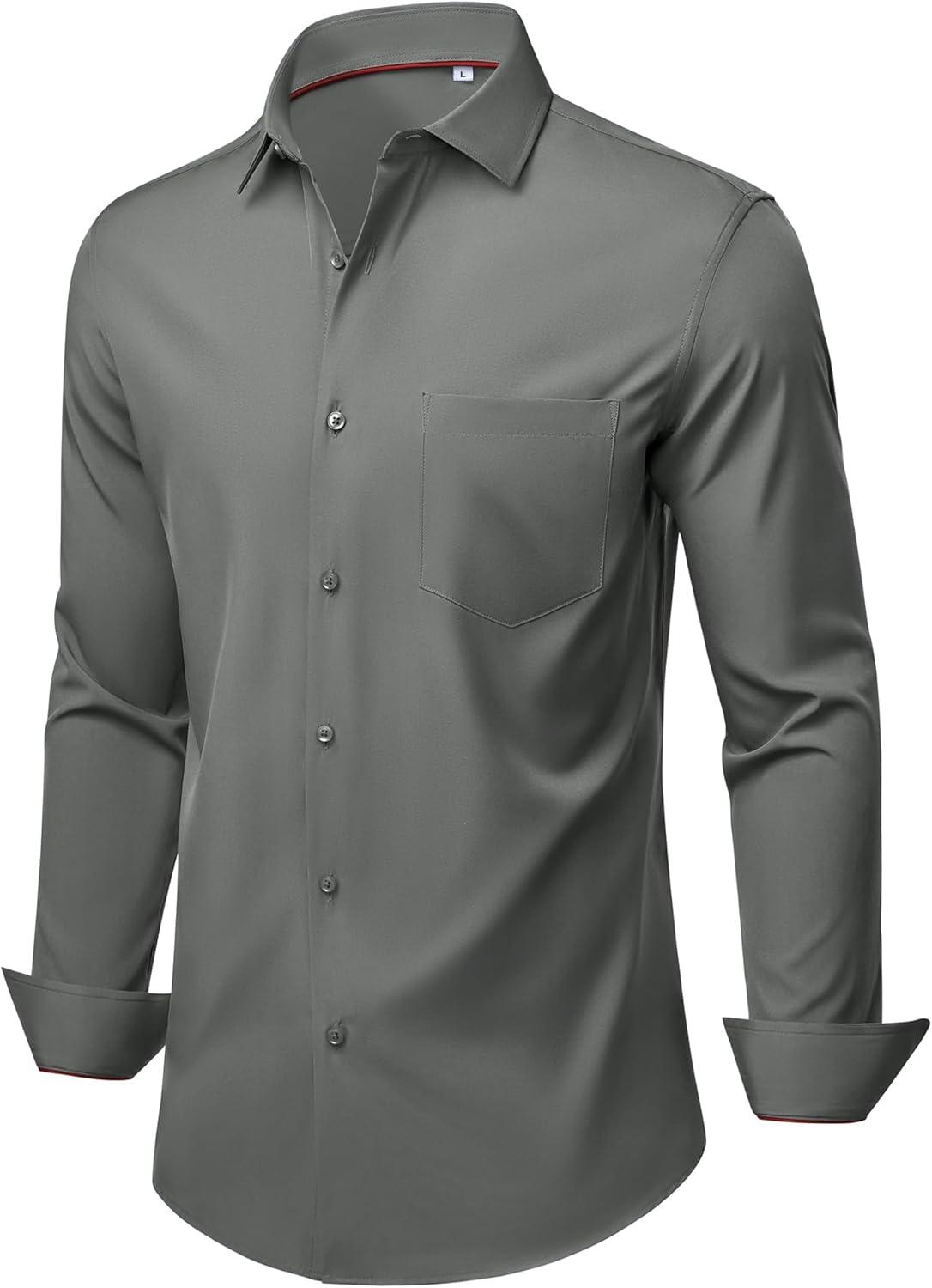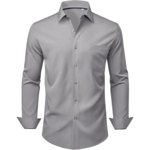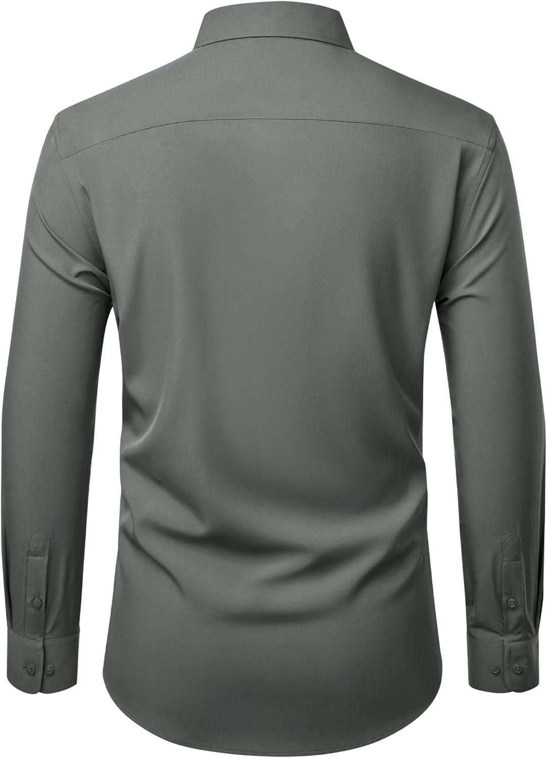 Alimens & Gentle Mens Dress Shirts Stretch Long Sleeve Wrinkle Free Business Casual Button Down Shirt for Wedding(Grey)