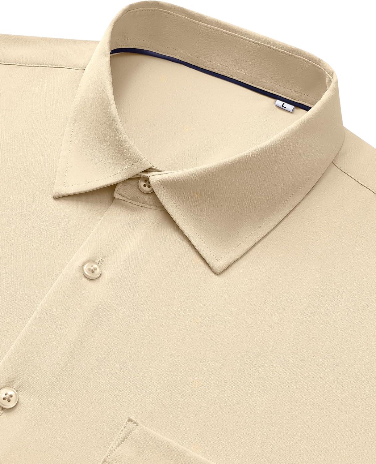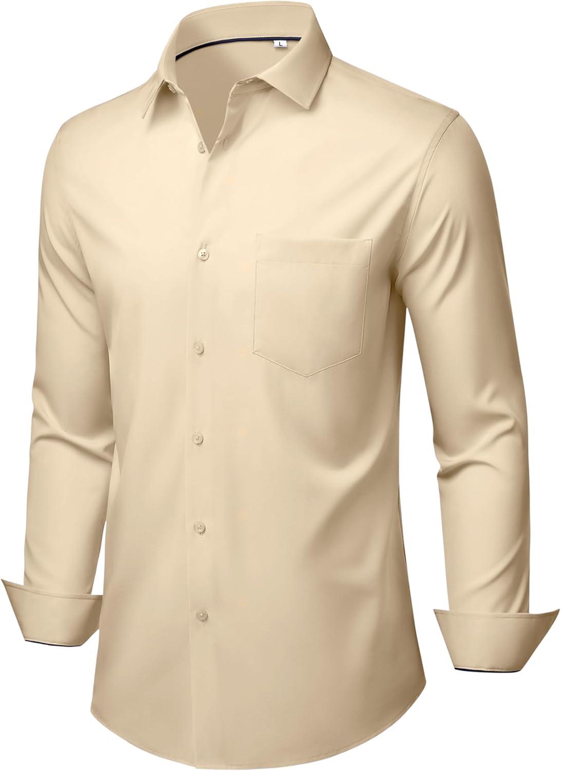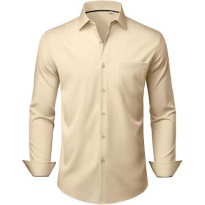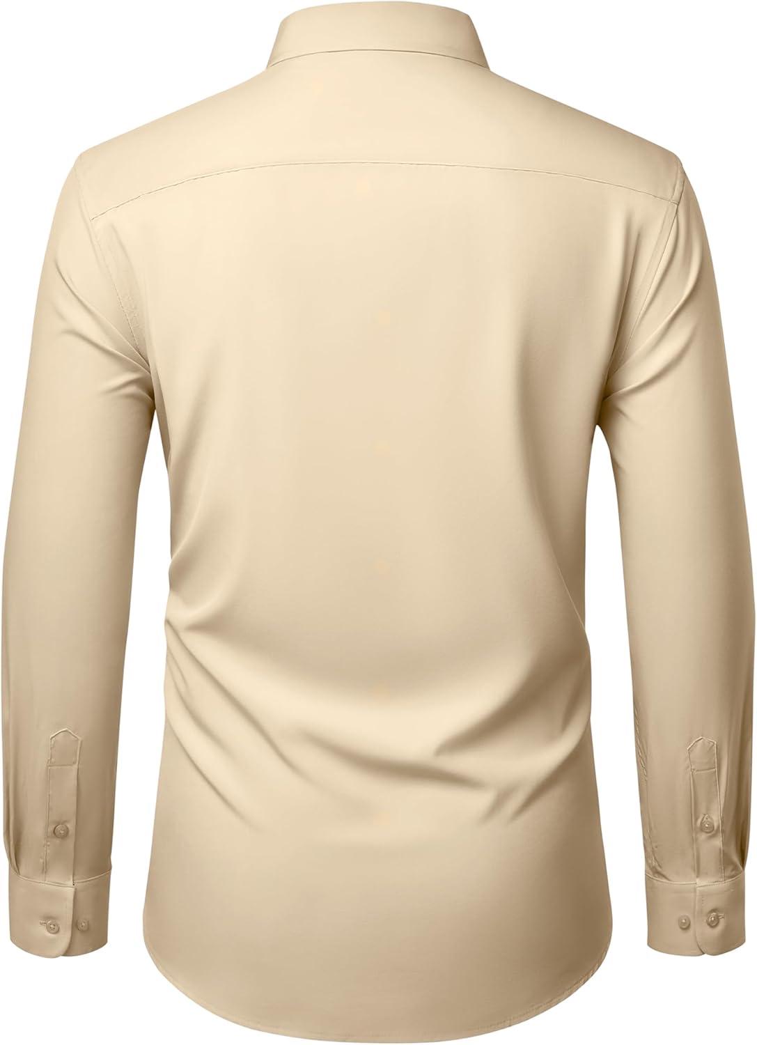 Alimens & Gentle Mens Dress Shirts Stretch Long Sleeve Wrinkle Free Business Casual Button Down Shirt for Wedding(Khaki)