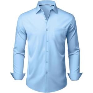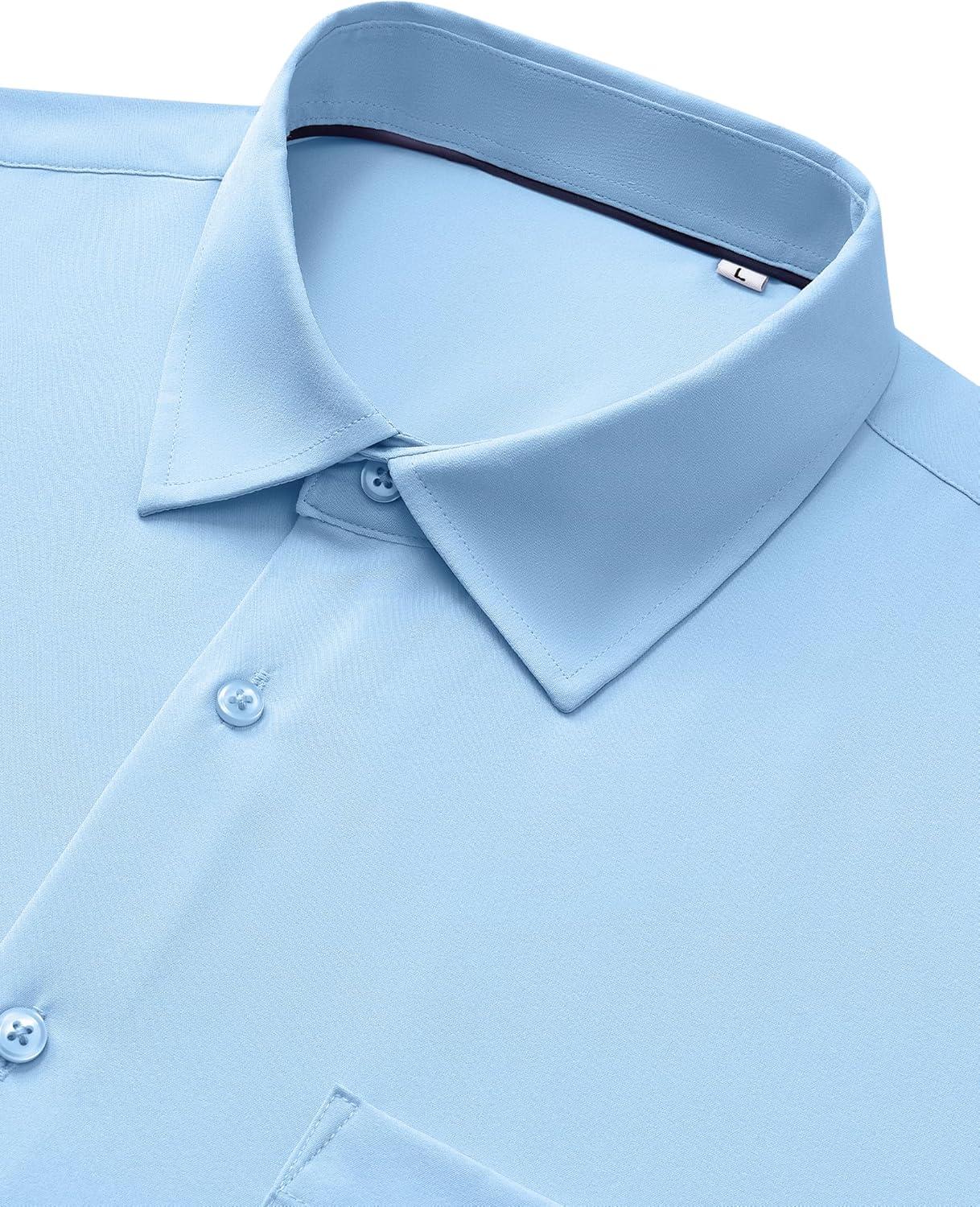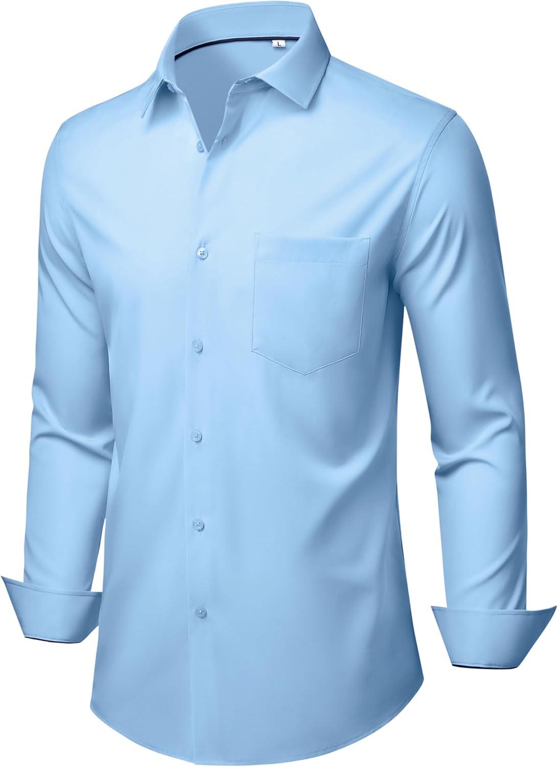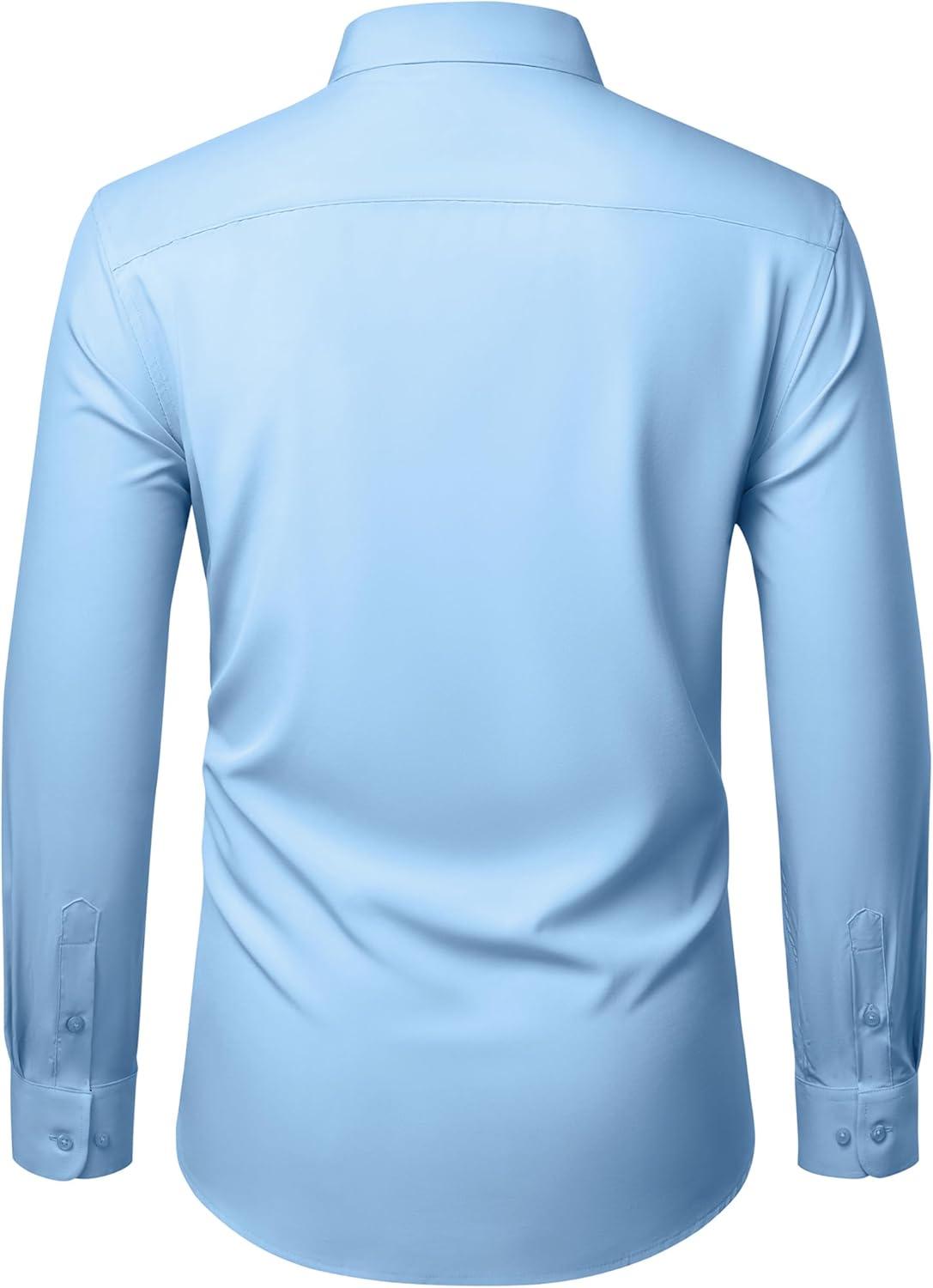 Alimens & Gentle Mens Dress Shirts Stretch Long Sleeve Wrinkle Free Business Casual Button Down Shirt for Wedding(Light Blue)