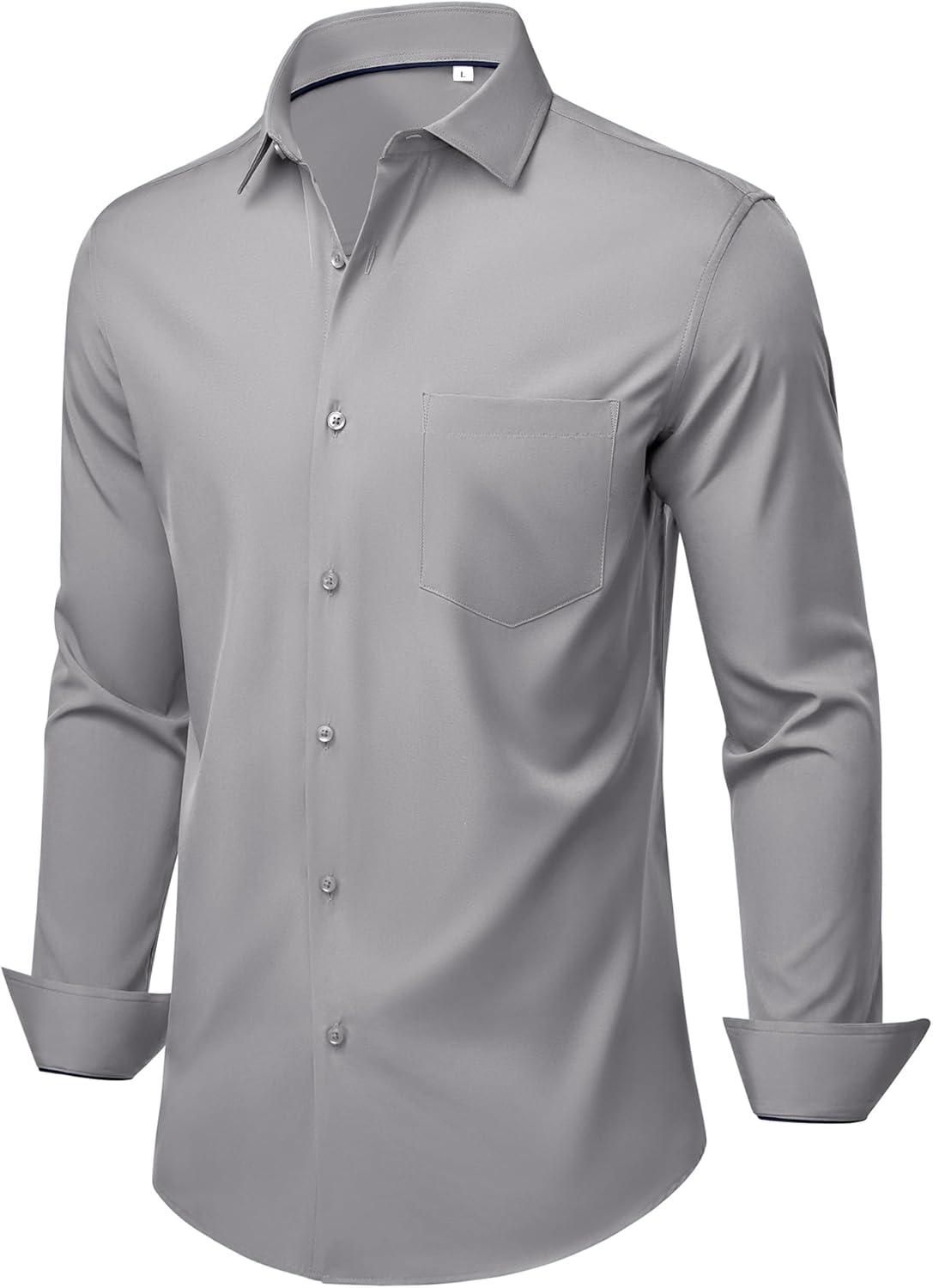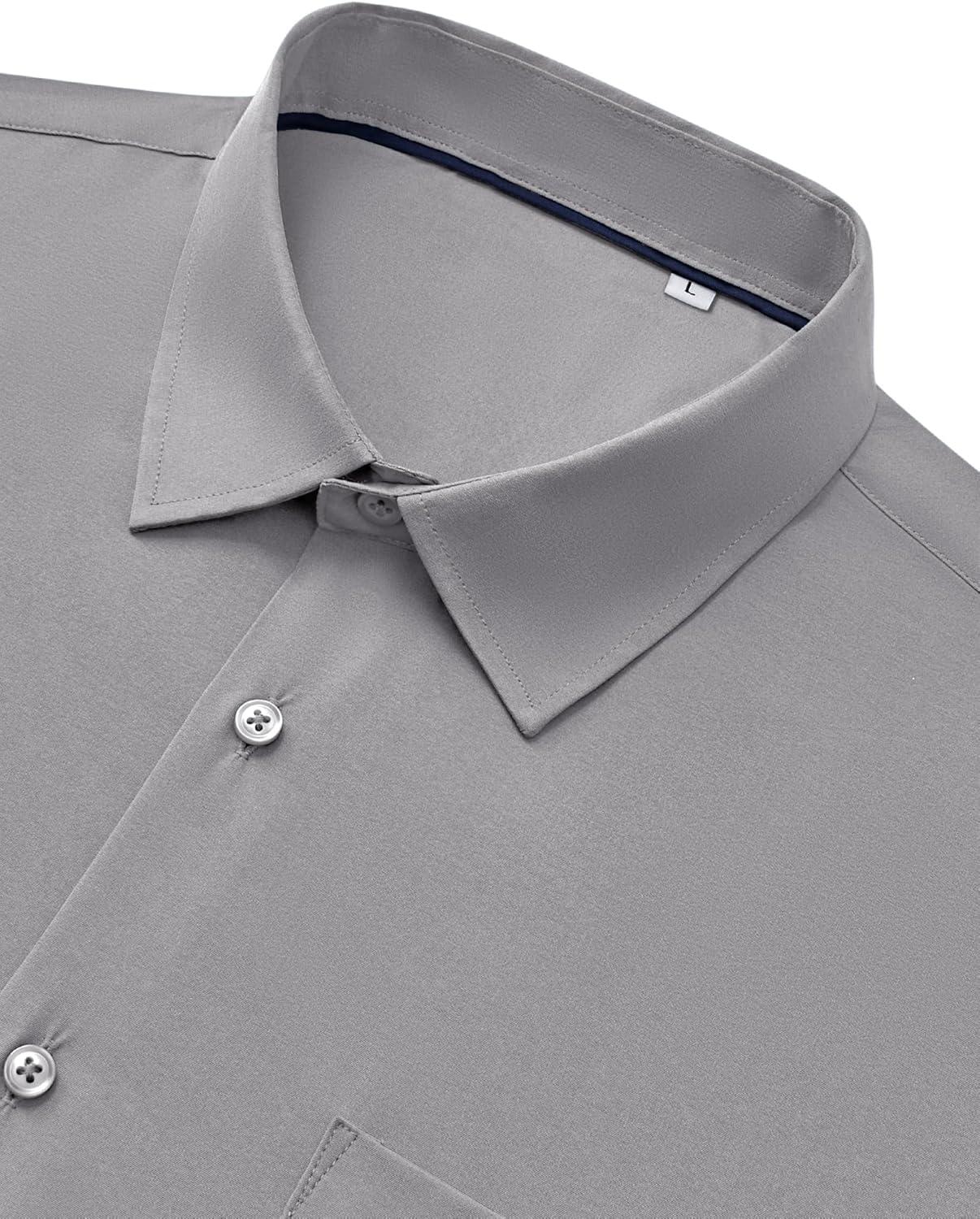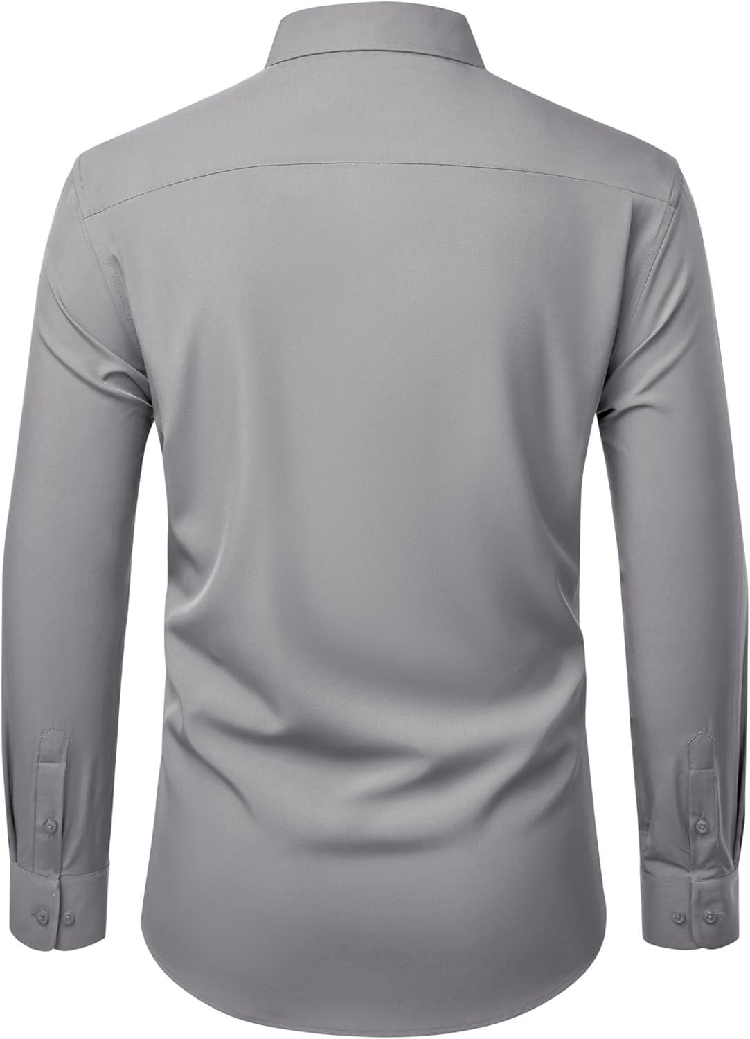 Alimens & Gentle Mens Dress Shirts Stretch Long Sleeve Wrinkle Free Business Casual Button Down Shirt for Wedding(Light Grey)