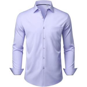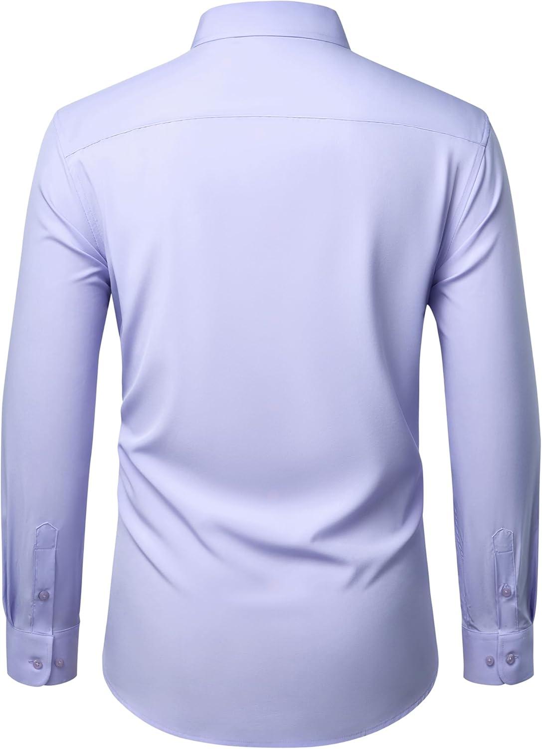 Alimens & Gentle Mens Dress Shirts Stretch Long Sleeve Wrinkle Free Business Casual Button Down Shirt for Wedding(Light Purple)