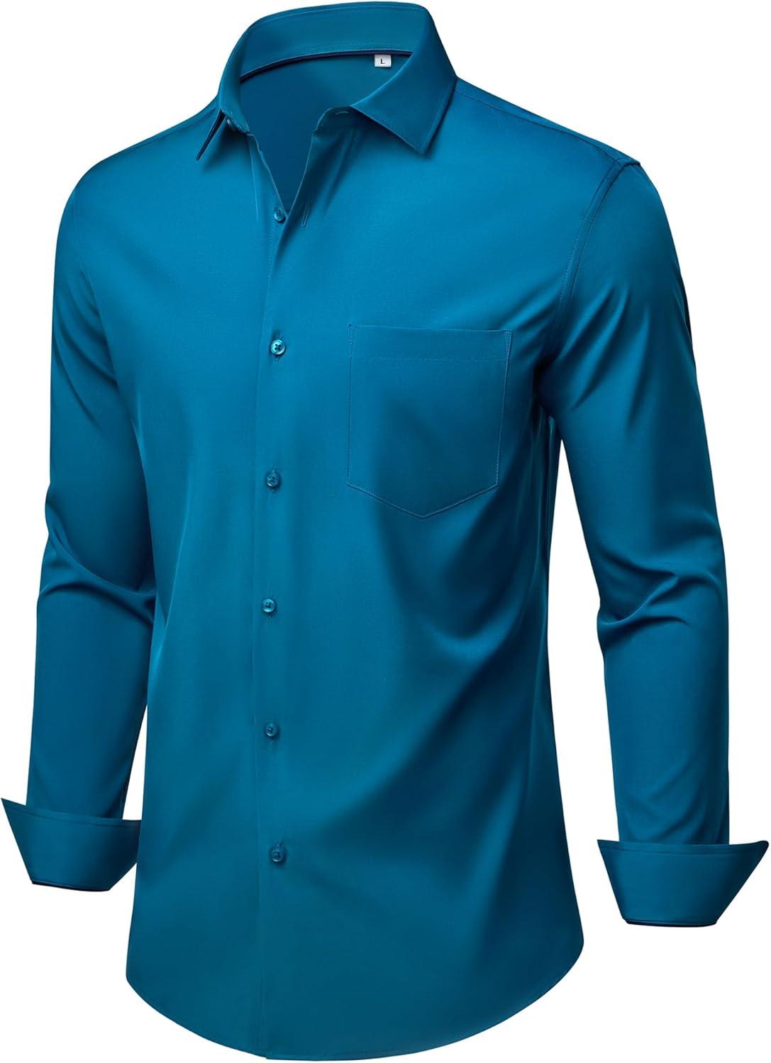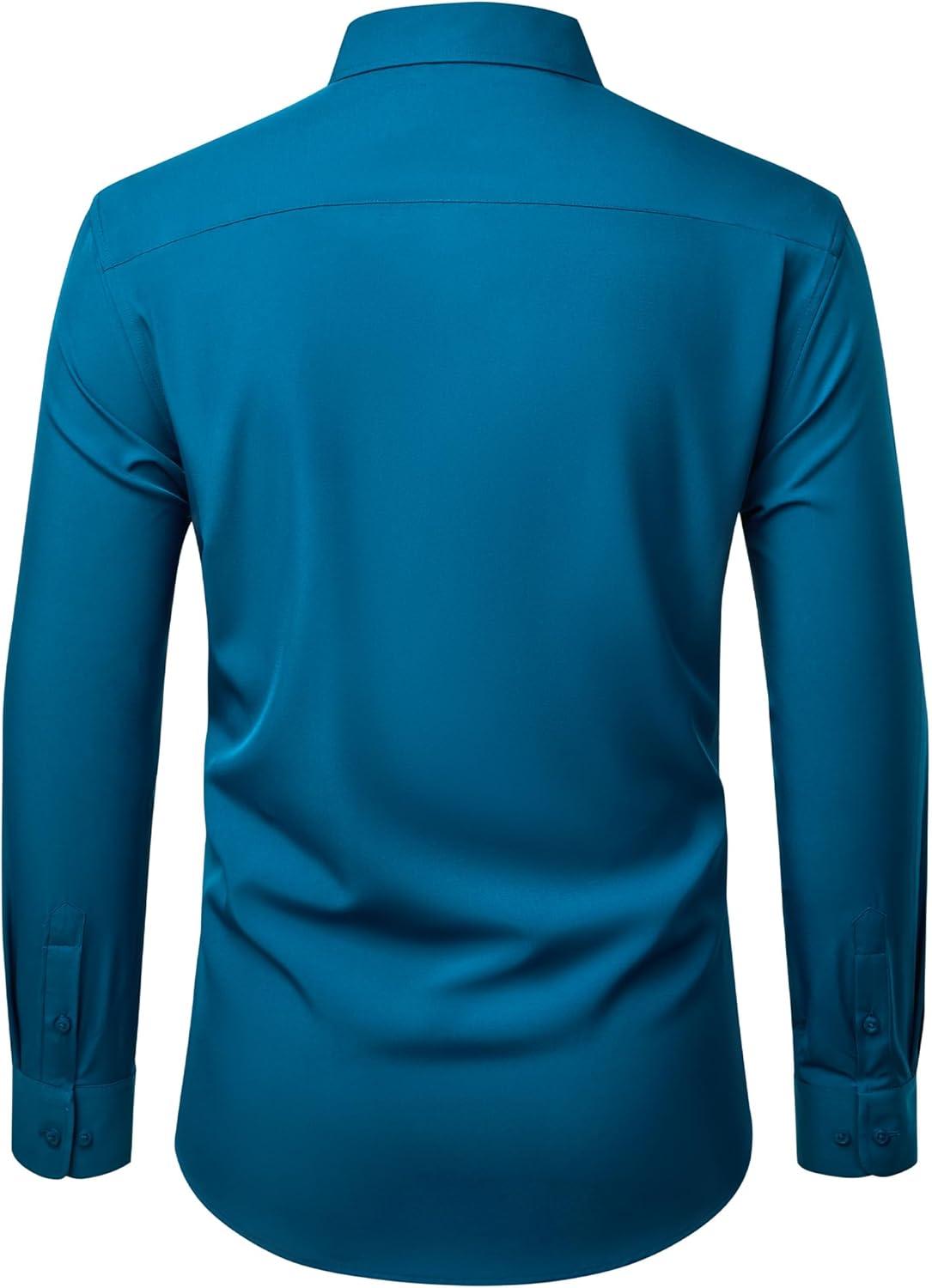 Alimens & Gentle Mens Dress Shirts Stretch Long Sleeve Wrinkle Free Business Casual Button Down Shirt for Wedding(Peacock Blue)