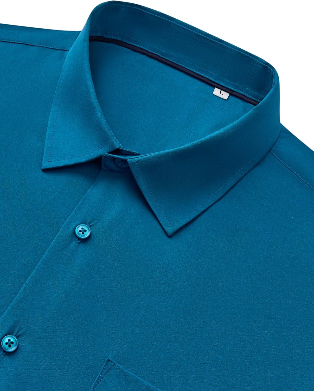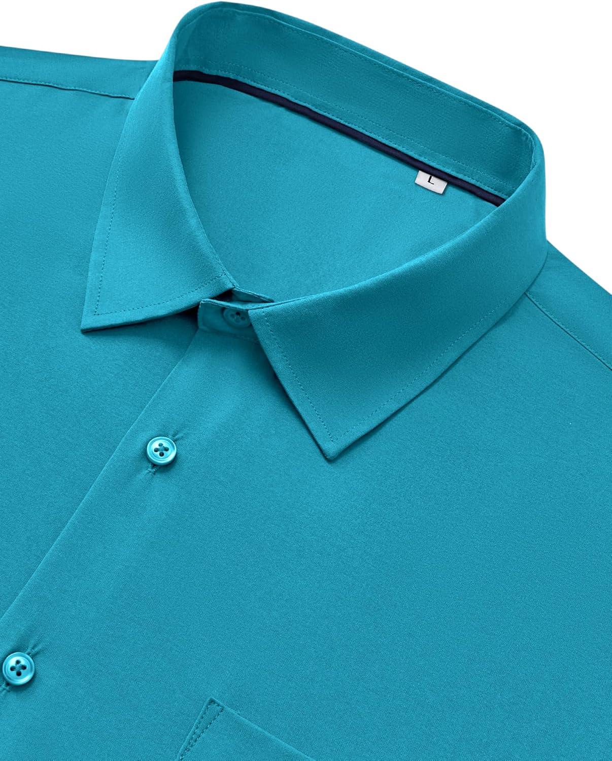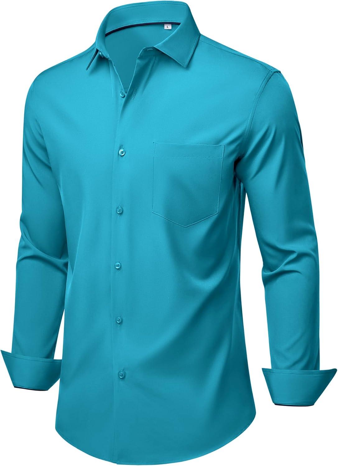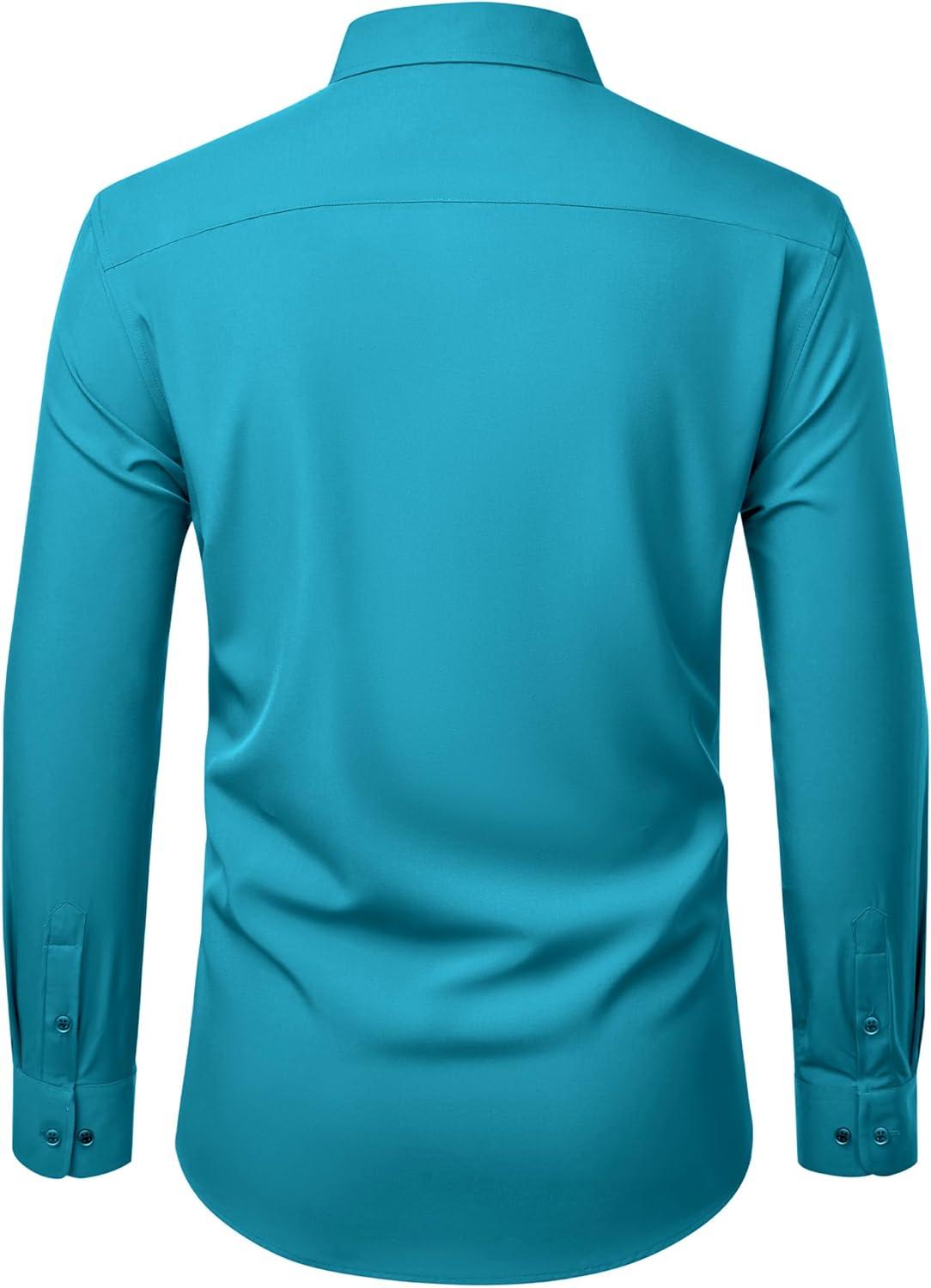 Alimens & Gentle Mens Dress Shirts Stretch Long Sleeve Wrinkle Free Business Casual Button Down Shirt for Wedding(Turquoise)