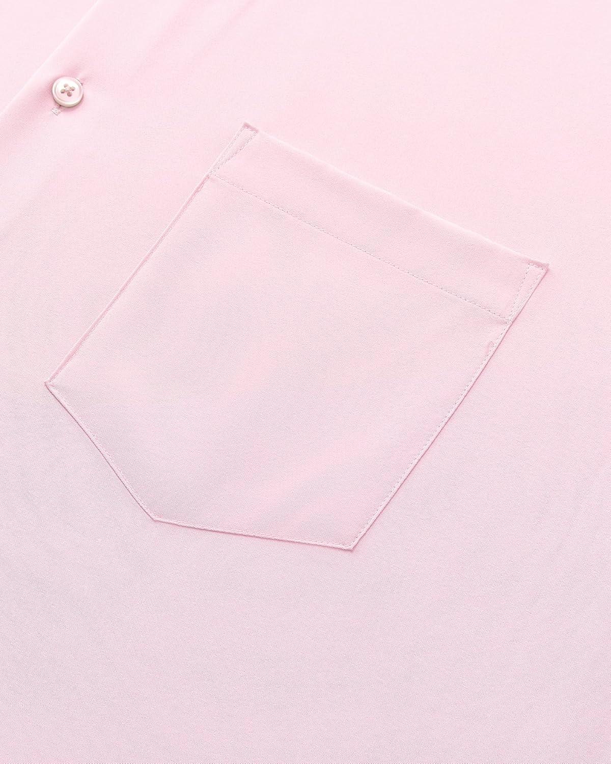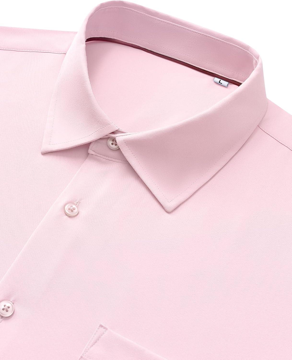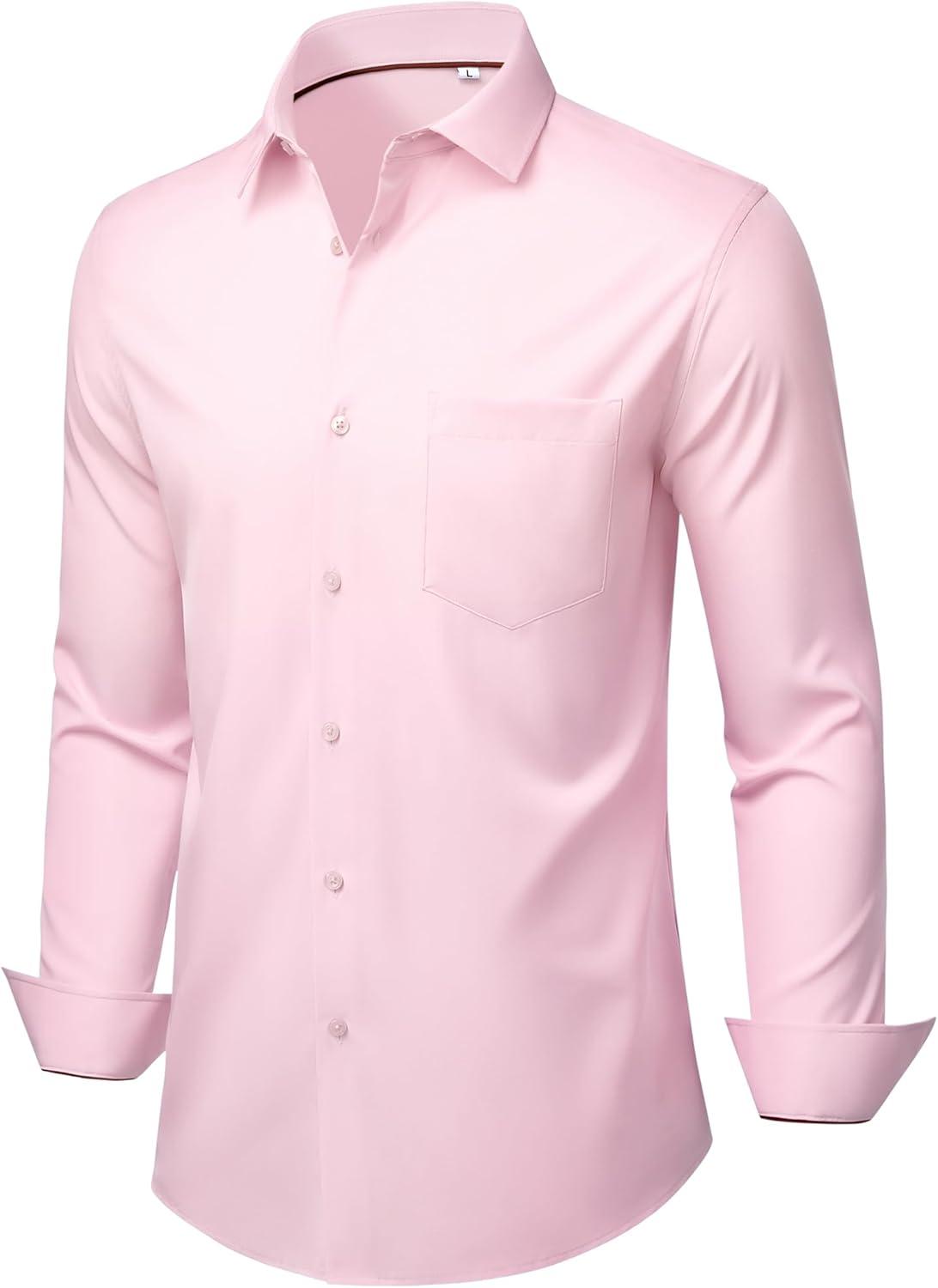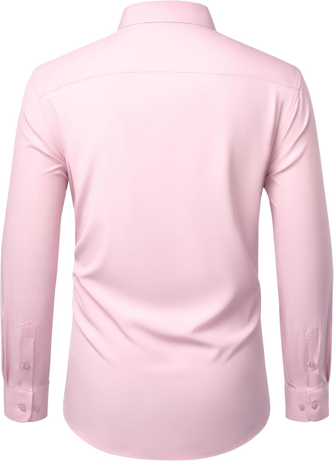 Alimens & Gentle Mens Dress Shirts Stretch Long Sleeve Wrinkle Free Business Casual Button Down Shirt for Wedding(Pink)