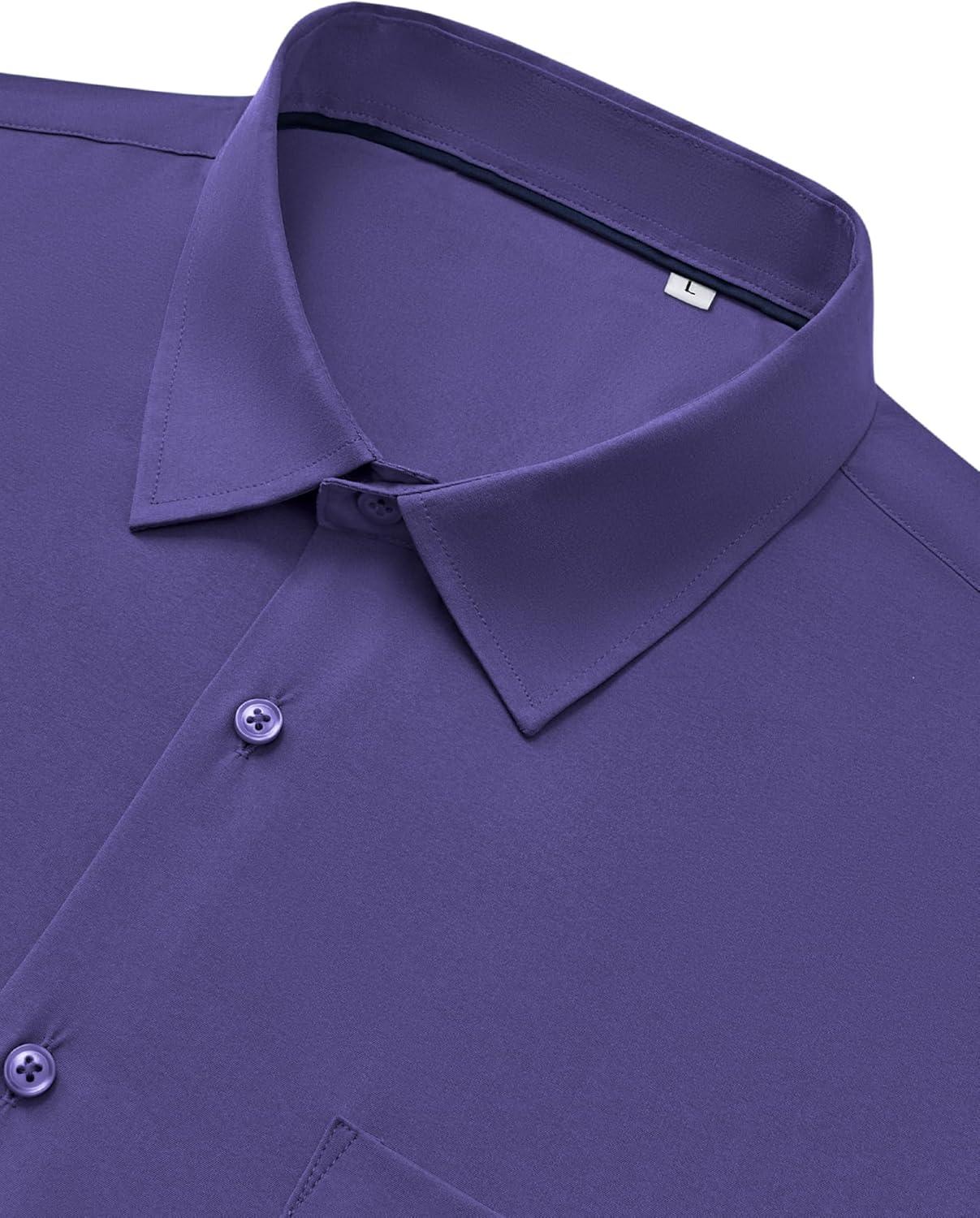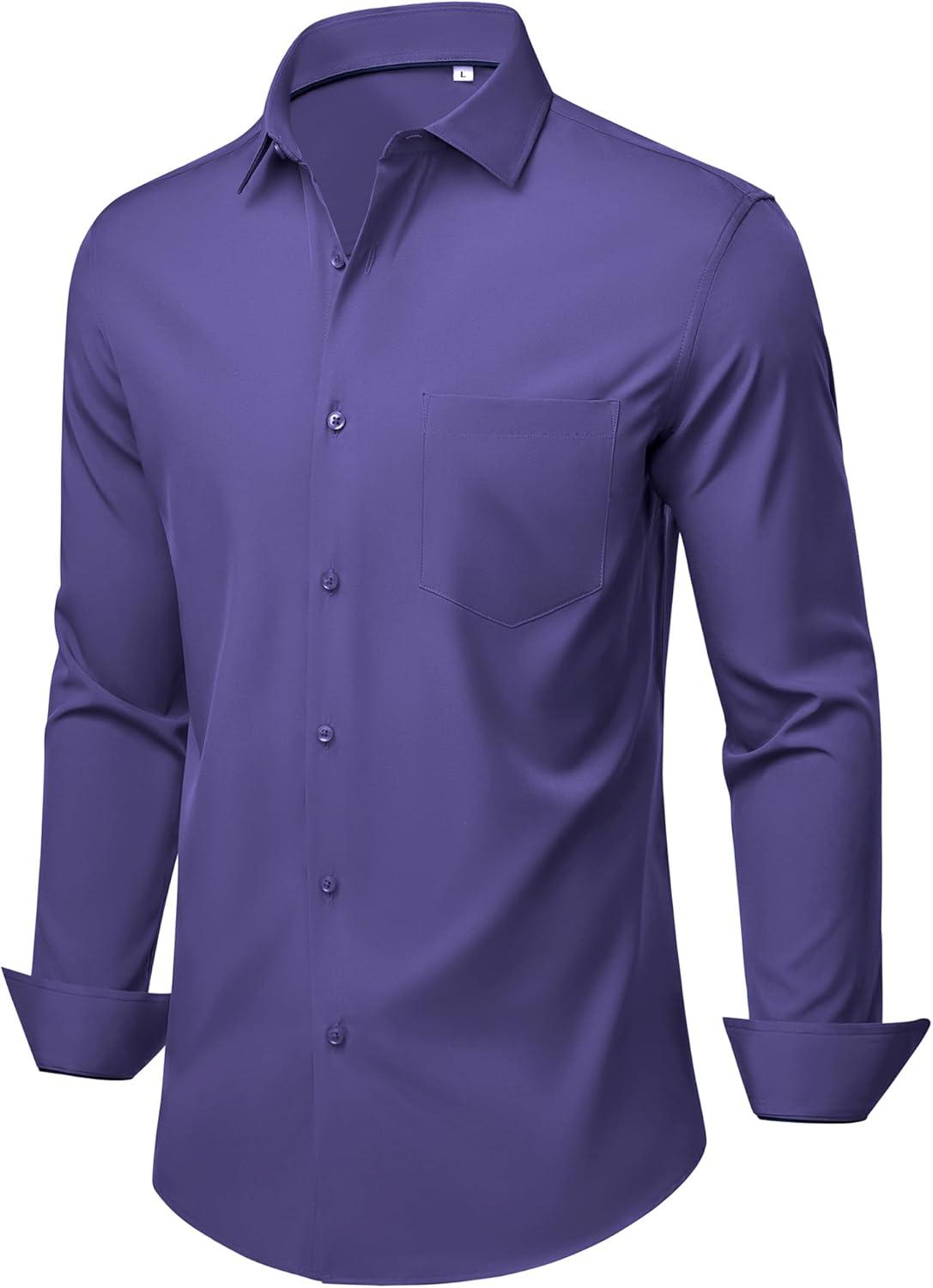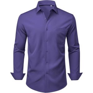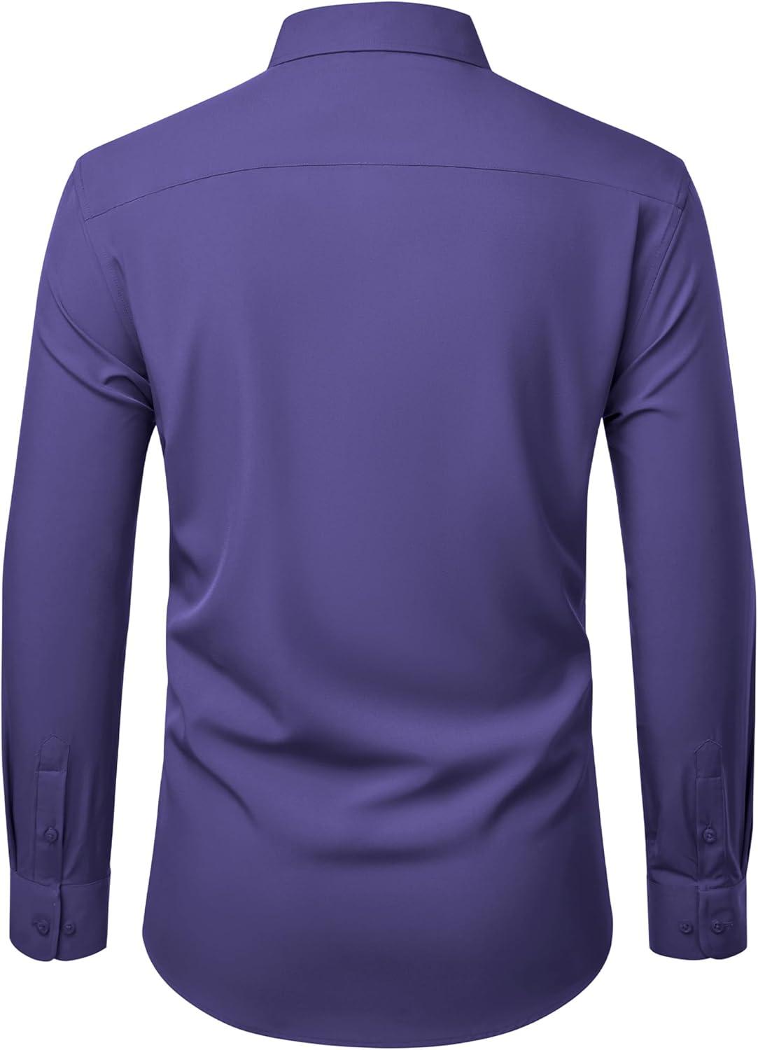 Alimens & Gentle Mens Dress Shirts Stretch Long Sleeve Wrinkle Free Business Casual Button Down Shirt for Wedding(Purple)