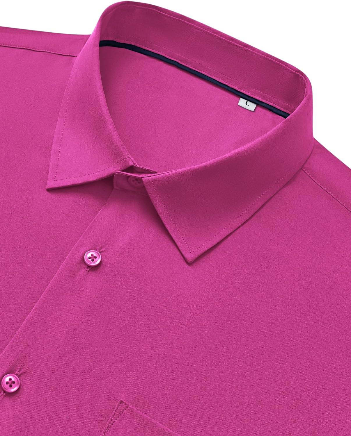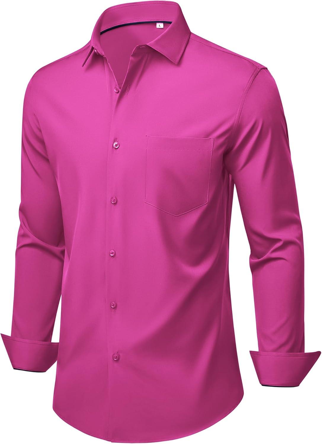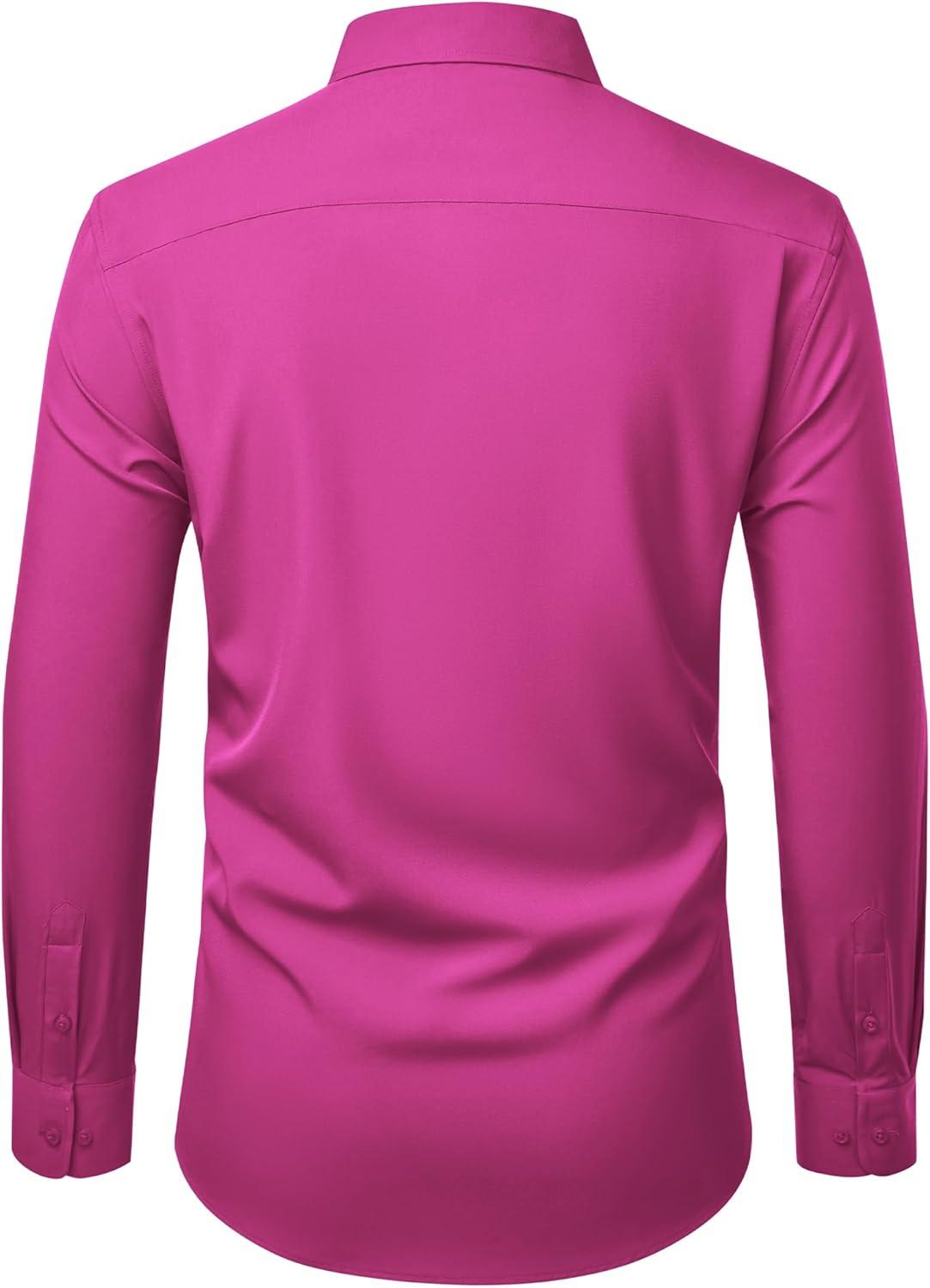 Alimens & Gentle Mens Dress Shirts Stretch Long Sleeve Wrinkle Free Business Casual Button Down Shirt for Wedding(Rose Pink)