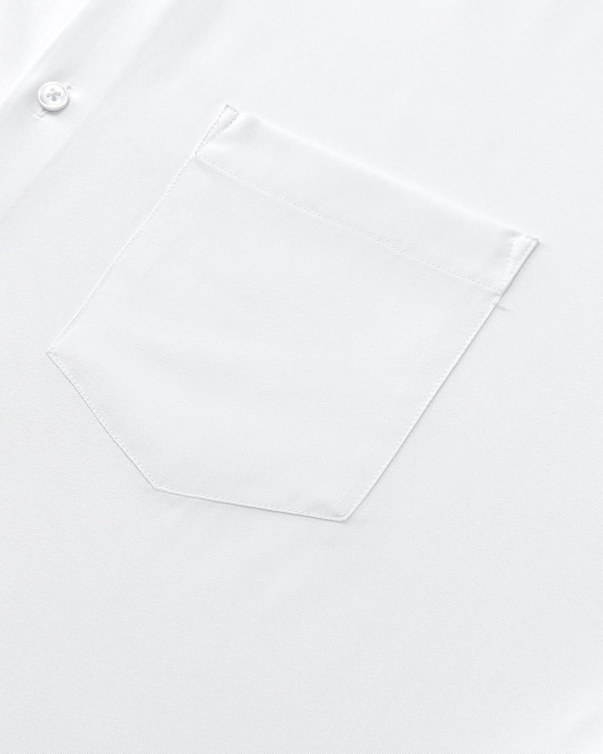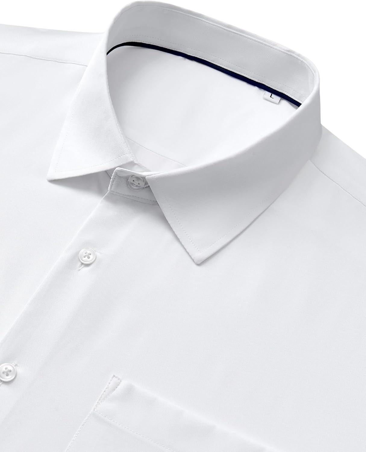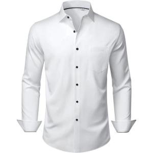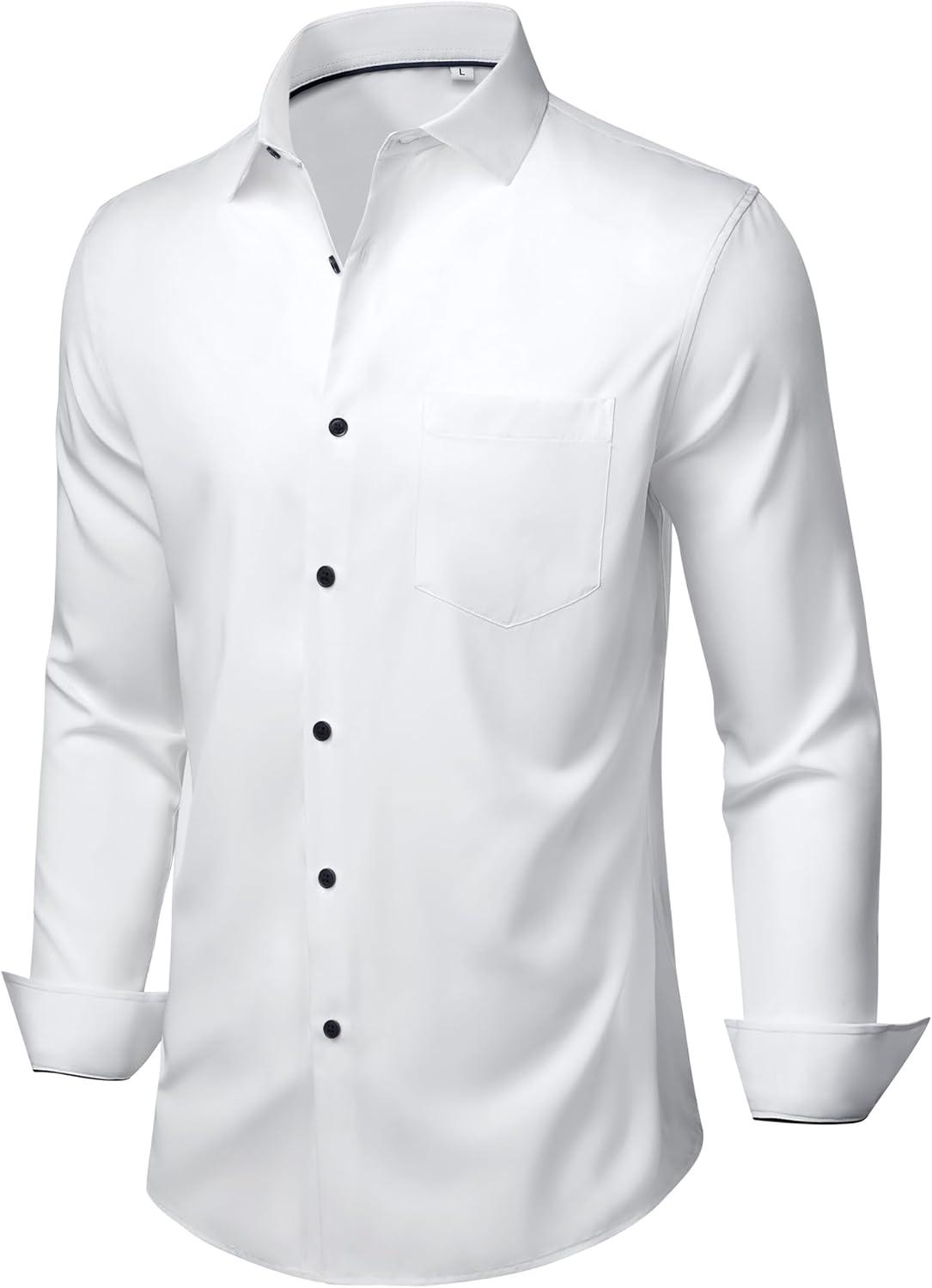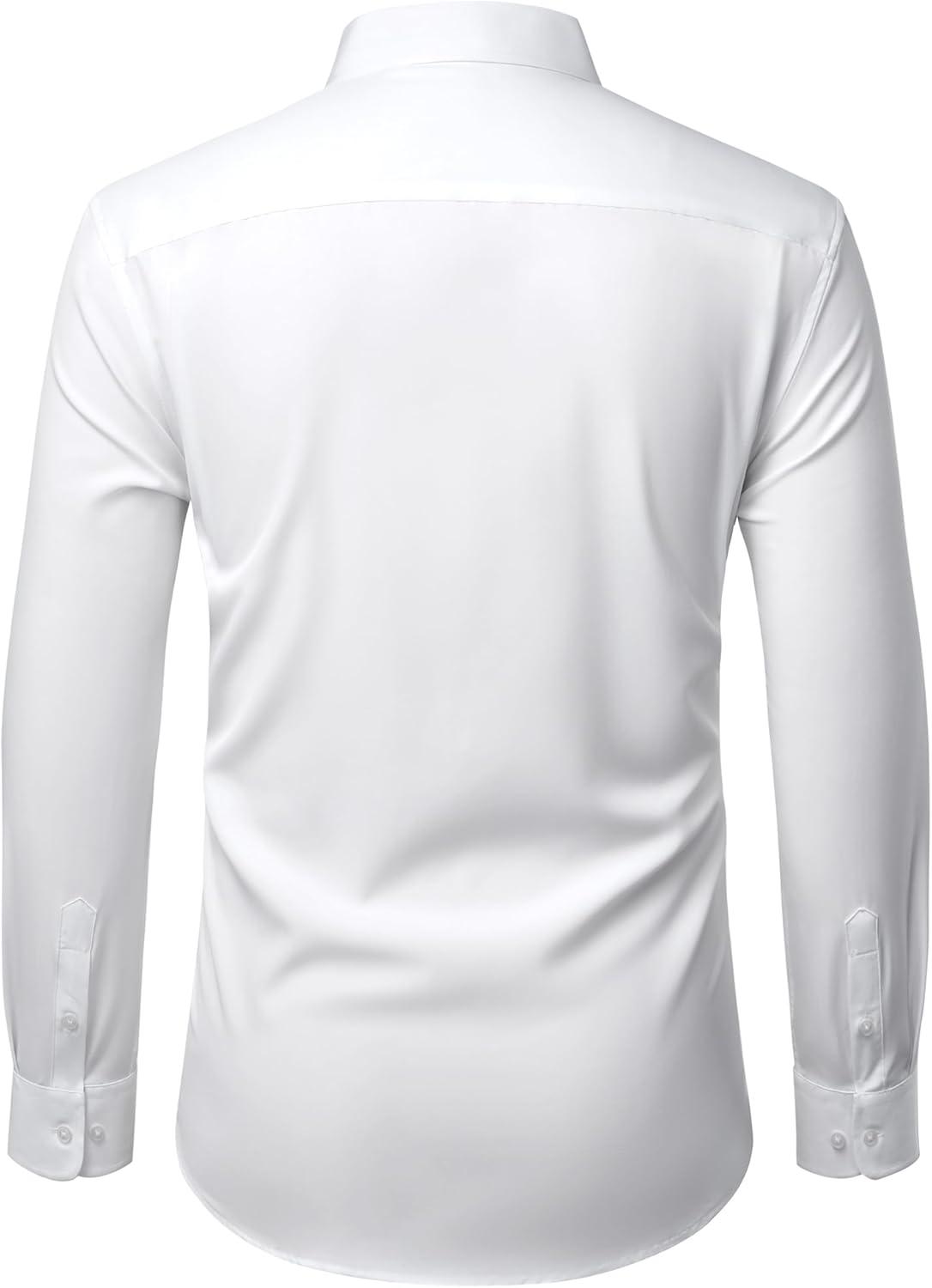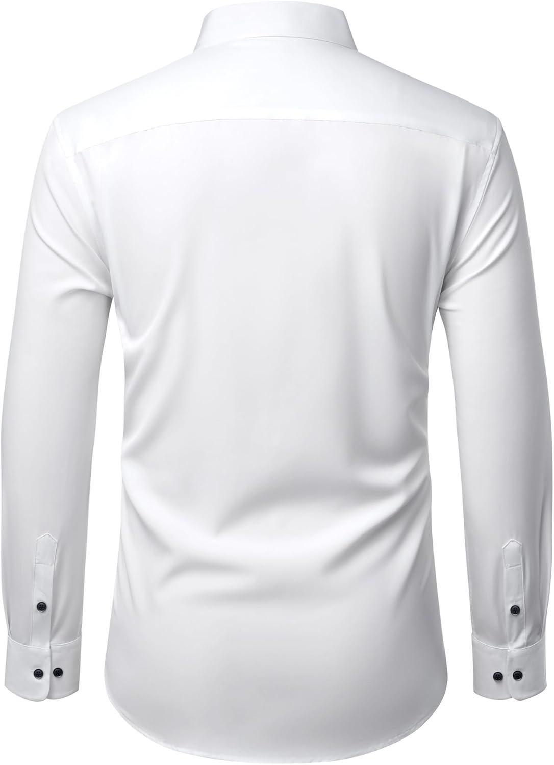 Alimens & Gentle Mens Dress Shirts Stretch Long Sleeve Wrinkle Free Business Casual Button Down Shirt for Wedding(White)