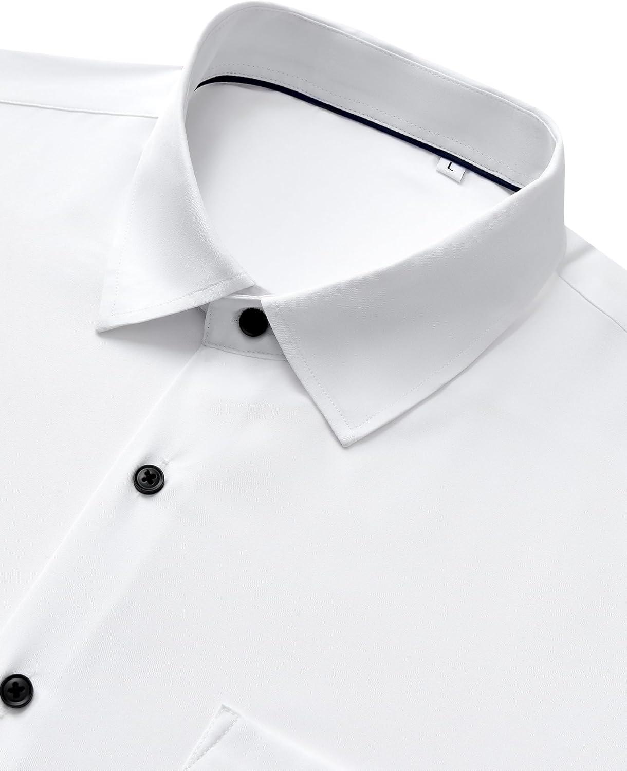 Alimens & Gentle Mens Dress Shirts Stretch Long Sleeve Wrinkle Free Business Casual Button Down Shirt for Wedding(White Black)