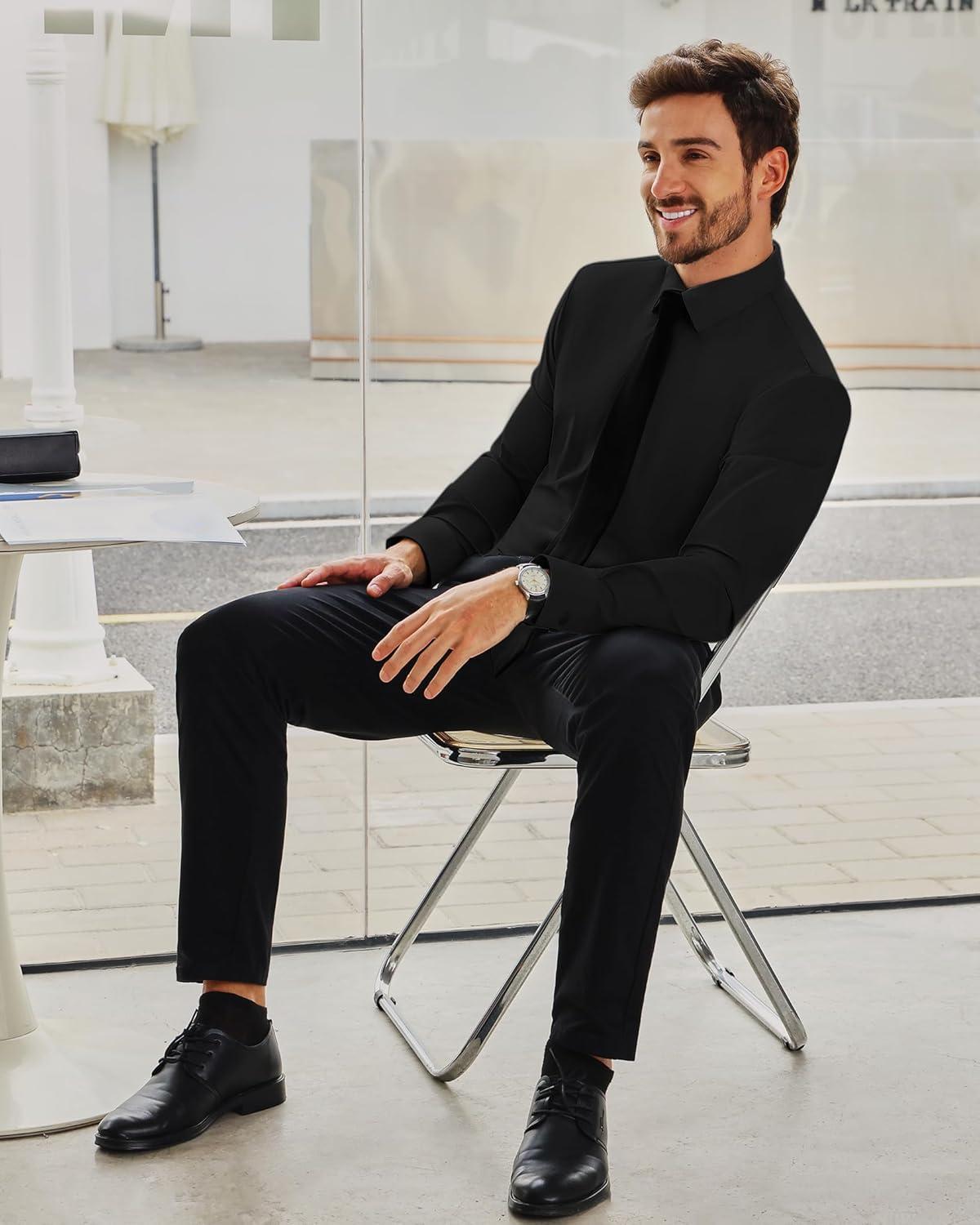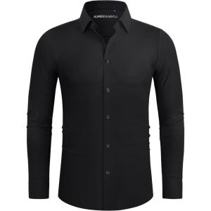 • Alimens & Gentle Stretch Mens Dress Shirts Slim Fit Long Sleeve Casual Skinny Muscle Fit Wrinkle Free Button Down Shirt(Black)