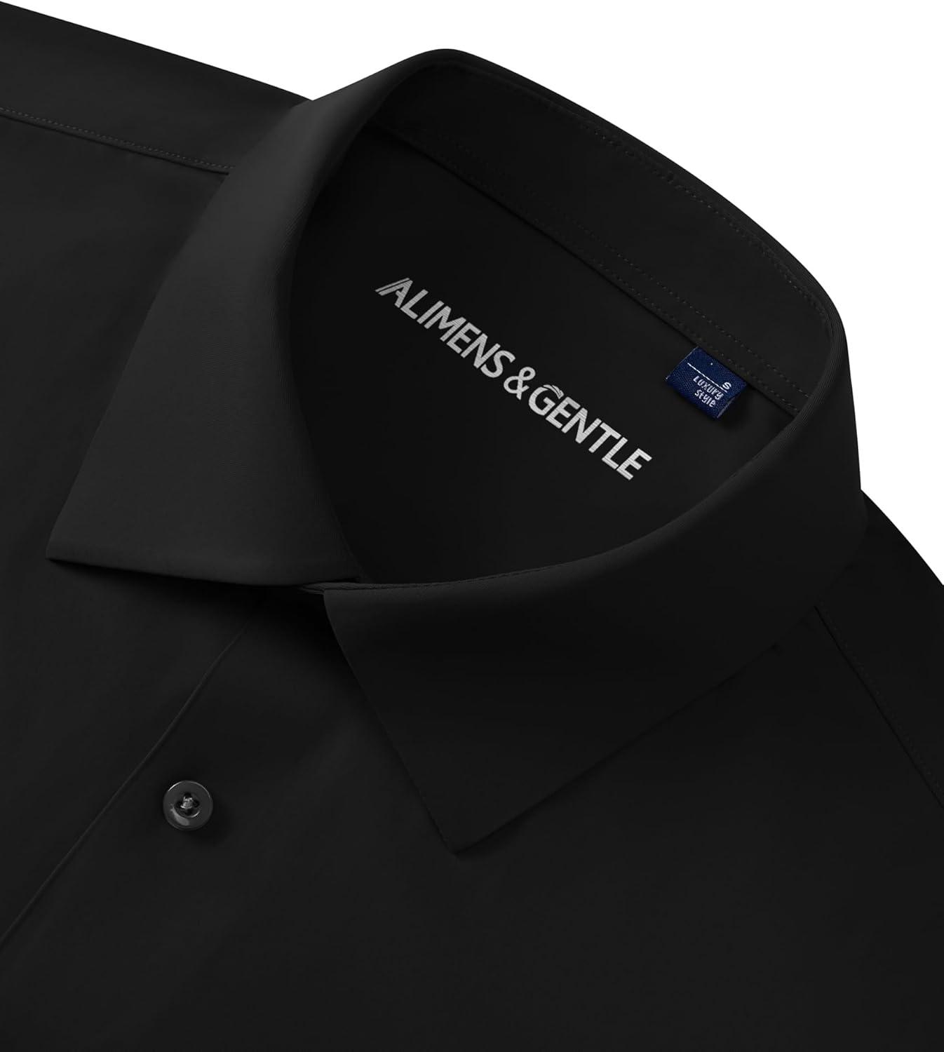 Alimens & Gentle Stretch Mens Dress Shirts Slim Fit Long Sleeve Casual Skinny Muscle Fit Wrinkle Free Button Down Shirt(Black)