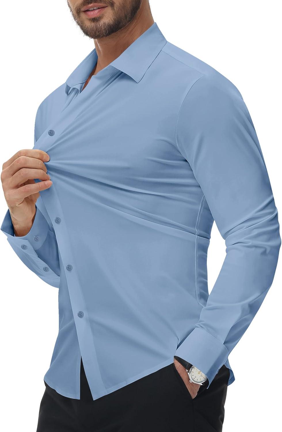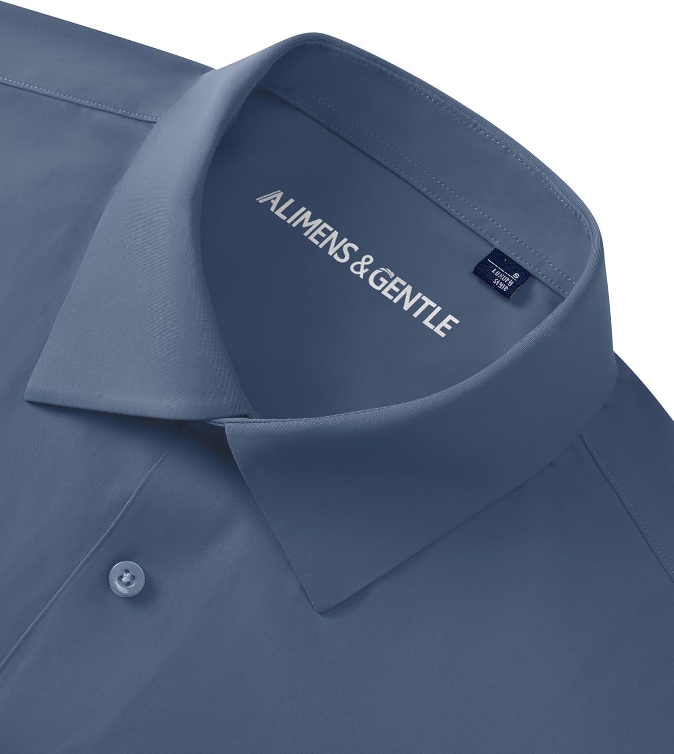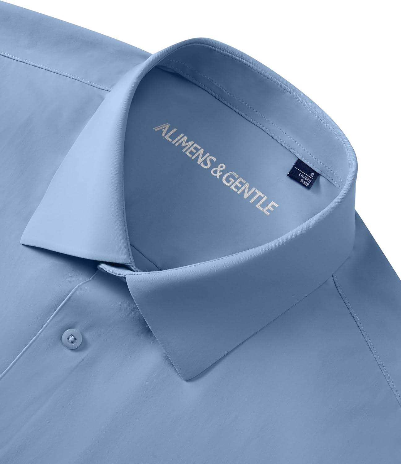 Alimens & Gentle Stretch Mens Dress Shirts Slim Fit Long Sleeve Casual Skinny Muscle Fit Wrinkle Free Button Down Shirt(Cool Blue)