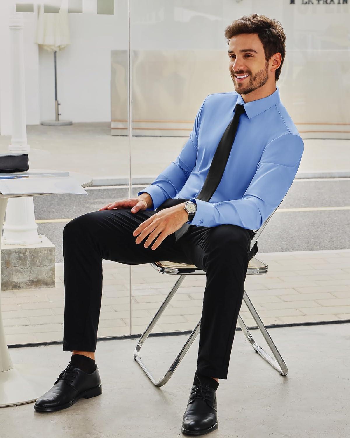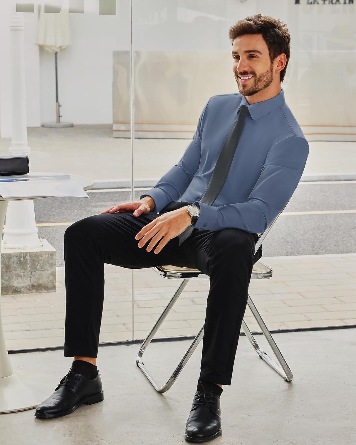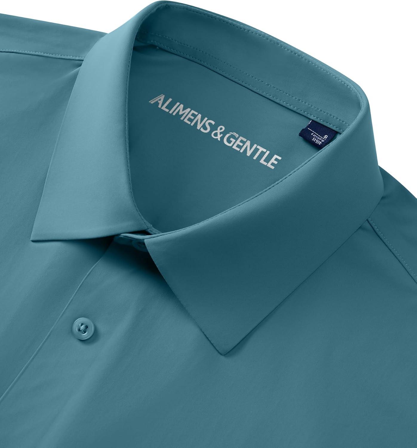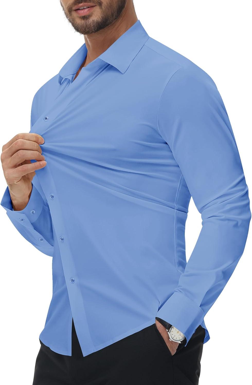 Alimens & Gentle Stretch Mens Dress Shirts Slim Fit Long Sleeve Casual Skinny Muscle Fit Wrinkle Free Button Down Shirt(Cool Blue)