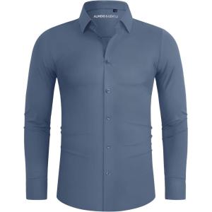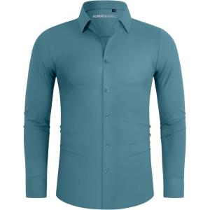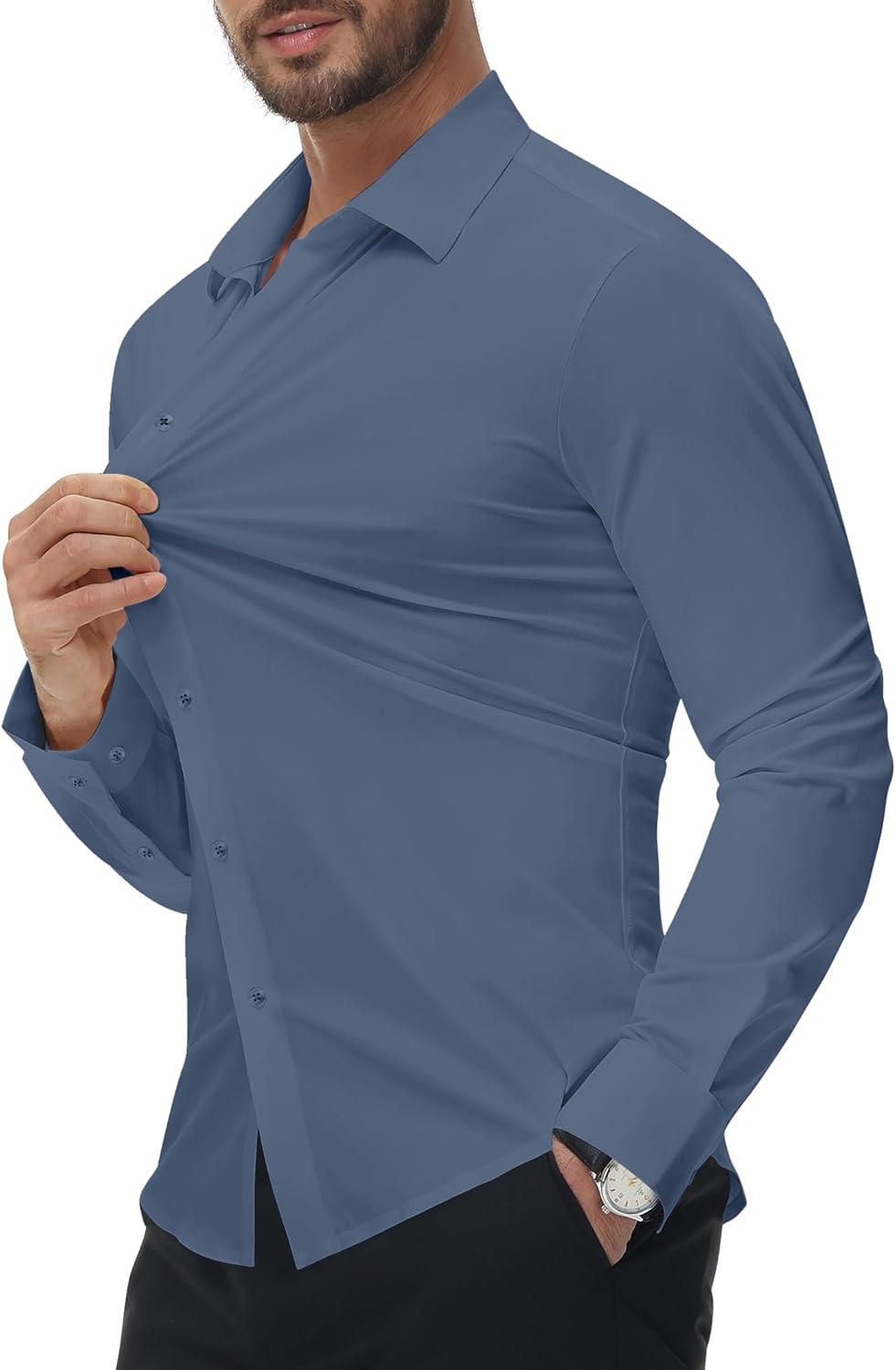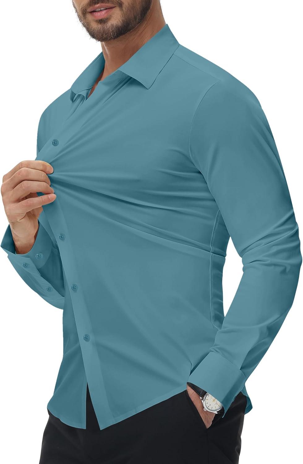 • Alimens & Gentle Stretch Mens Dress Shirts Slim Fit Long Sleeve Casual Skinny Muscle Fit Wrinkle Free Button Down Shirt(Cool Blue)